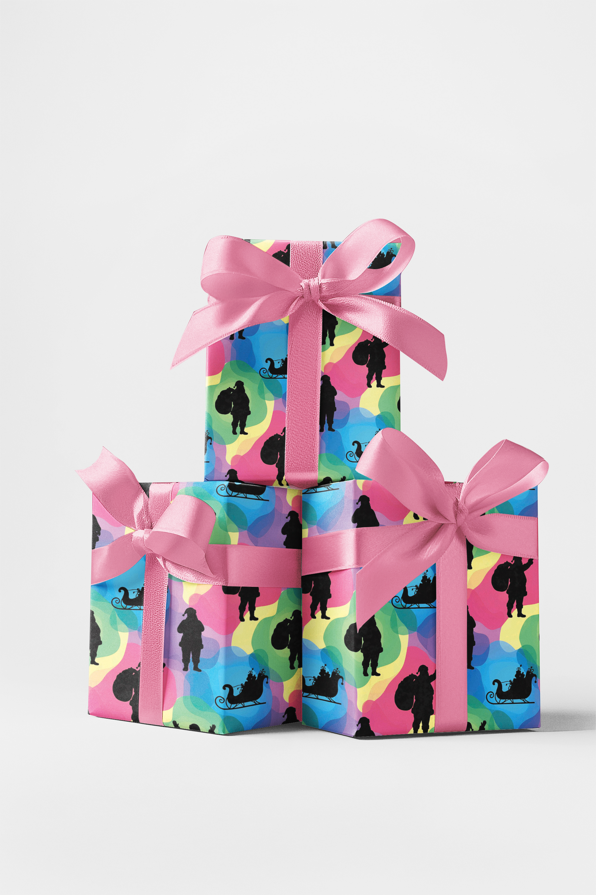Santa steps into the spotlight in graceful silhouettes, his arms full of gifts, set against deep jewel-tone backdrops that glow with holiday richness. This refined pattern captures Christmas elegance with a modern twist—perfect for wrapping gifts that deserve sophistication with a dash of magic. Because let’s face it—Santa’s not just carrying presents, he’s carrying the spirit of the season in style.