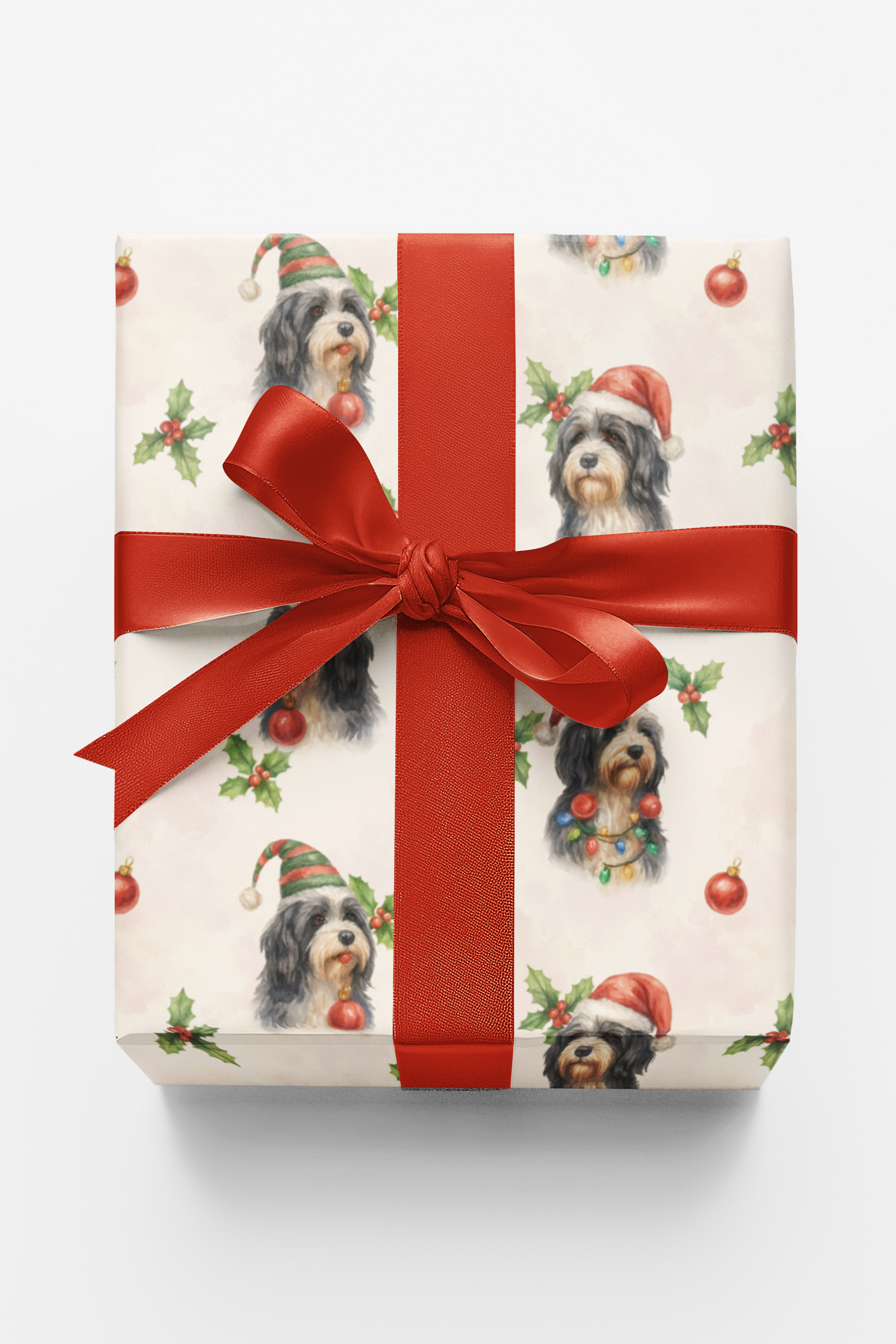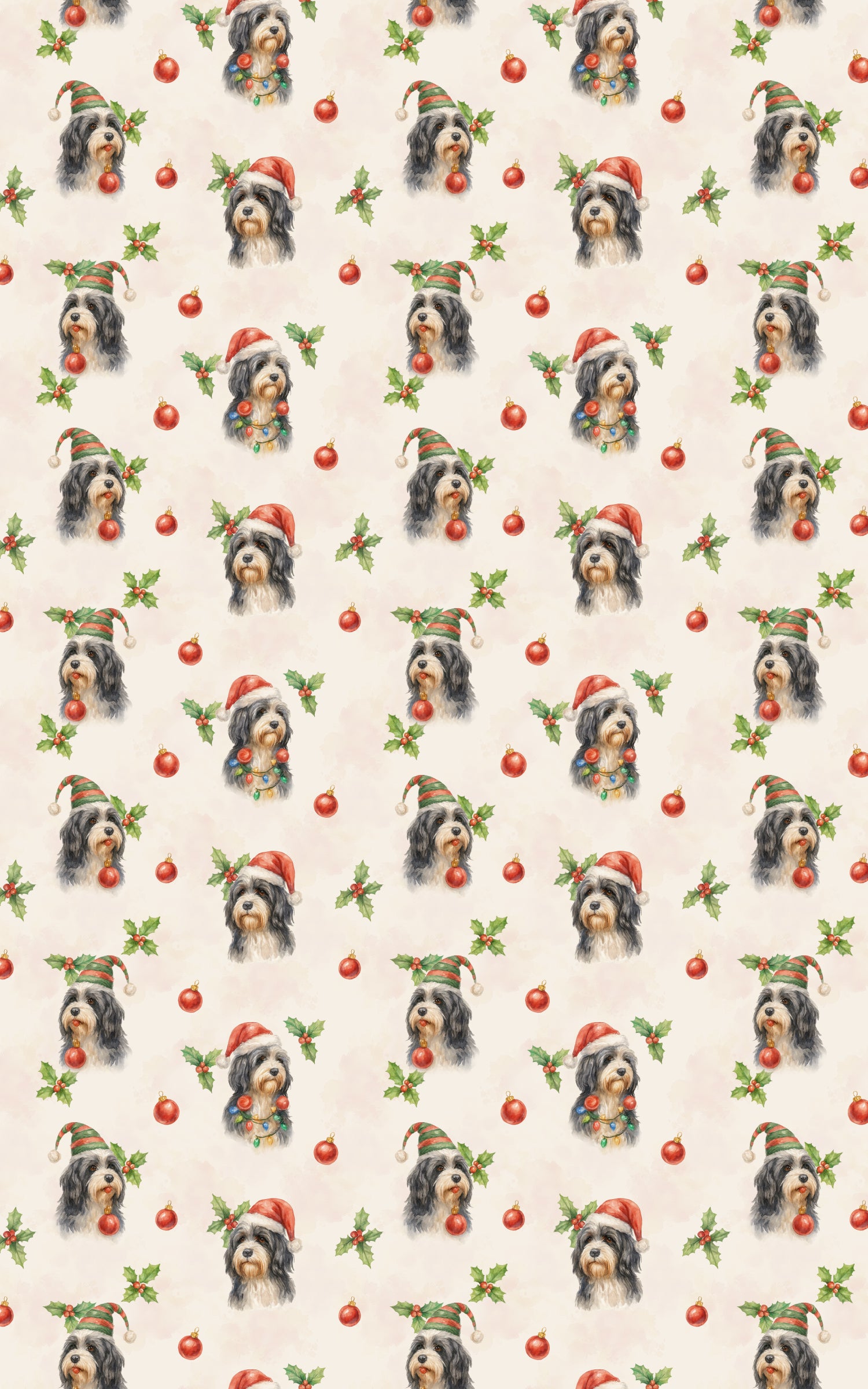 Wrapped in garlands and the soft glow of Christmas lights, this Bearded Collie radiates the warmth of the season with every twinkle in its eyes. Its tousled fur shimmers like freshly fallen snow, and a playful ornament dangles as a badge of festive mischief. Equal parts charm and cheer, it embodies the heart of holiday joy—loyal, loving, and delightfully whimsical. This design celebrates cozy companionship and merry spirit—where every glance sparkles with warmth, and every fold carries the timeless magic of Yuletide Whiskers.