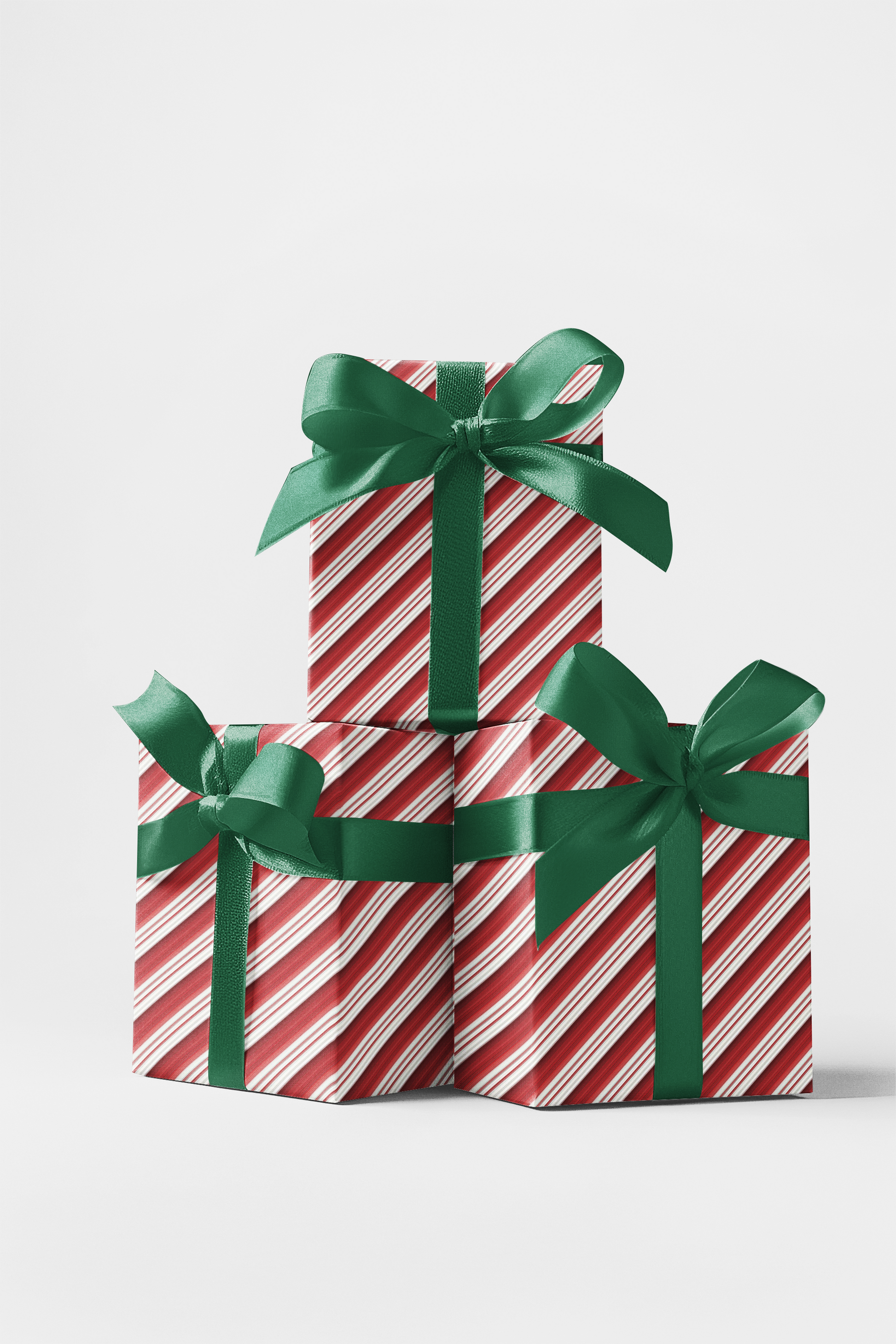 Get into the holiday spirit with our Peppermint Parade wrapping paper! Featuring bold red and white diagonal stripes inspired by classic candy canes, this timeless design adds a cheerful, festive touch to any gift. Perfect for Christmas, holiday celebrations, or any occasion that calls for a pop of classic holiday cheer.