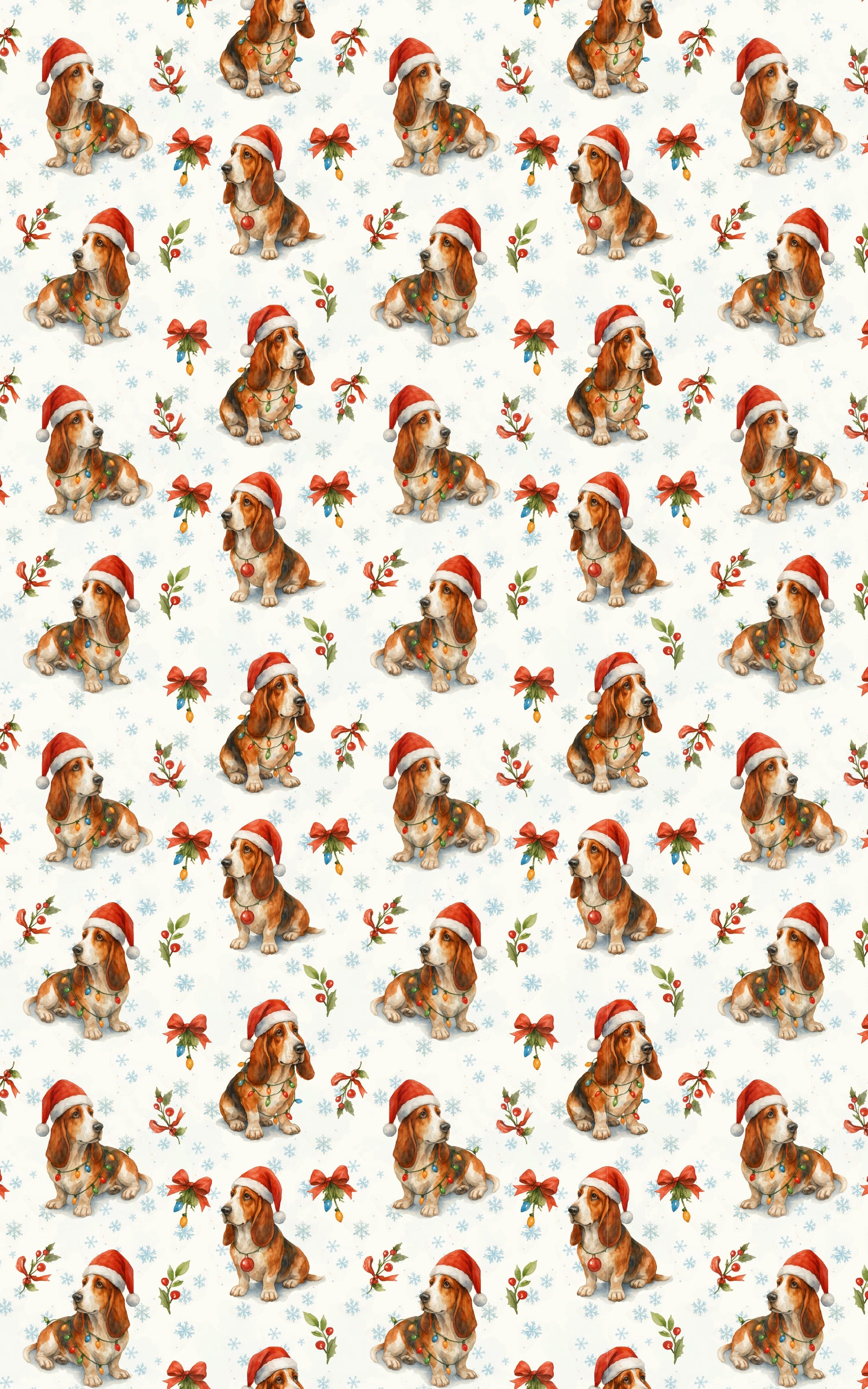 Wrapped in the warmth of Christmas cheer, these basset hounds don their Santa hats and twinkling lights with irresistible charm. Their soulful eyes and floppy ears capture the cozy spirit of the season, while every pose radiates loyalty, love, and a touch of holiday mischief. This design celebrates festive companionship and timeless devotion—where every glance sparks joy, and every fold carries the magic of a wagging tail beneath the tree.