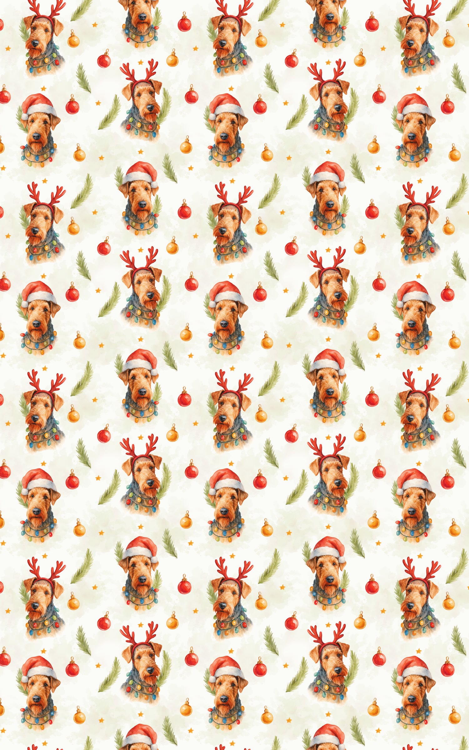Decked in glowing lights and festive flair, this Airedale Terrier embodies the bold heart of the holidays. With antlers perched proudly and a Santa hat tipped in cheer, it radiates confidence, curiosity, and a dash of mischief. Its wiry coat gleams with warm tones of cinnamon and gold, mirroring the cozy glow of a fireside Christmas. This design celebrates spirited charm and loyal joy—where every glance sparks adventure, and every fold carries the merry, untamed magic of Reindeer Ruff.