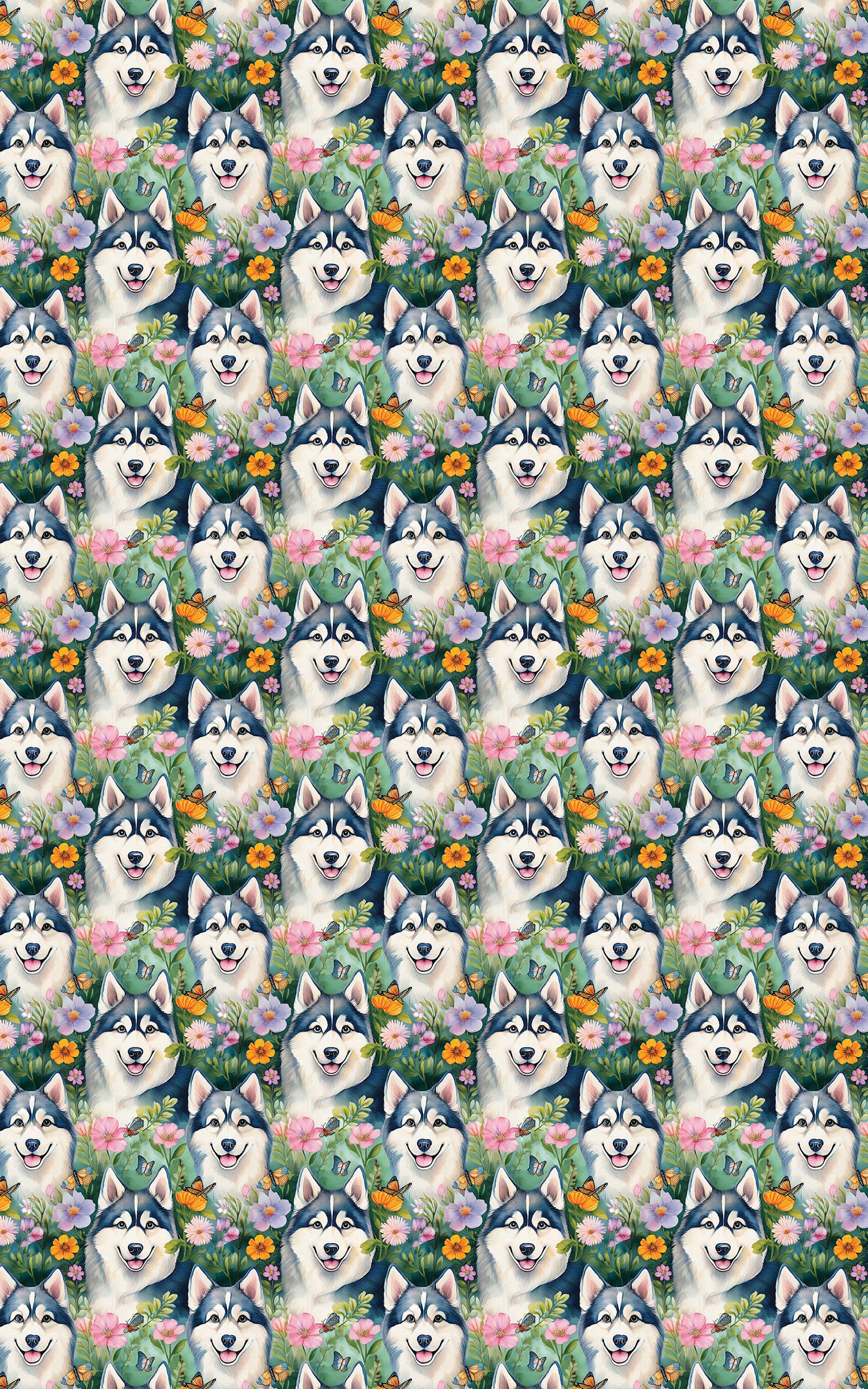 Add a lively touch to your gifts with this charming wrapping paper featuring a seamless pattern of playful Huskies in a vibrant garden. Surrounded by blooming flowers, fluttering butterflies, and lush greenery, each scene is hand-painted in watercolor and arranged with balanced, even spacing. Perfect for birthdays, spring celebrations, or for dog lovers who enjoy a cheerful and nature-inspired design.