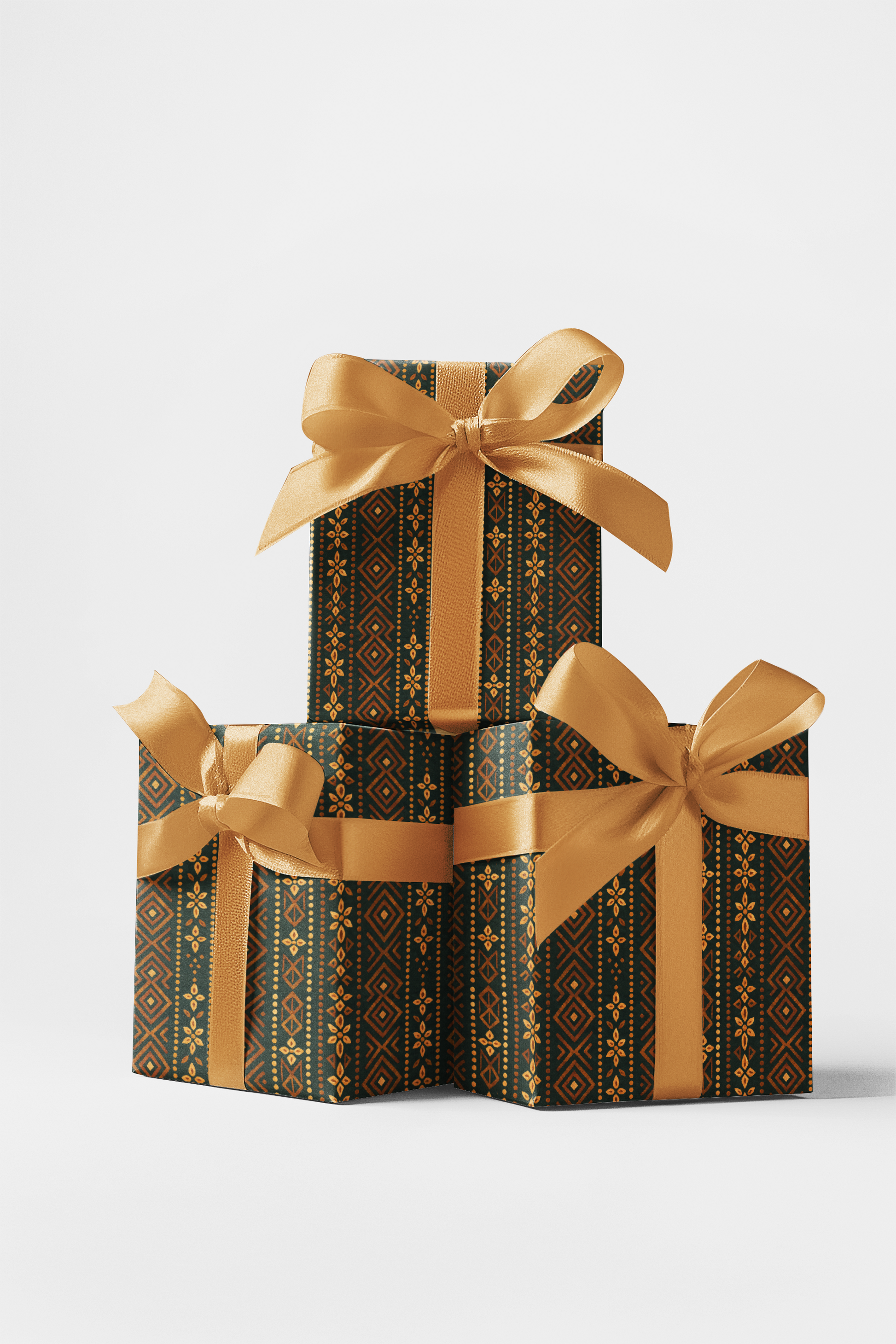 Wrap your gifts in warmth and sophistication with this stunning geometric wrapping paper featuring hand-painted patterns in rich terracotta, deep green, and golden yellow hues. Inspired by traditional artisan textiles, this design blends earthy tones with a modern bohemian twist. Perfect for holidays, fall celebrations, or everyday gifting, it adds a touch of rustic luxury and handcrafted charm to every package.