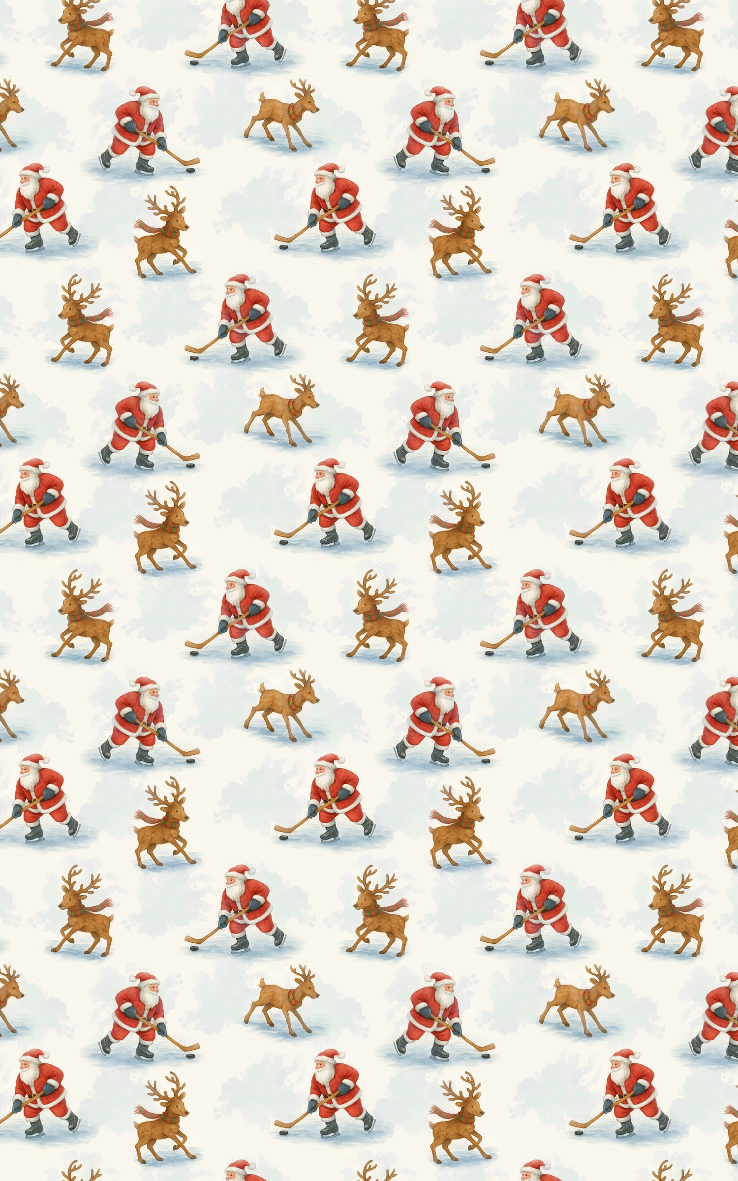 Hockey Claus features Santa lacing up his skates for a friendly face-off against his reindeer teammates. With scarves flying, pucks sliding, and plenty of holiday hustle, this design brings a whole new meaning to season’s greetings. Perfect for hockey fans, winter sports lovers, and anyone who enjoys a quirky twist on Christmas fun. Wrap your gifts in slap-shot spirit.