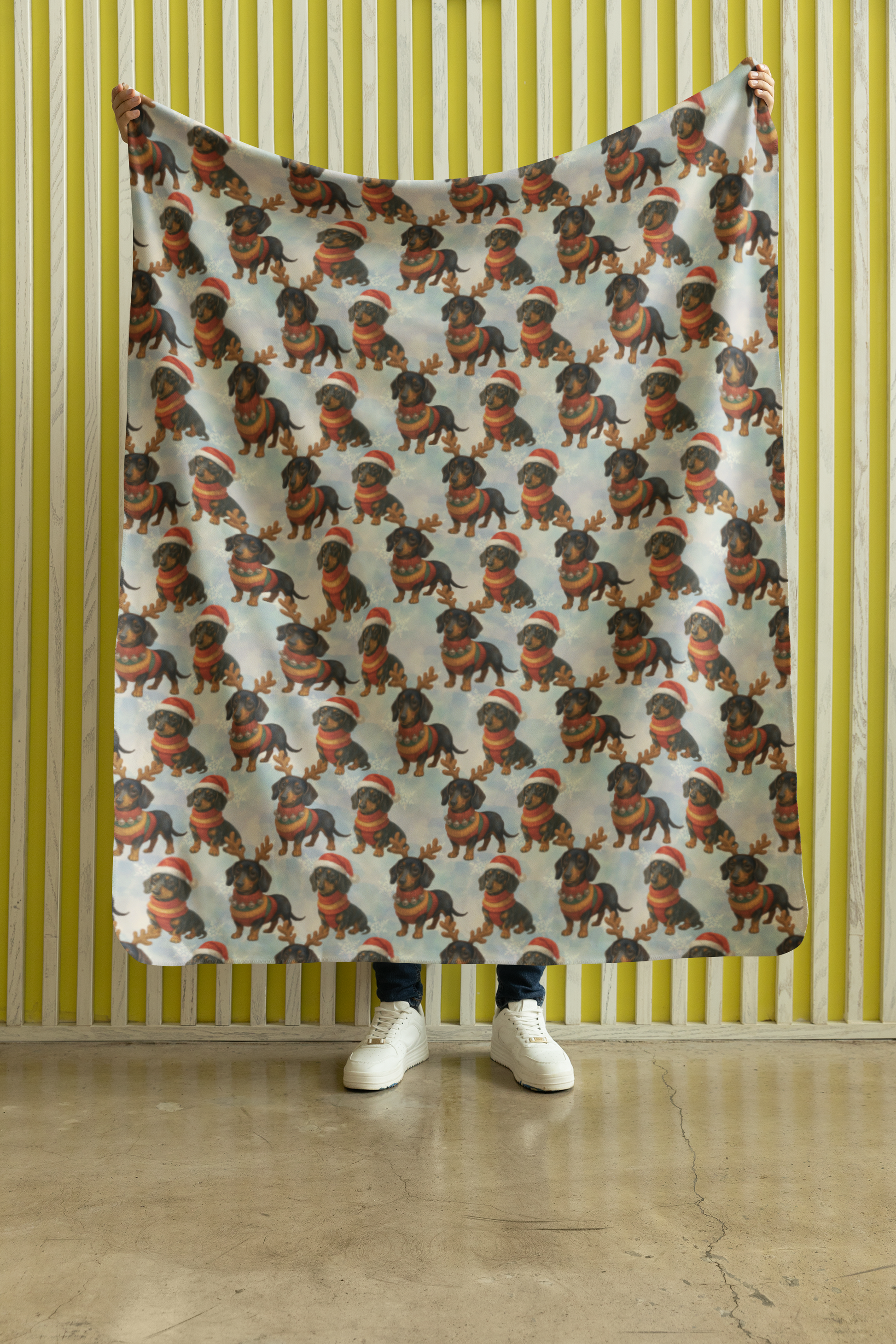 Snuggle up this season with the heartwarming charm of our Jolly Long Dog Sherpa blanket. Featuring our favorite long-bodied friends dressed in their festive best—complete with reindeer antlers, Santa hats, and cozy jingle bell sweaters—this design brings a touch of whimsical holiday cheer to any room. Set against a soft, snowy background with delicate snowflakes, these festive Doxies are ready for a long winter’s nap. Crafted with a silky-smooth micro-fleece face to showcase the vibrant artwork and a plush, cloud-like Sherpa lining on the reverse for ultimate warmth, this blanket is perfect for holiday movie marathons or as a delightful gift for the Dachshund lover in your life.