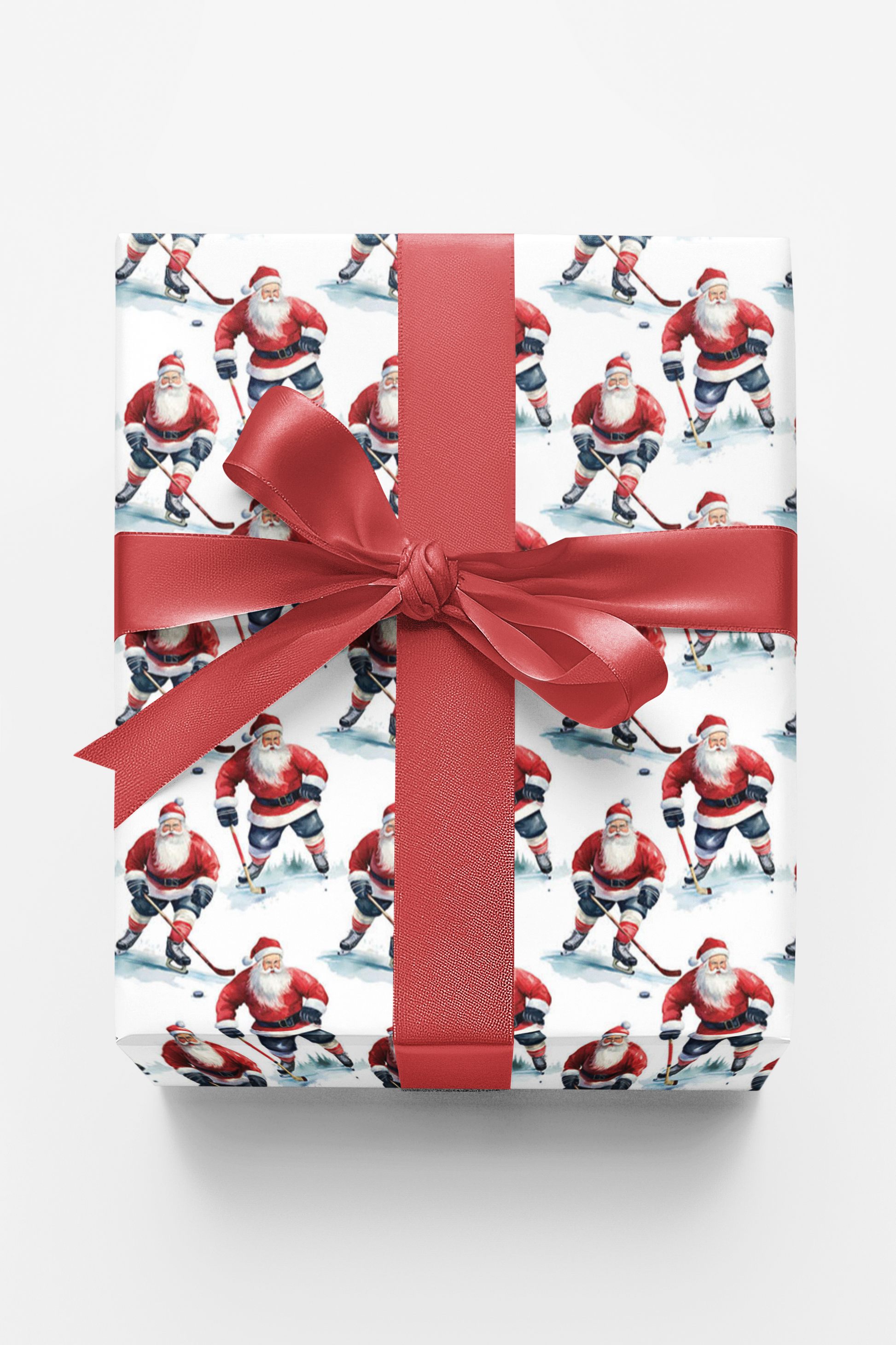 Bring playful holiday cheer with Jolly On Ice wrapping paper. Featuring Santa Claus in his classic red suit skating and playing hockey, this fun design blends festive spirit with sporty charm. Perfect for hockey fans, dads, and anyone who loves a whimsical Christmas twist. Score a holiday hat trick with every gift!