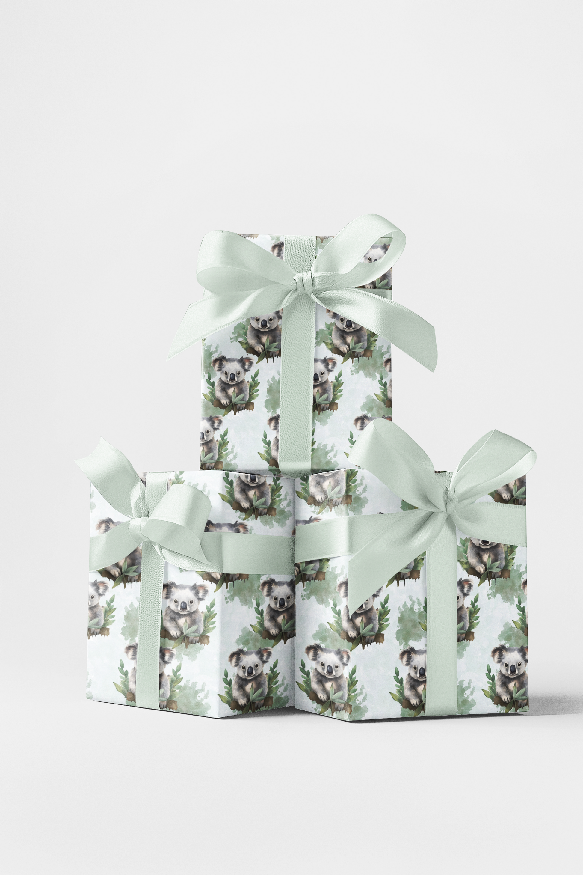 Koala Hugs & Smiles is a charming yet serene wrapping paper featuring gentle koalas in soft shades of grey, cream, and warm taupe, each painted with delicate watercolor details that highlight their fur, curious eyes, and relaxed poses. Nestled among sweeping eucalyptus branches and clusters of silvery-green leaves, dappled sunlight filters through the canopy, casting soft shadows that capture the calm of the Australian bush. Perfect for nature-inspired celebrations, baby showers, or anyone who adores these endearing creatures, this design turns every gift into a cozy treasure of the wild.