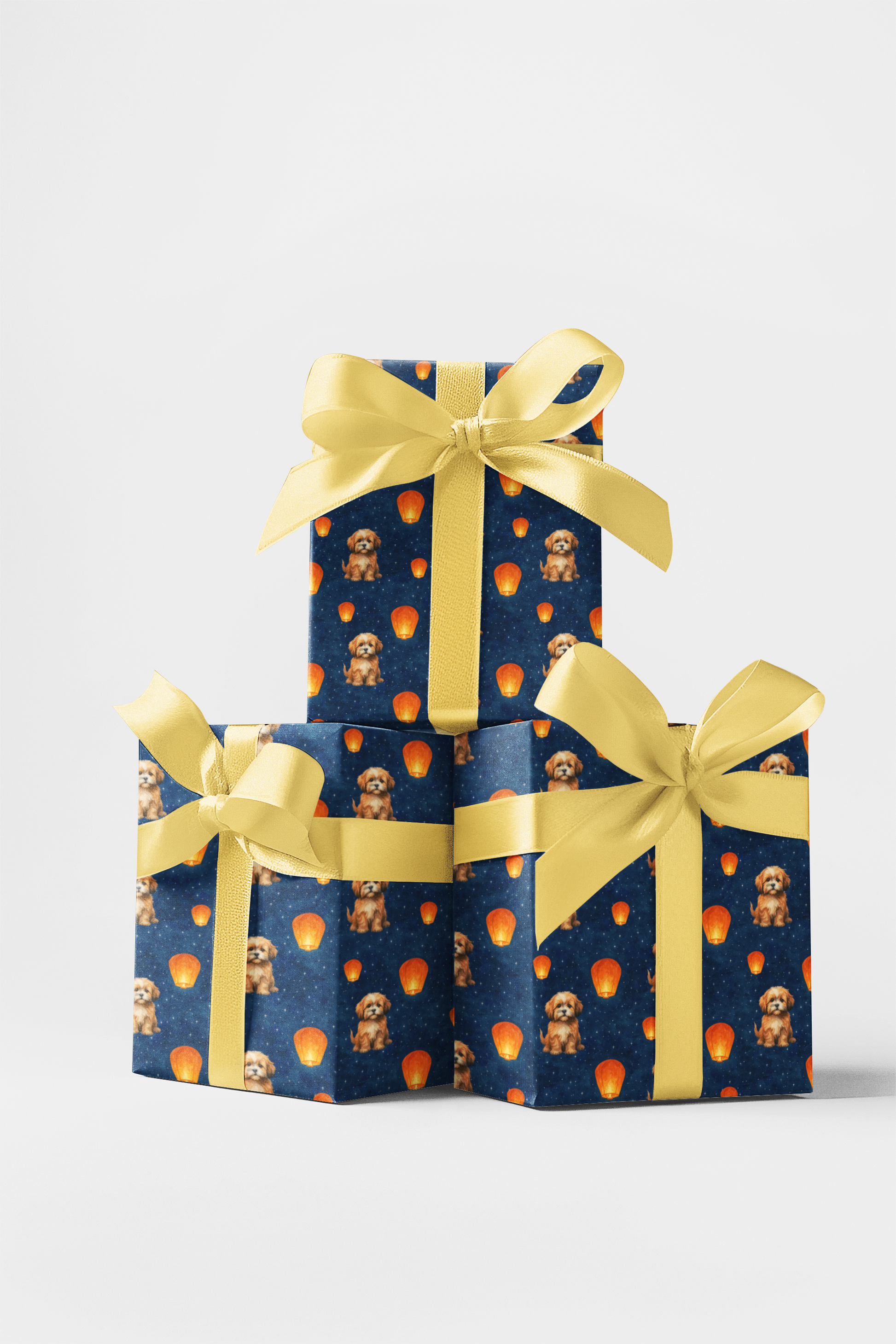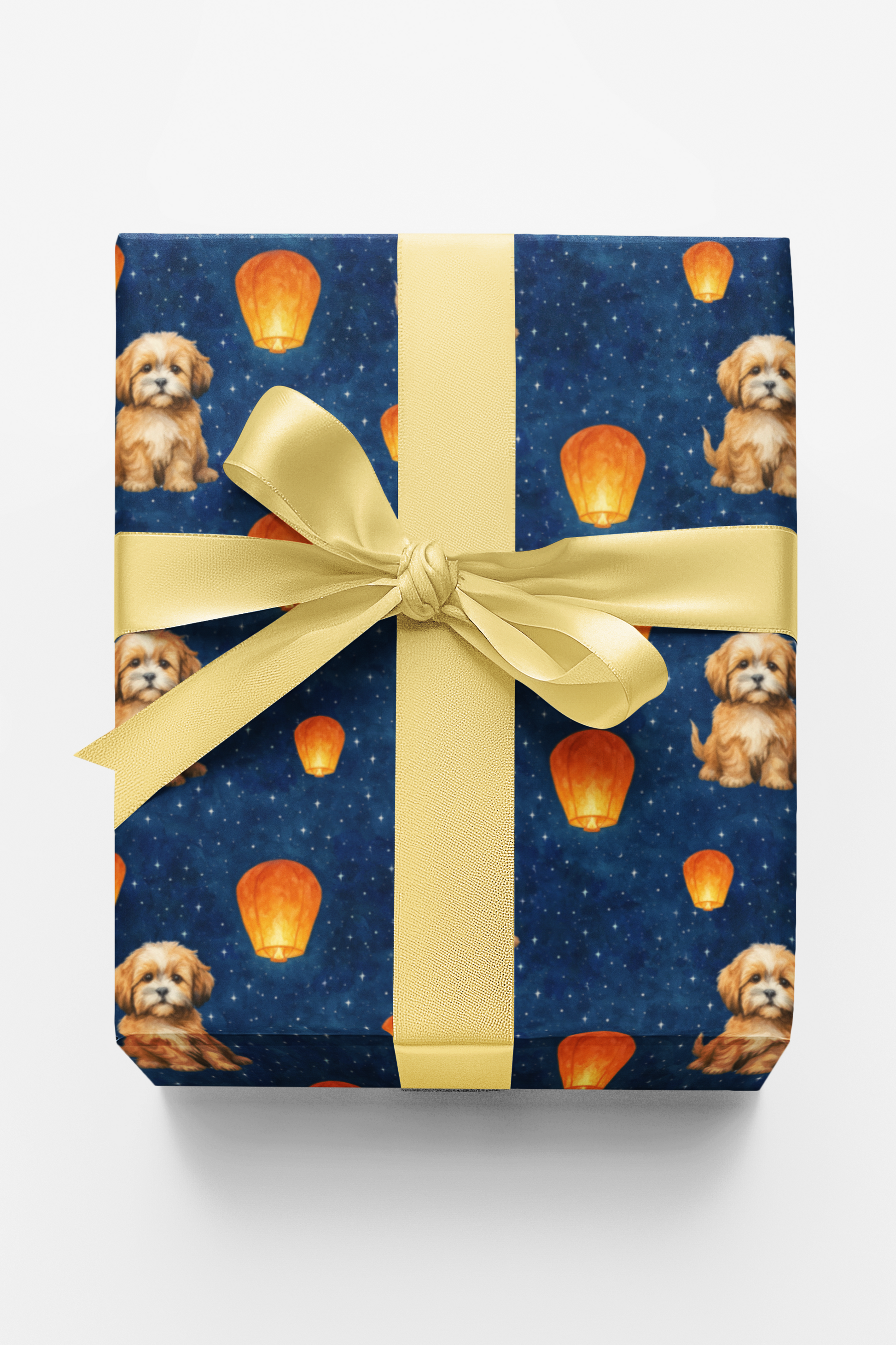 Light up your gifting with our Lhasa Lanterns wrapping paper. This enchanting design features softly glowing paper lanterns drifting across the sky, each with a tiny Lhasa Apso figure sitting beneath. Blending whimsy and serenity, it’s perfect for dog lovers, festive celebrations, and anyone who adores dreamy, imaginative designs. Ideal for birthdays, holidays, or special occasions that call for a touch of magic.