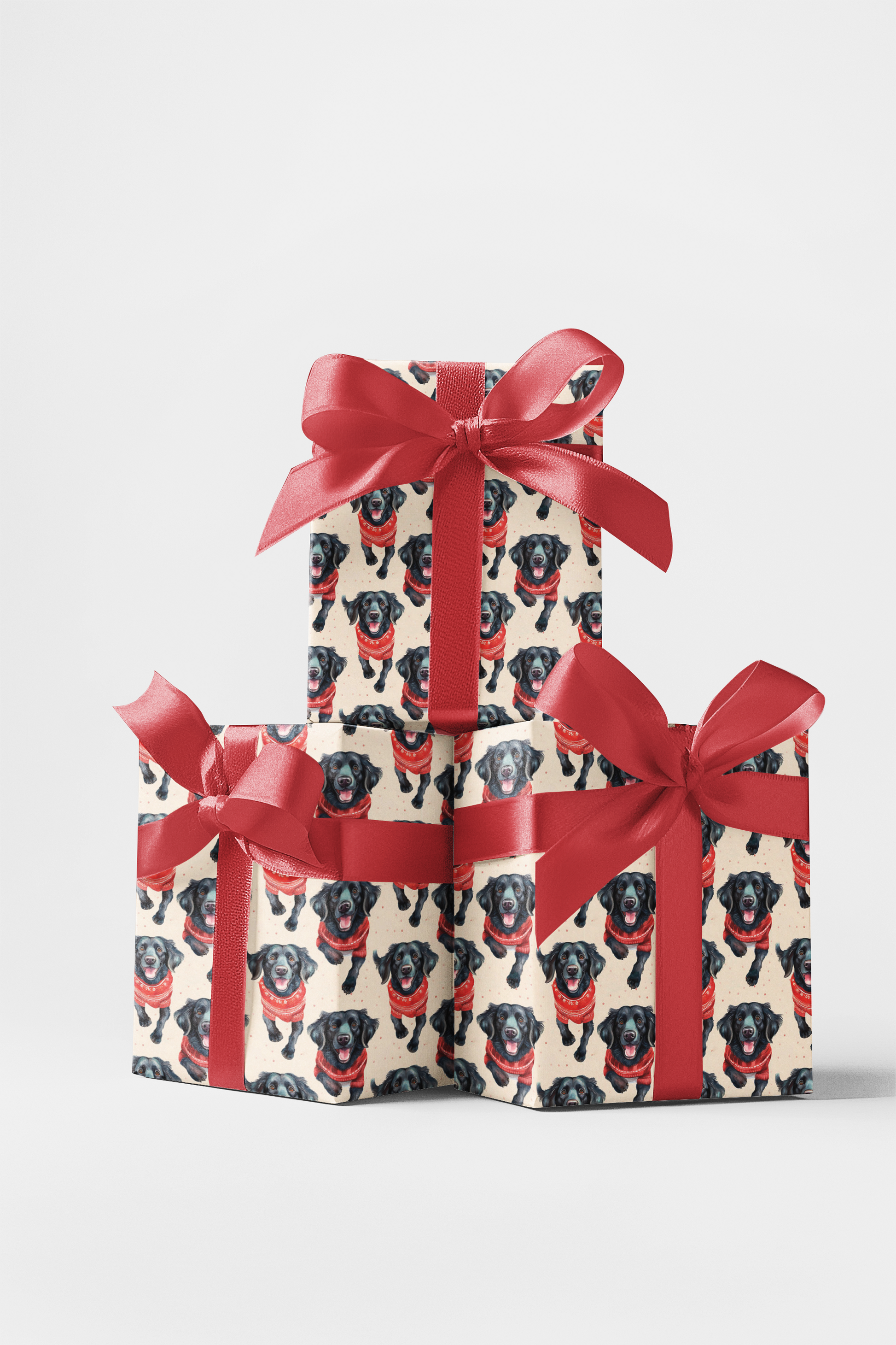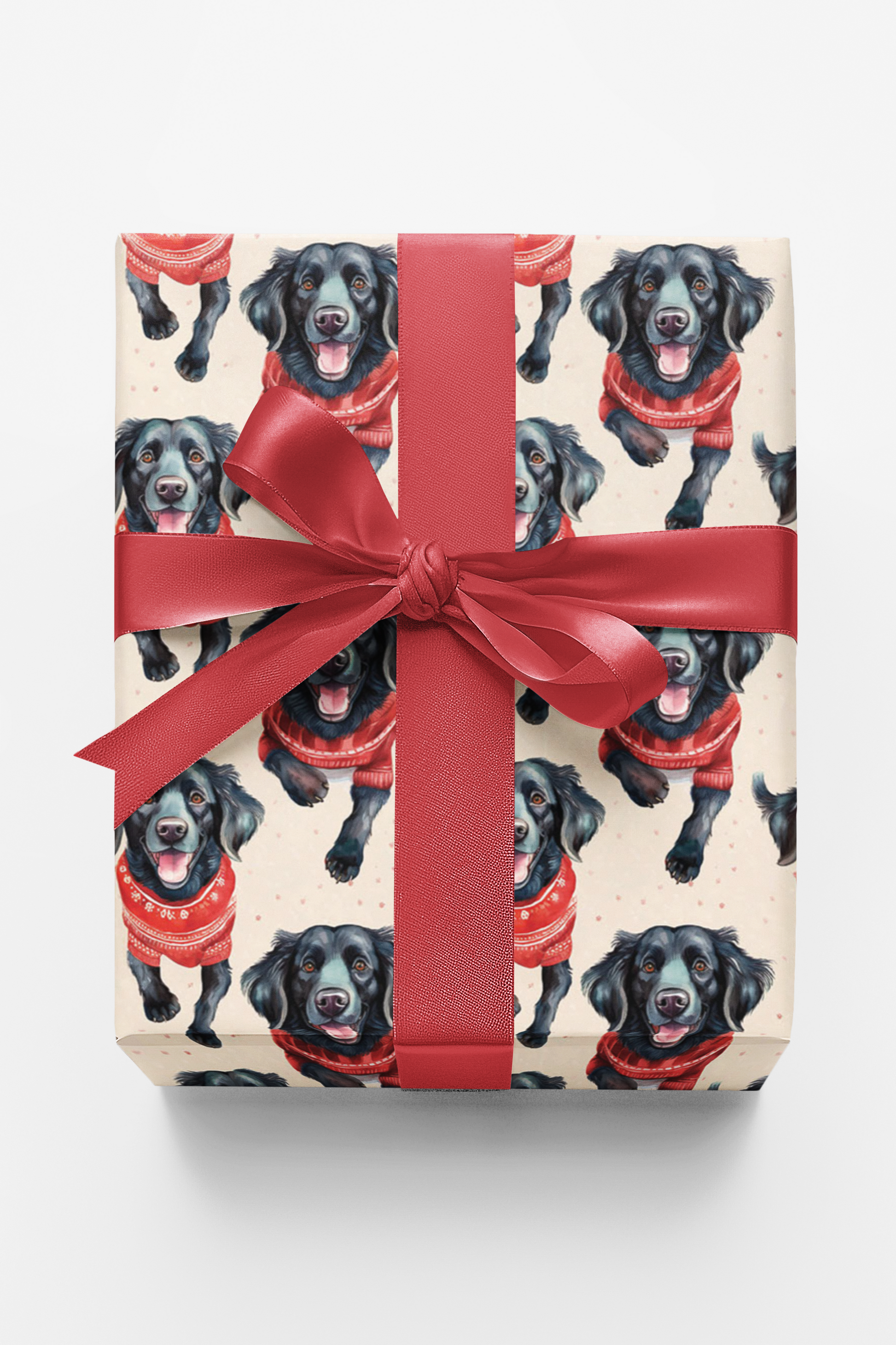 Celebrate the season with our exclusive wrapping paper featuring London. This design showcases joyful London, the Flat-Coated Retriever, running playfully in a festive holiday sweater. The watercolor-inspired artwork captures his cheerful spirit, adding warmth, charm, and personality to every gift. Perfect for dog lovers and anyone looking to make their holiday wrapping extra special.