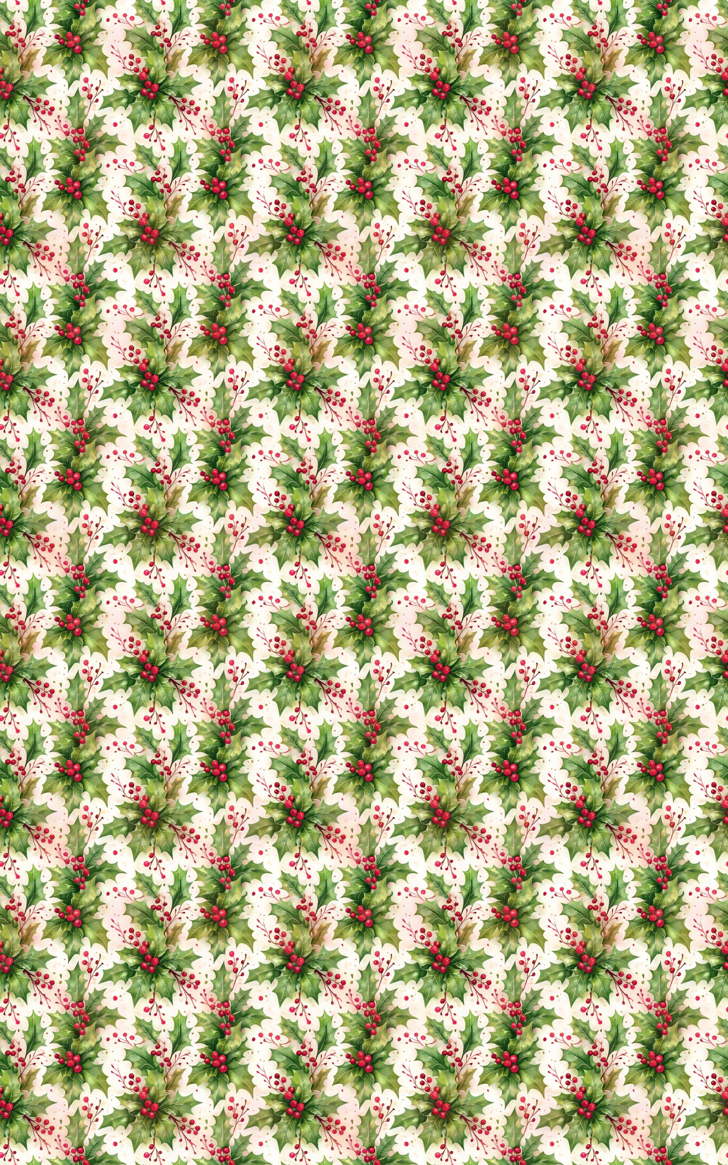 Bathed in the glow of holiday warmth, this design bursts with the timeless beauty of winter’s natural splendor. Vibrant red berries gleam like tiny jewels among lush green holly leaves, each detail painted with care and festive spirit. The soft cream backdrop glows with cozy light, evoking fireside laughter and evergreen fragrance. This design celebrates classic elegance and joyful abundance—where every glance blooms with holiday cheer, and every fold carries the enduring magic of Crimson & Evergreen.