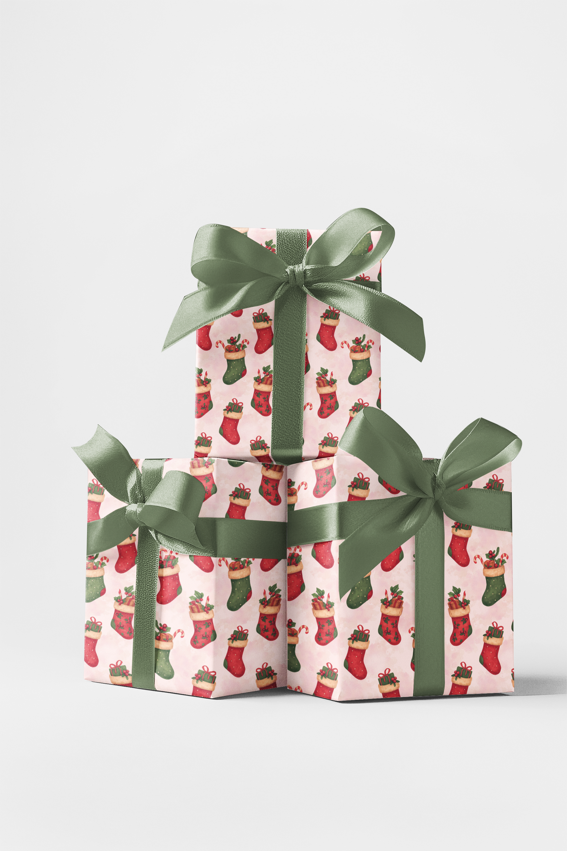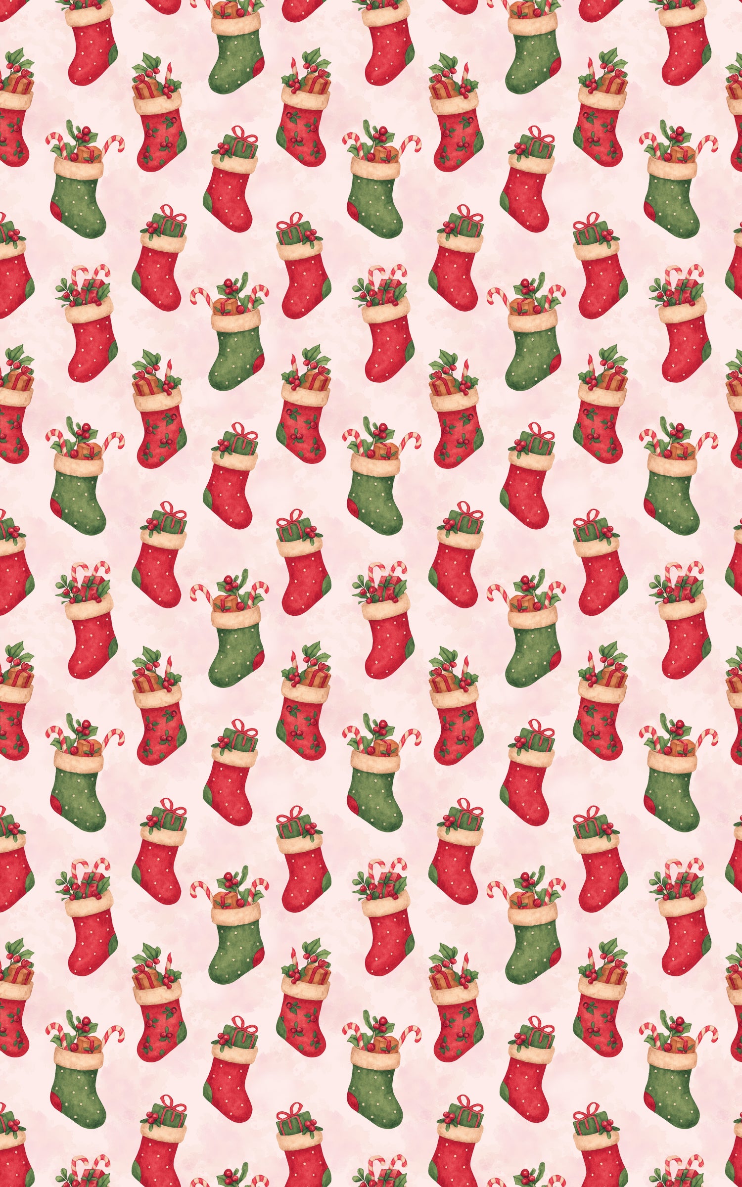 Brimming with festive cheer, Stocking Stuffer captures the magic of Christmas morning in every delightful detail. Red and green stockings overflow with candy canes, holly, and little surprises, each one a whisper of wonder and nostalgia. The design radiates warmth and playfulness—like the soft glow of twinkling lights and the joyful rustle of wrapping paper by the fire. Every fold feels like a promise of merry moments and hidden treasures, wrapping your gifts in pure holiday happiness.