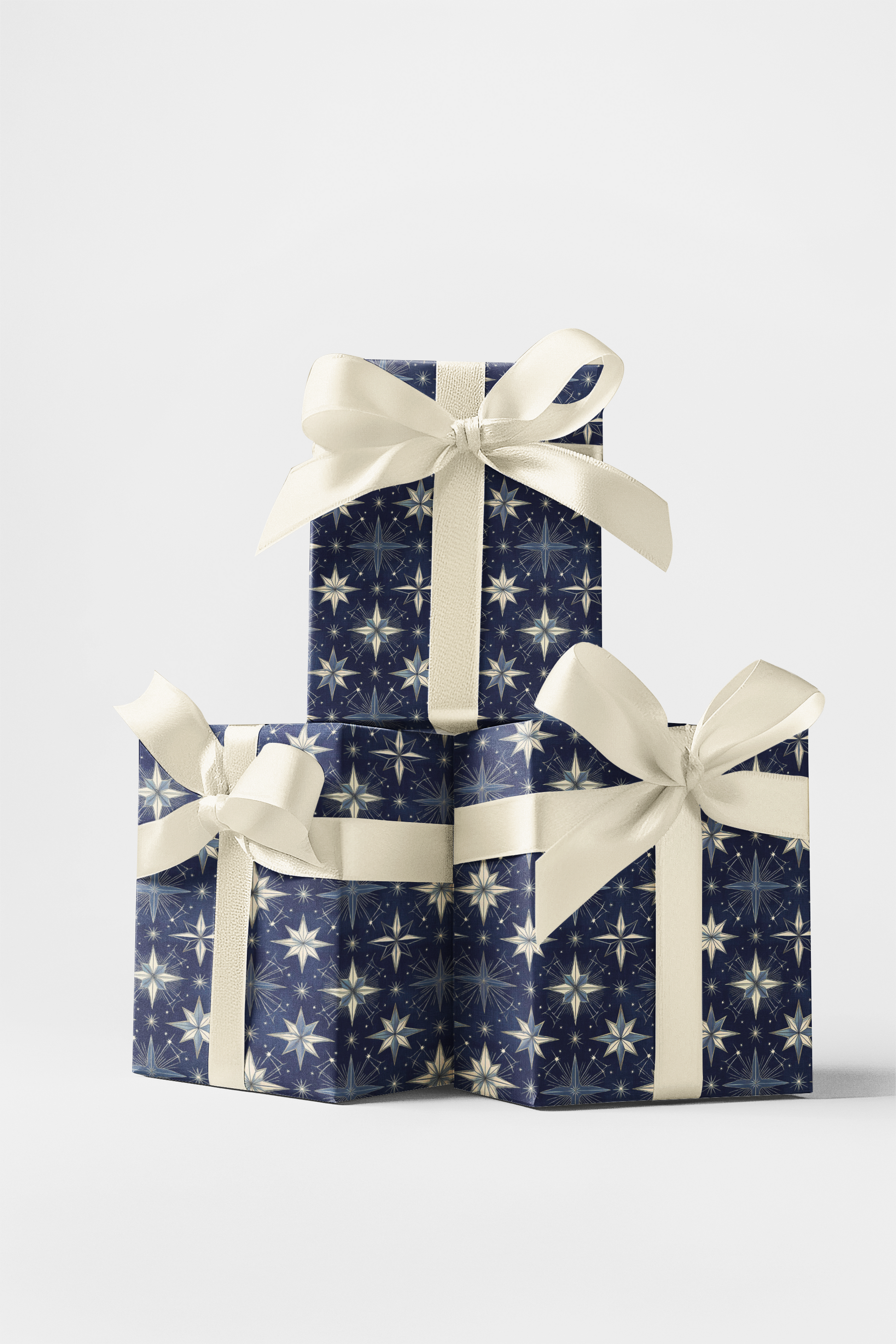 Add celestial elegance to your gifts with our Midnight Noel wrapping paper! This stunning design features a pattern of stars and radiant bursts in soft cream, silver-blue, and deep midnight blue, evoking the beauty of a starlit winter sky. Perfect for Christmas, Hanukkah, winter birthdays, or any occasion that calls for a magical and refined presentation. Crafted from high-quality, durable paper for an enchanting finish.