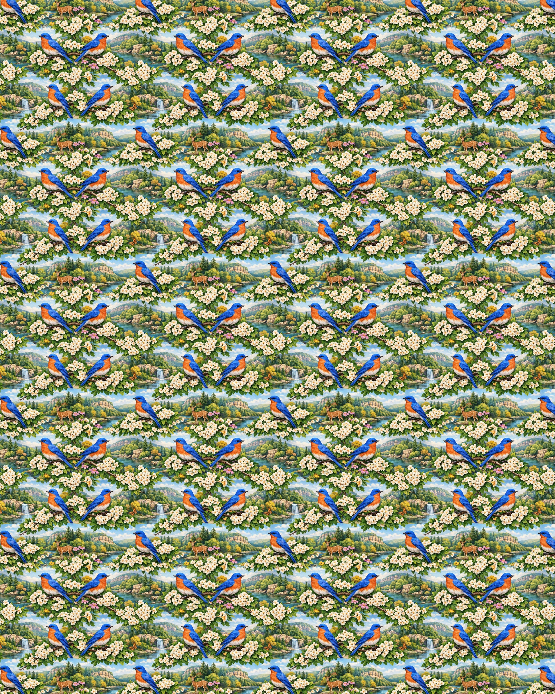 Celebrate the natural beauty of the Show-Me State with our Missouri Flora & Fauna design. Inspired by Missouri’s rolling hills, sparkling rivers, and scenic Ozark landscapes, this artwork features vibrant Eastern bluebirds perched among delicate hawthorn blossoms, with peaceful woodland views stretching into the distance.