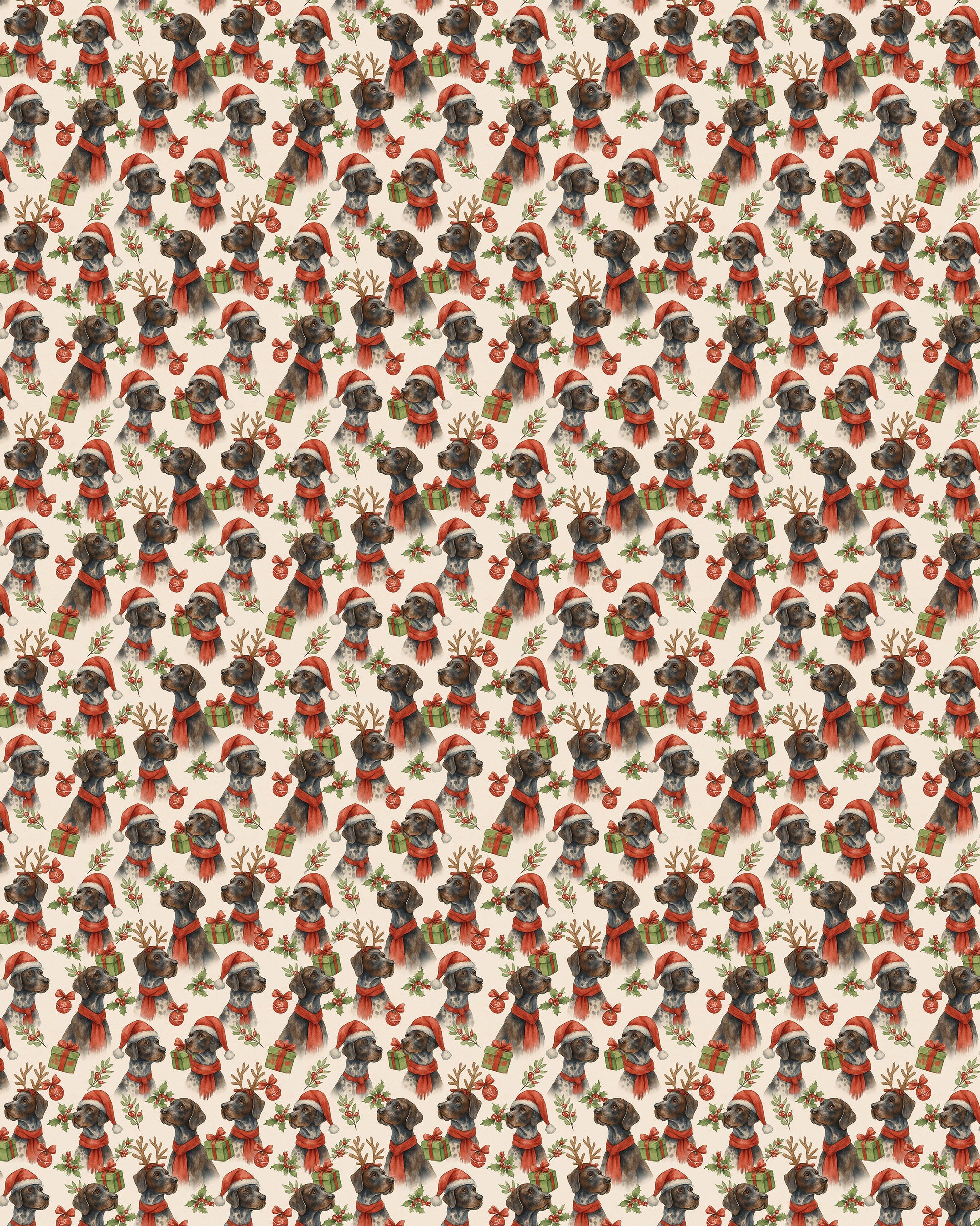 Celebrate the season with the noble and playful charm of our Mistletoe & Pointer Toes Sherpa blanket. Designed for those who love the spirit of the sporting dog, this festive pattern features the iconic German Shorthaired Pointer (GSP) in their holiday finest—sporting jaunty Santa hats, whimsical reindeer antlers, and cozy red scarves. Surrounded by classic mistletoe sprigs, colorful ornaments, and wrapped gifts, these high-energy companions are reimagined for a season of cozy rest.