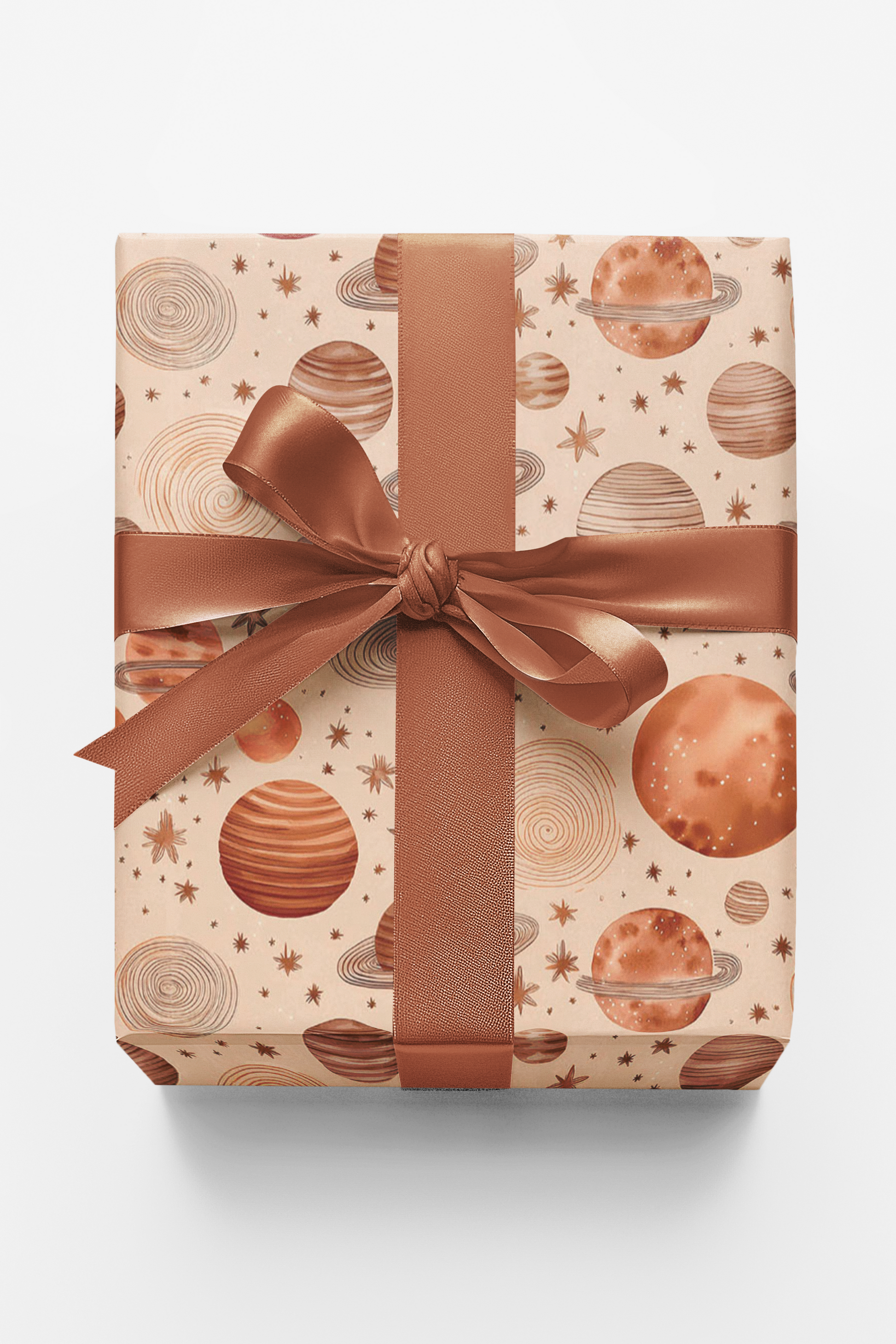 Muted Galaxy is a playful yet refined wrapping paper featuring hand-painted planets, moons, stars, rockets, and rainbows in muted watercolor tones of beige, ochre, and terracotta. With its gentle color palette and whimsical celestial motifs, this design balances modern minimalism with imaginative charm. Perfect for birthdays, baby showers, or anyone enchanted by the cosmos, this wrapping paper brings a warm and dreamy touch to every gift.