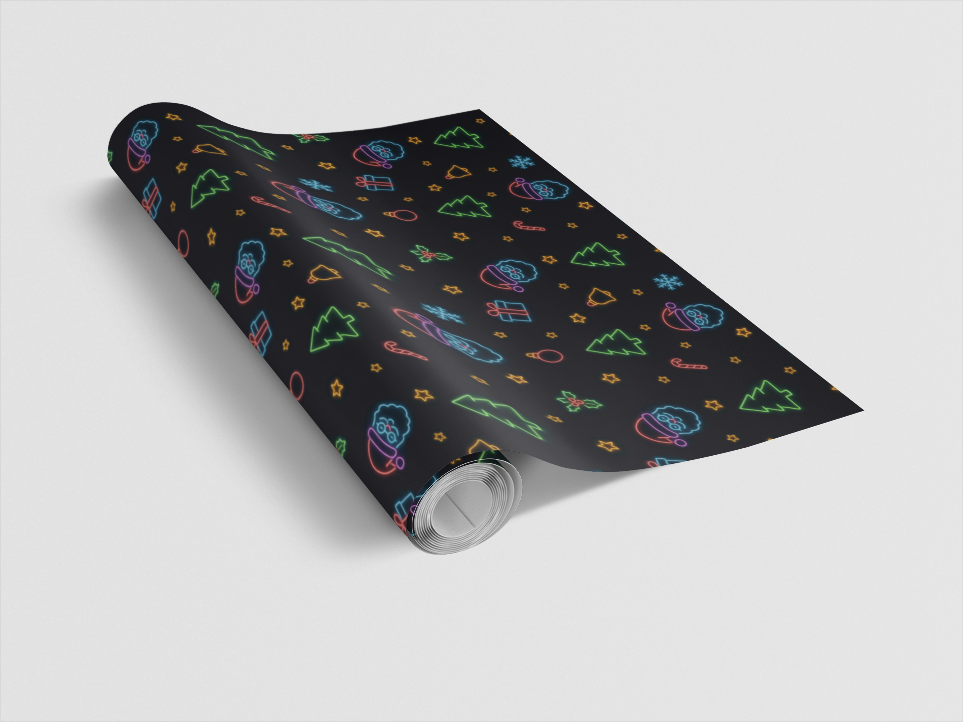 Electric and full of festive spirit, Neon Christmas Glow lights up the season with playful brilliance and modern cheer. Against a deep midnight backdrop, glowing Santas, twinkling stars, evergreen trees, and holiday icons shine like vintage neon signs on a winter night. Each motif pulses with color and joy, blending nostalgia with bold contemporary flair. This design celebrates Christmas with energy and confidence—where tradition meets vibrant glow, and every wrap feels like a celebration sparkling after dark.