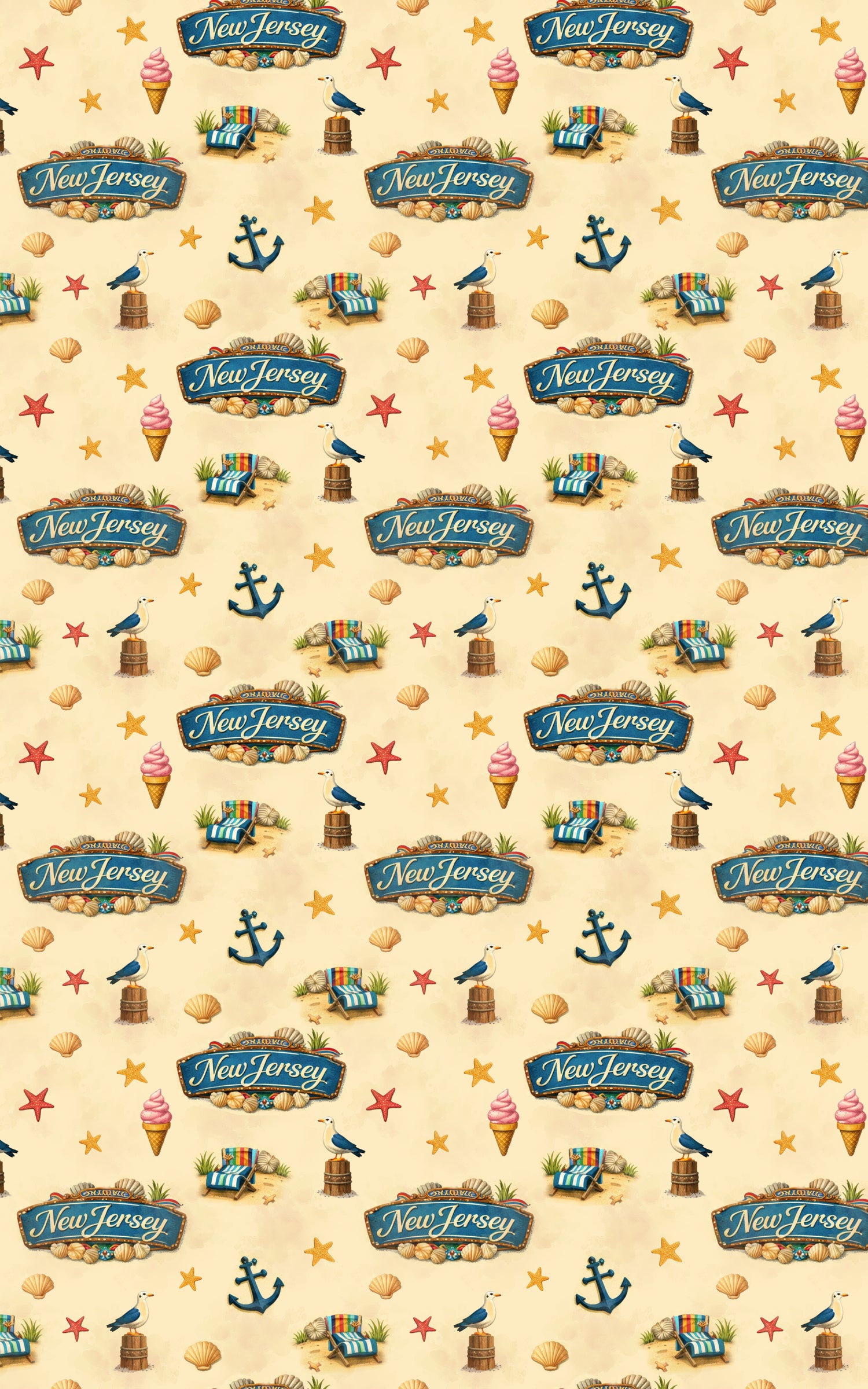 Bright and breezy, New Jersey Shore Classic captures the playful spirit of boardwalk days and salt-kissed air. Anchors, seashells, lighthouses, and seaside treats dance across warm sands and coastal blues, echoing summers filled with laughter and sun. This design blends nostalgia with seaside charm—where every fold carries the easy joy of ocean breezes, timeless shore traditions, and the unmistakable warmth of classic days by the sea.