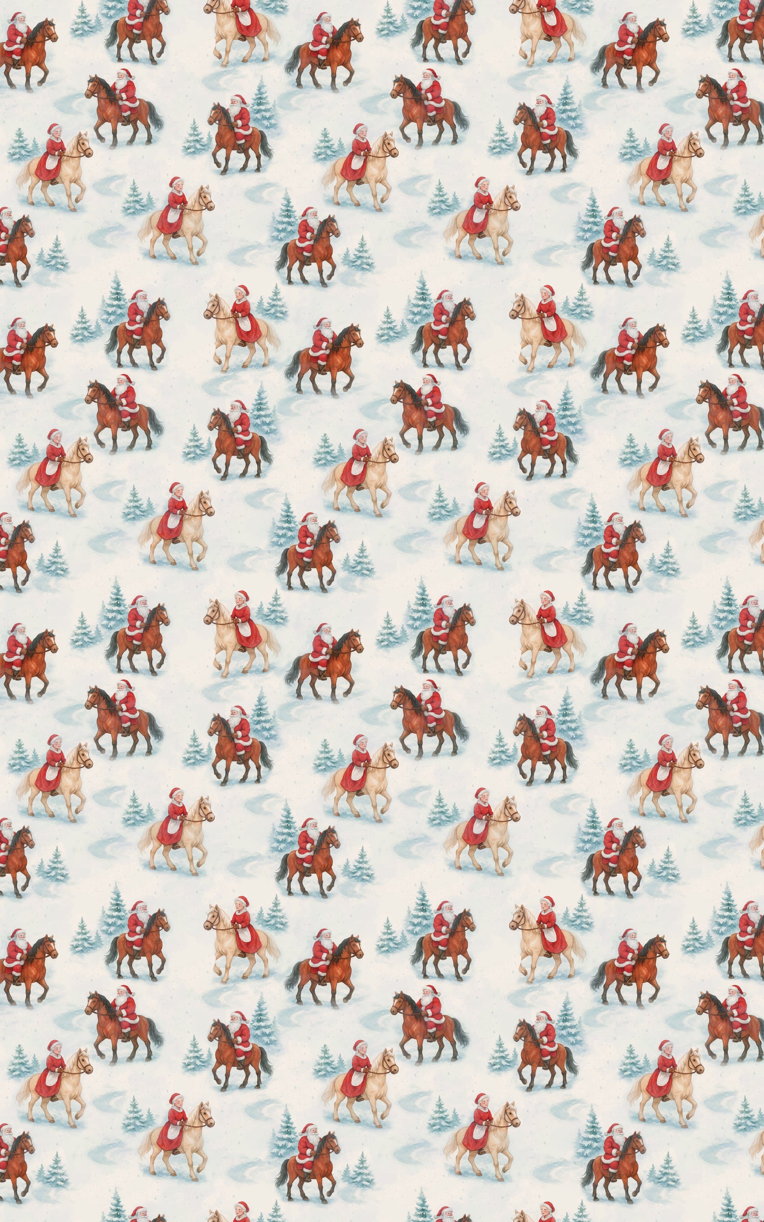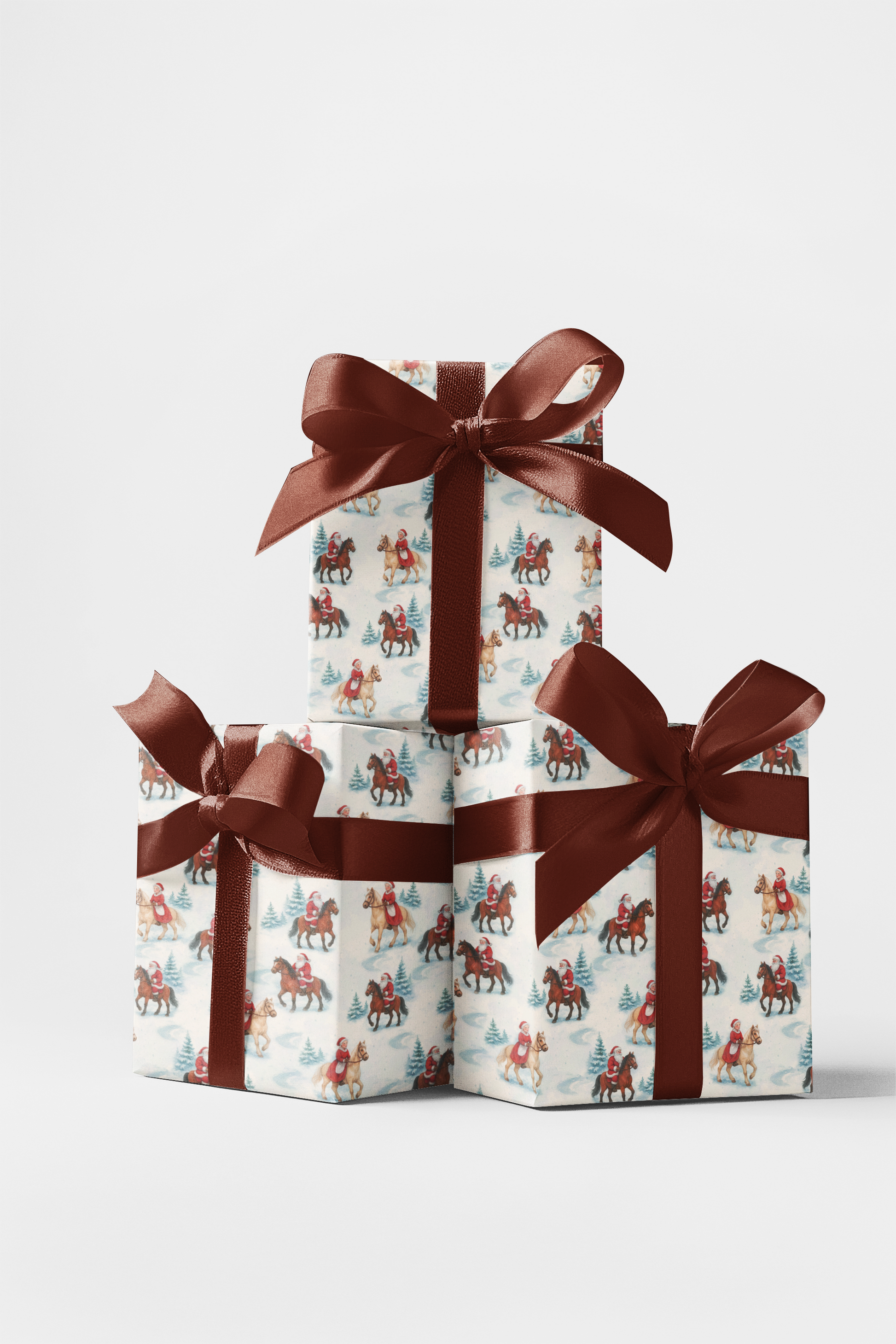 Holly Jolly Horseback Santa and Mrs. Claus are taking the scenic route this season, trotting through frosty trails like the jolliest cowboy-and-cowgirl duo in the North Pole. This whimsical wrapping paper adds a touch of rustic holiday charm with a playful twist perfect for gifts that deserve a little extra giddy-up under the tree.