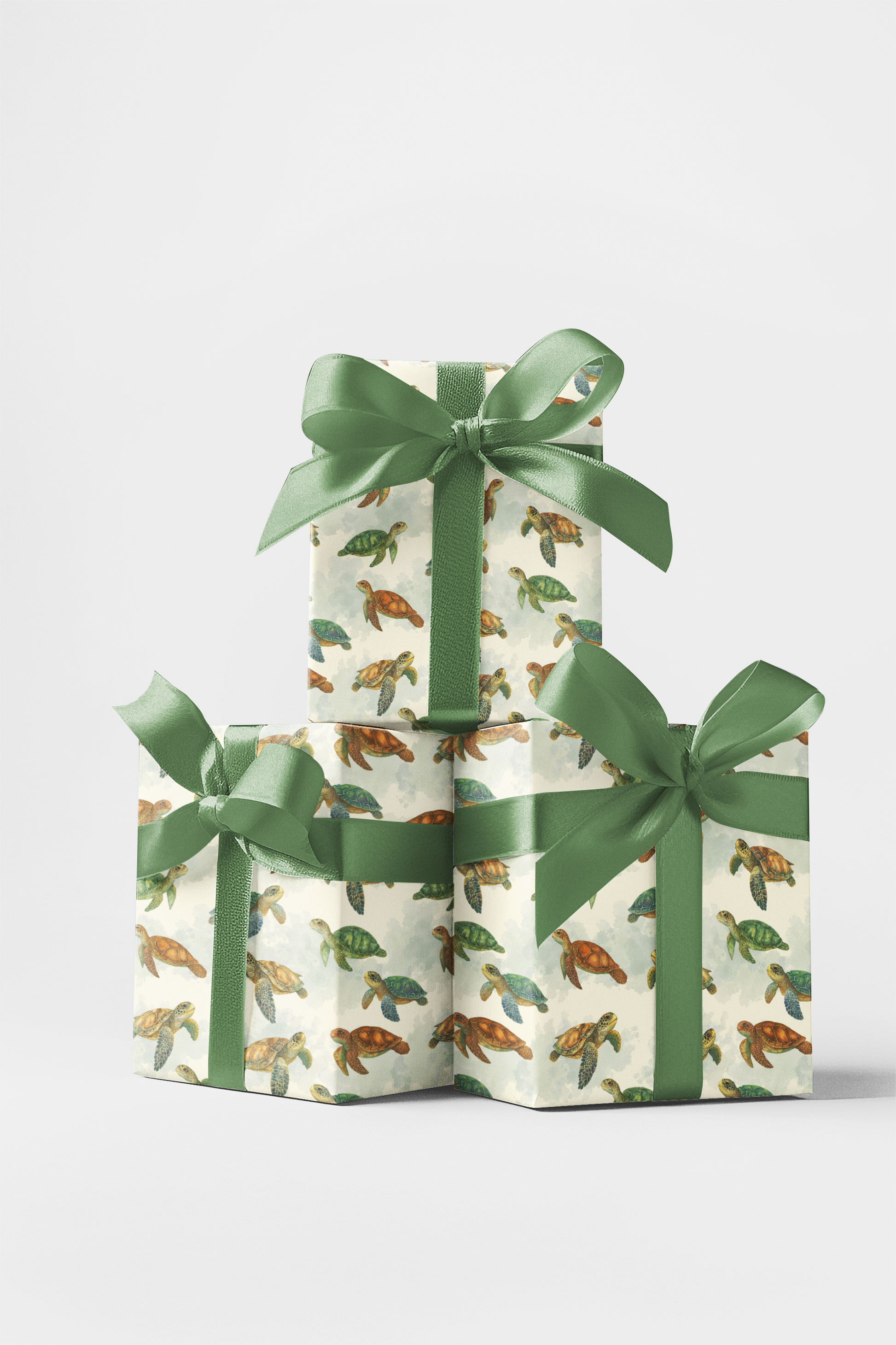 Graceful and enduring, the Sea Tortoise brings serene beauty to this captivating wrapping paper design. Gliding gently through the water, its timeless presence and calm nature shine through, adding both depth and tranquility to every gift. Perfect for ocean lovers and any occasion, this design celebrates the beauty and individuality of this remarkable creature.