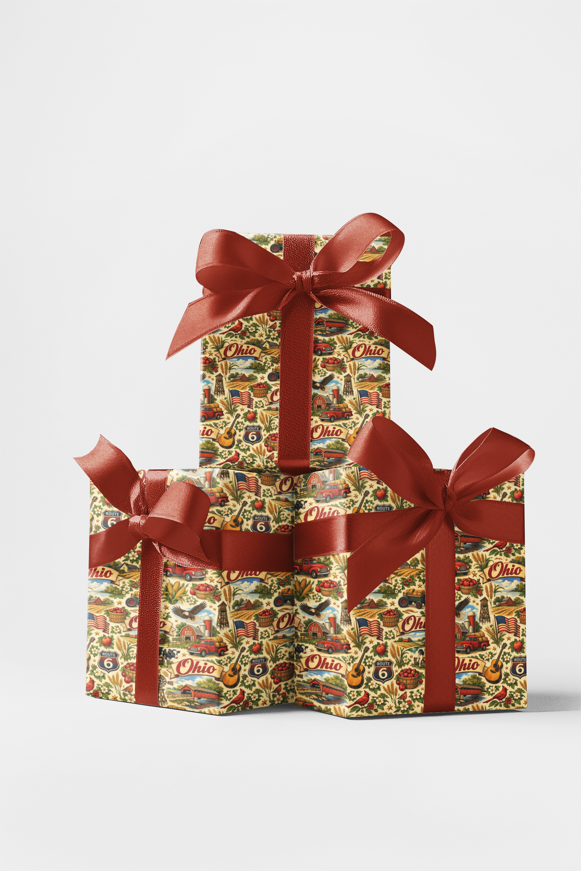 Warm and welcoming, Ohio Heritage Heart unfolds as a nostalgic patchwork of homegrown pride and timeless tradition. Rolling farmland, vintage trucks, Route 66 icons, and autumn harvests come together in rich, comforting color, echoing the rhythms of small towns and open roads. This design celebrates connection and craftsmanship—where every fold carries the heart of the Midwest, the joy of familiar places, and the enduring spirit of Ohio’s heritage.