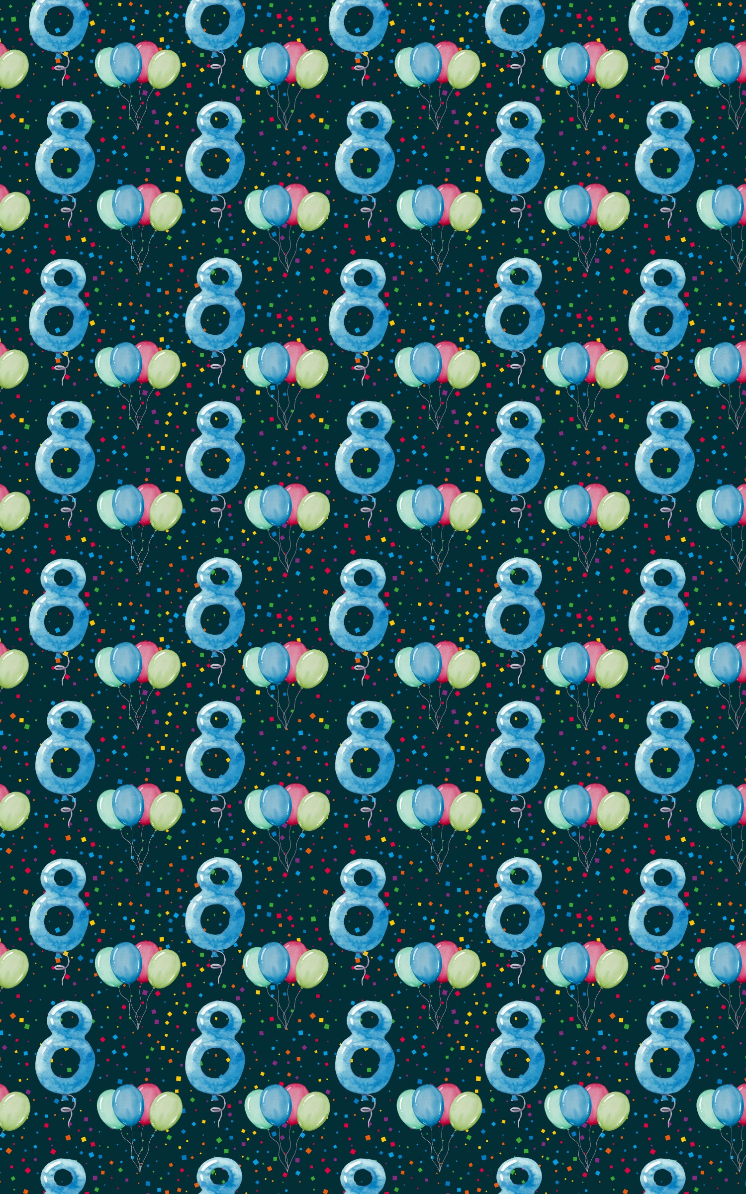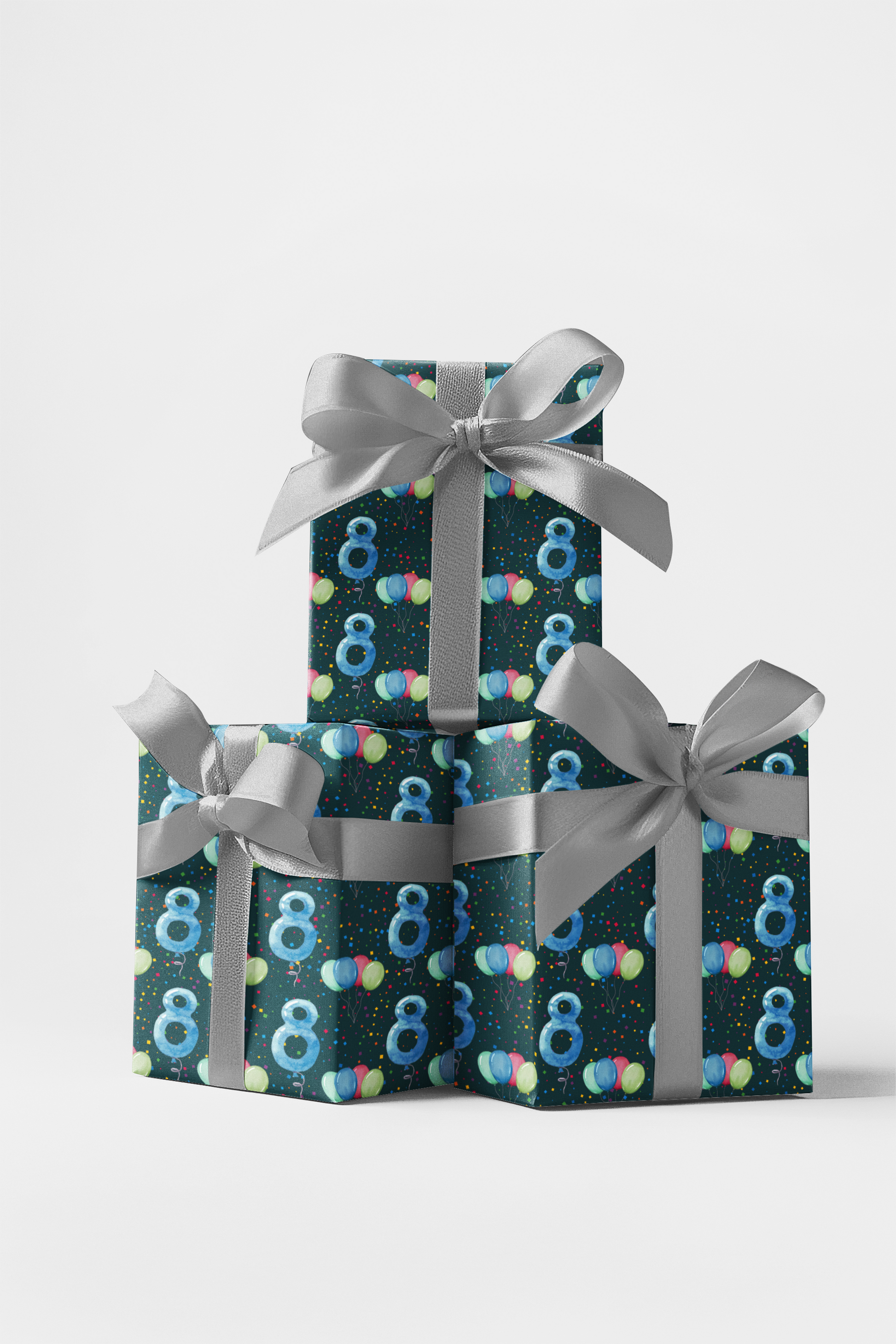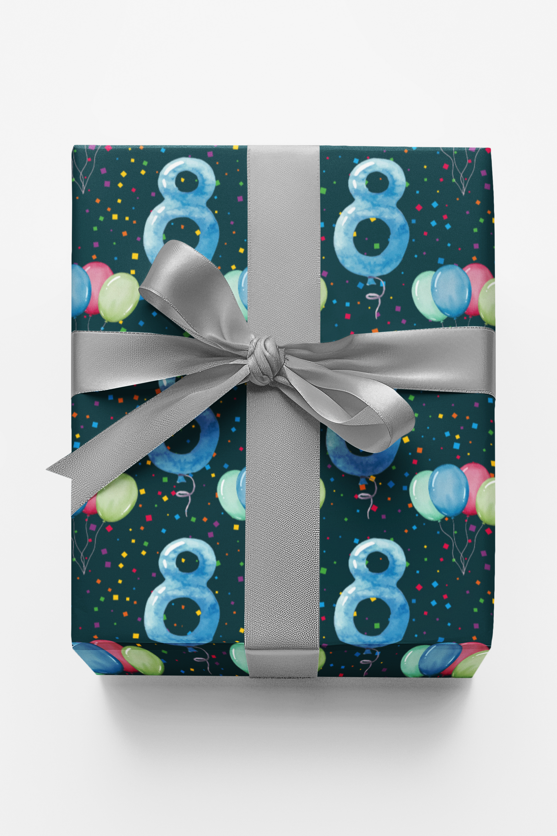 Eight is great and it’s time to celebrate! With shining balloons, bursts of confetti, and a whole lot of sparkle, this design packs all the birthday hype into one festive pattern. Turning 8 means bigger laughs, brighter wishes, and double the fun, and this wrap makes sure every gift feels like the main event!