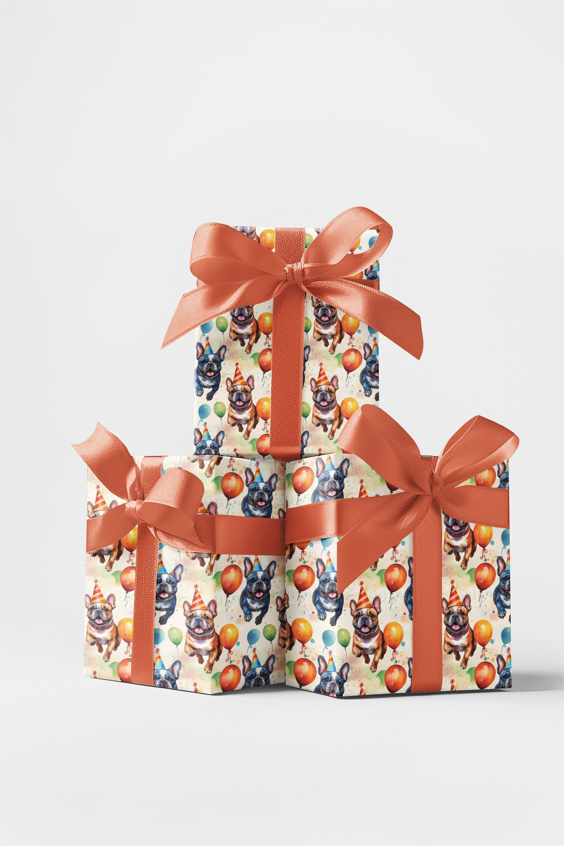 Pawty Balloons brings the party to life with cheerful French Bulldogs racing across the design, each decked out in festive hats and surrounded by colorful balloons. With its playful energy and watercolor charm, this wrapping paper is perfect for dog lovers, birthday celebrations, or anyone who wants their gifts to feel as lively and unforgettable as the big day itself.