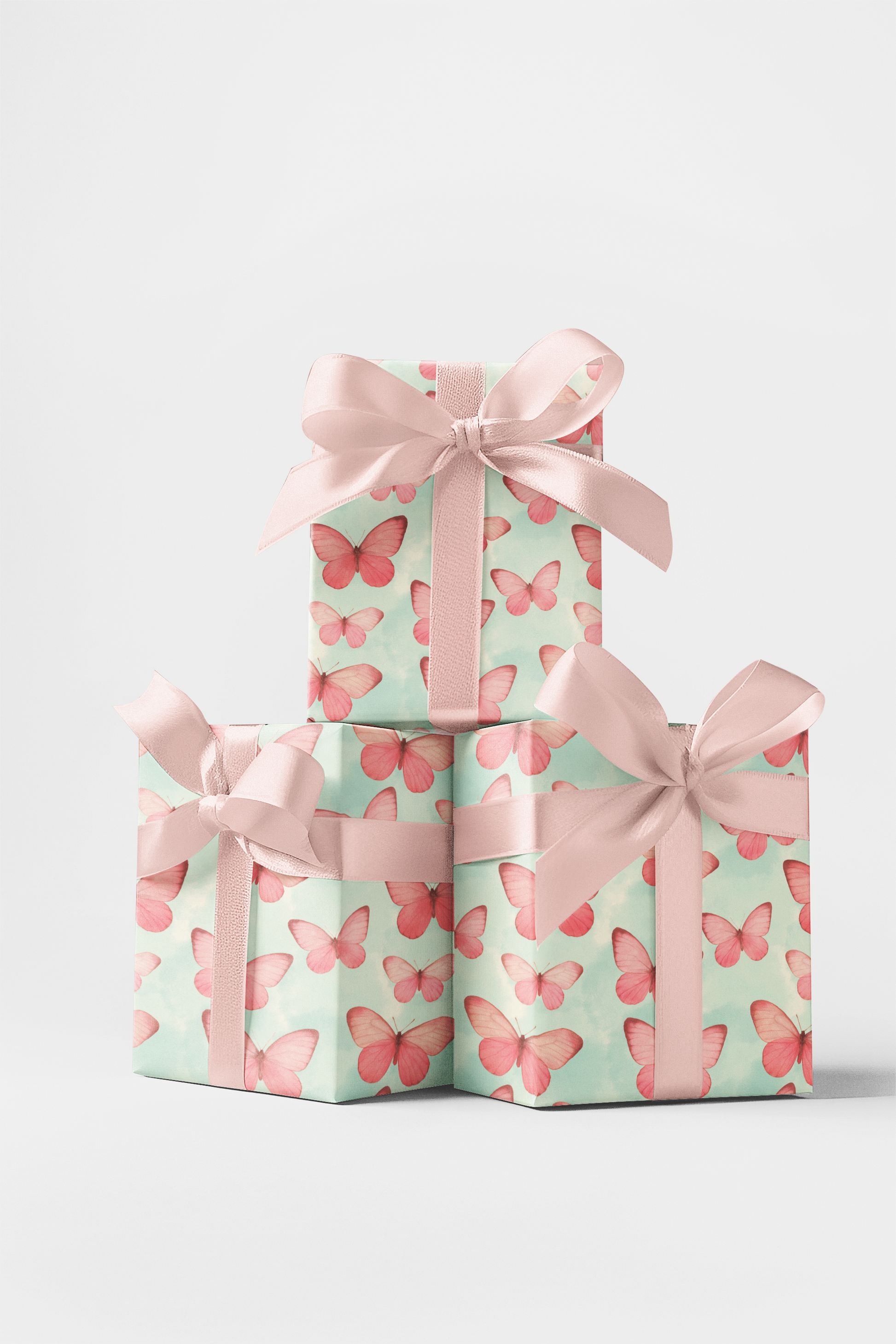 Peach Blossom Flight is a graceful yet enchanting wrapping paper featuring delicate pink butterflies in soft shades of blush, rose, and fuchsia, each painted with fine watercolor details that capture their fluttering wings and airy elegance. Gentle sunlight filters through blossoming petals, casting dappled shadows across meadows and hidden garden textures, while the pastel background evokes the serenity of a blooming spring landscape. Perfect for birthdays, garden-themed celebrations, weddings, or anyone captivated by nature’s quiet beauty, this design turns every gift into a romantic treasure of the outdoors.