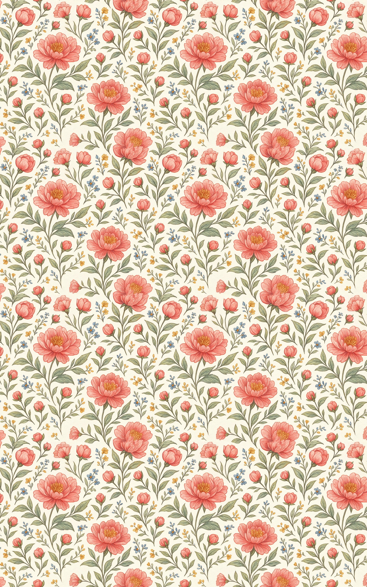Softly rendered with artist’s-hand charm, Peony Sketchbook blossoms across the page like a garden captured in dreamy pencil and watercolor. Each peony unfurls with delicate confidence—petals glowing in warm coral hues, surrounded by sprigs of gentle greenery and tiny wild blooms. The design feels like flipping through a cherished sketch journal, where every stroke is thoughtful, expressive, and full of quiet beauty. This pattern celebrates natural artistry—where every fold carries a whisper of creativity, every glance reveals new detail, and every bloom tells a story drawn straight from the heart.