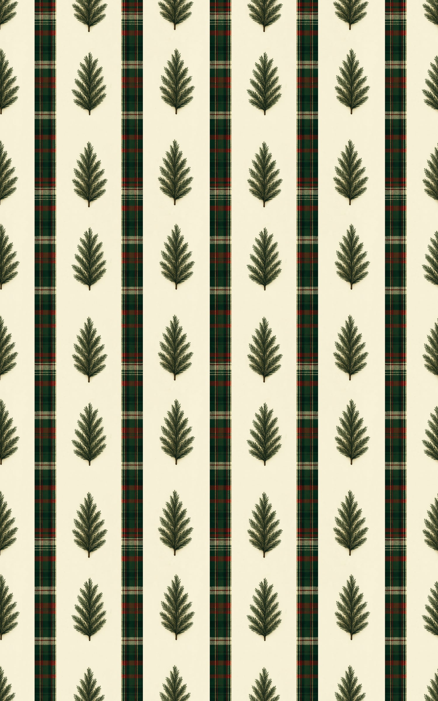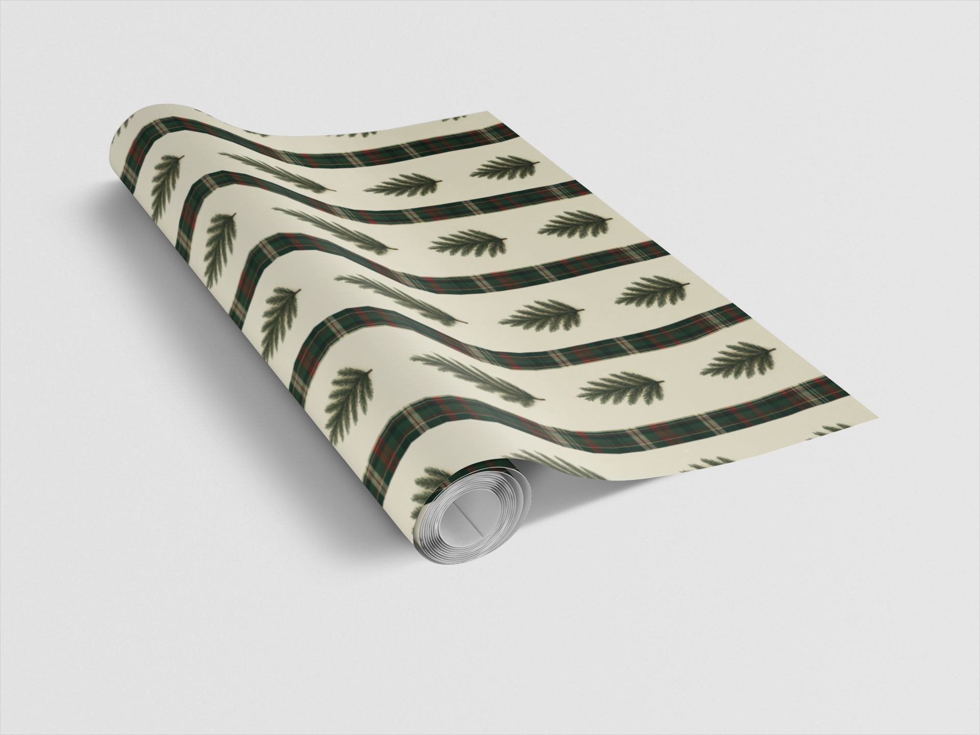 Blending woodland charm with timeless holiday tradition, this design strikes a perfect harmony between nature and nostalgia. Crisp rows of evergreen sprigs stand tall against creamy winter stripes, while classic red-and-green plaid adds a warm, heritage touch. Pine & Plaid Stripe celebrates rustic elegance and festive simplicity—where every fold feels grounded in tradition, every glance carries the scent of winter woods, and every gift is wrapped in the comforting rhythm of a pattern that never goes out of style.