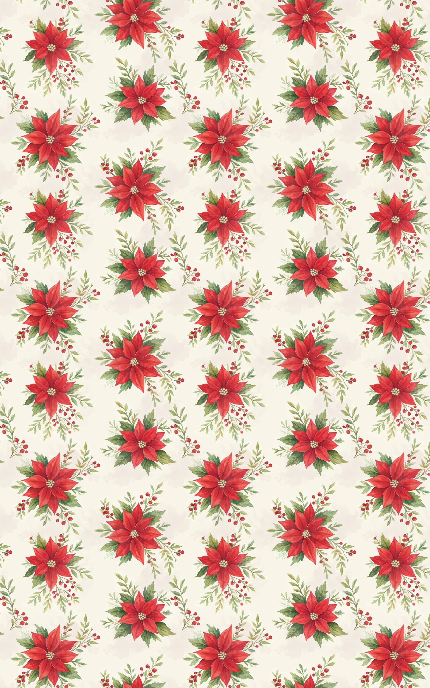 Wrap your gifts in timeless holiday elegance with this beautiful wrapping paper featuring hand-painted watercolor poinsettias accented by soft greenery and winter berries. The seamless design captures the warmth and charm of a classic Christmas bloom, bringing sophistication and festive spirit to every package. Perfect for holiday gifts, décor, or creative projects, this design pairs traditional red and green tones with a soft neutral background for a polished, artisanal finish.