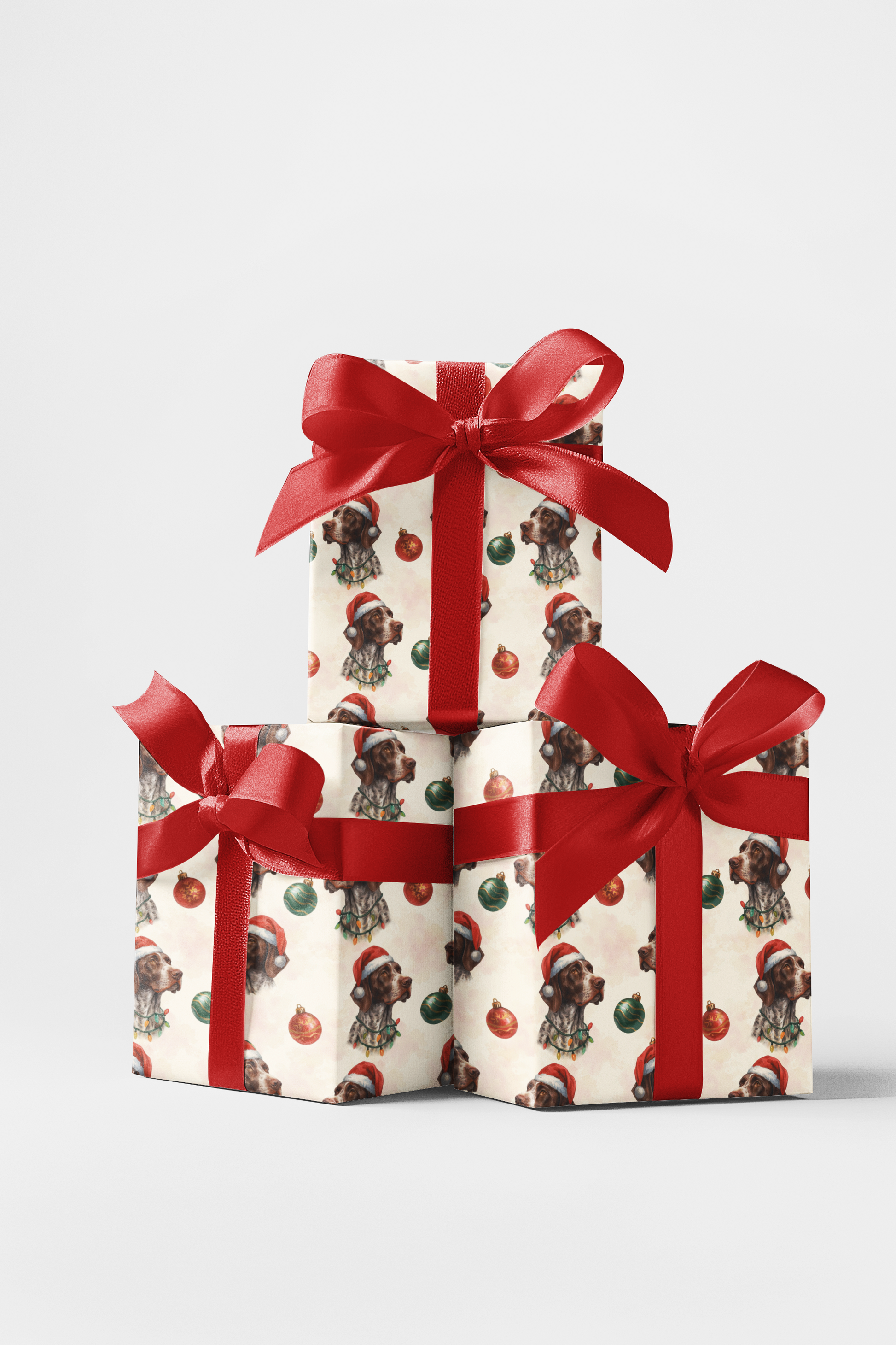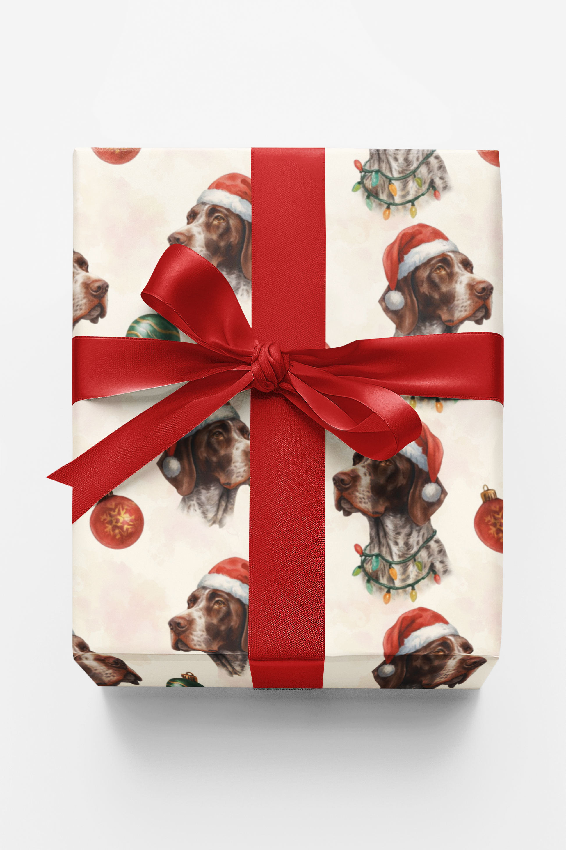 Graceful and alert, this Pointer stands as the very image of festive spirit and loyal warmth. Wrapped in glowing lights and crowned with a Santa hat, it gazes into the season with bright eyes and a heart full of joy. Its sleek coat gleams like polished chestnuts under holiday glow, capturing both elegance and playfulness in perfect balance. This design celebrates devotion, adventure, and cheer—where every glance carries a spark of excitement, and every fold holds the timeless magic of a Pointer of Cheer.
