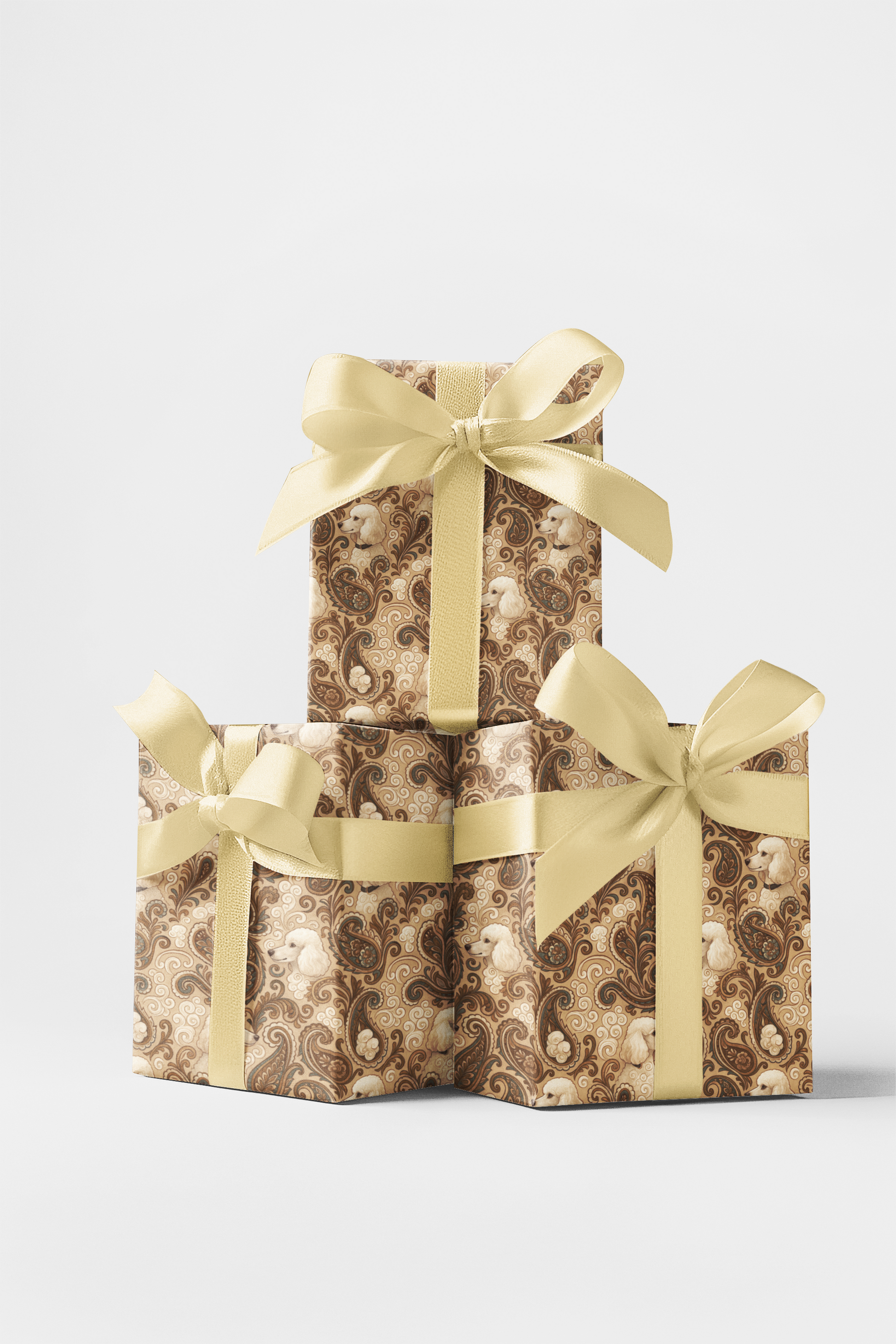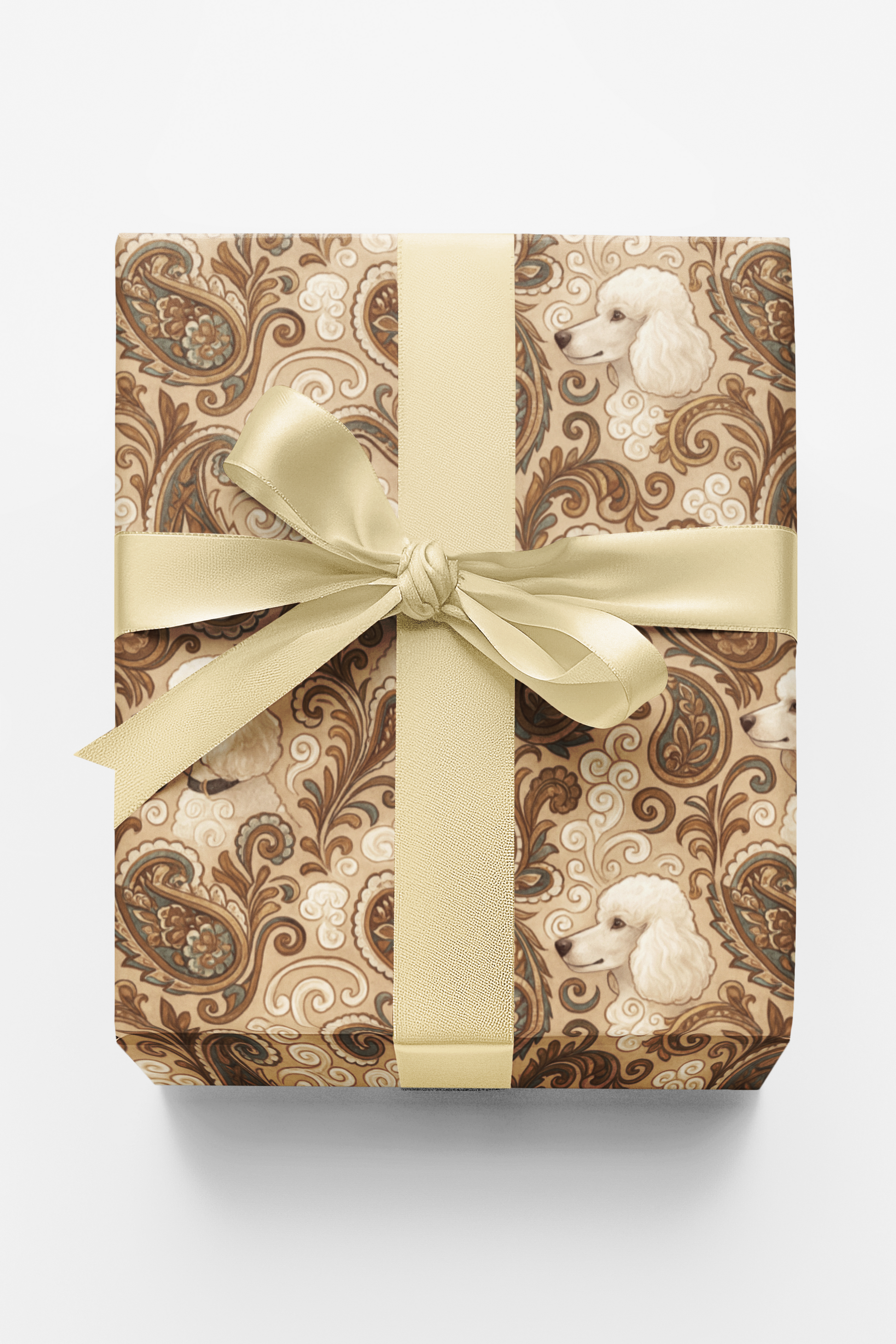 Wrap your gifts with timeless sophistication using our Poodle Paisley Wrapping Paper! This refined design features graceful paisley swirls artfully intertwined with poodle profiles and curly accents, all rendered in muted, elegant tones. The result is a chic, vintage-inspired look that perfectly balances whimsy and class — ideal for dog lovers, fashion enthusiasts, and anyone who appreciates a touch of understated luxury in their gift wrapping.