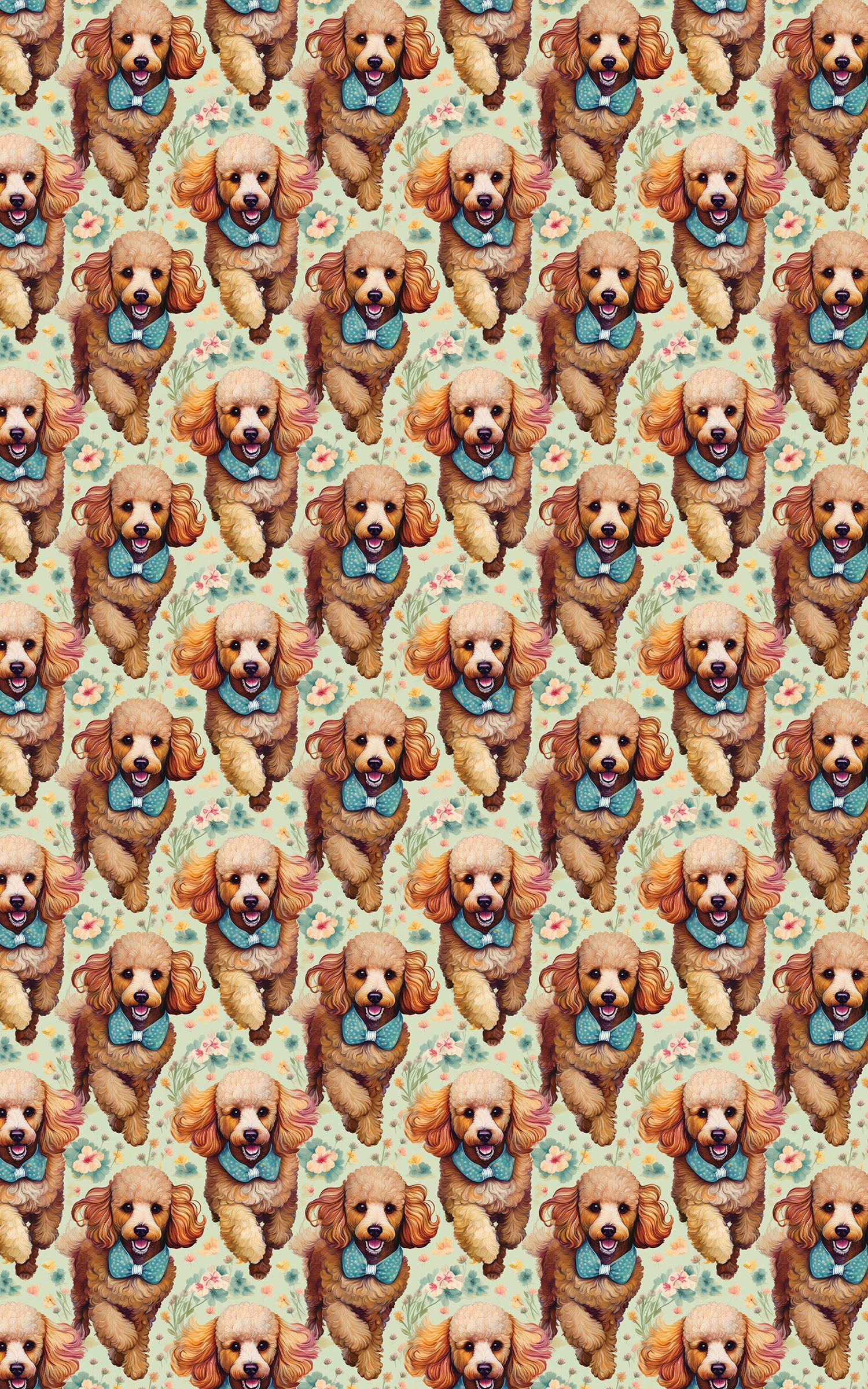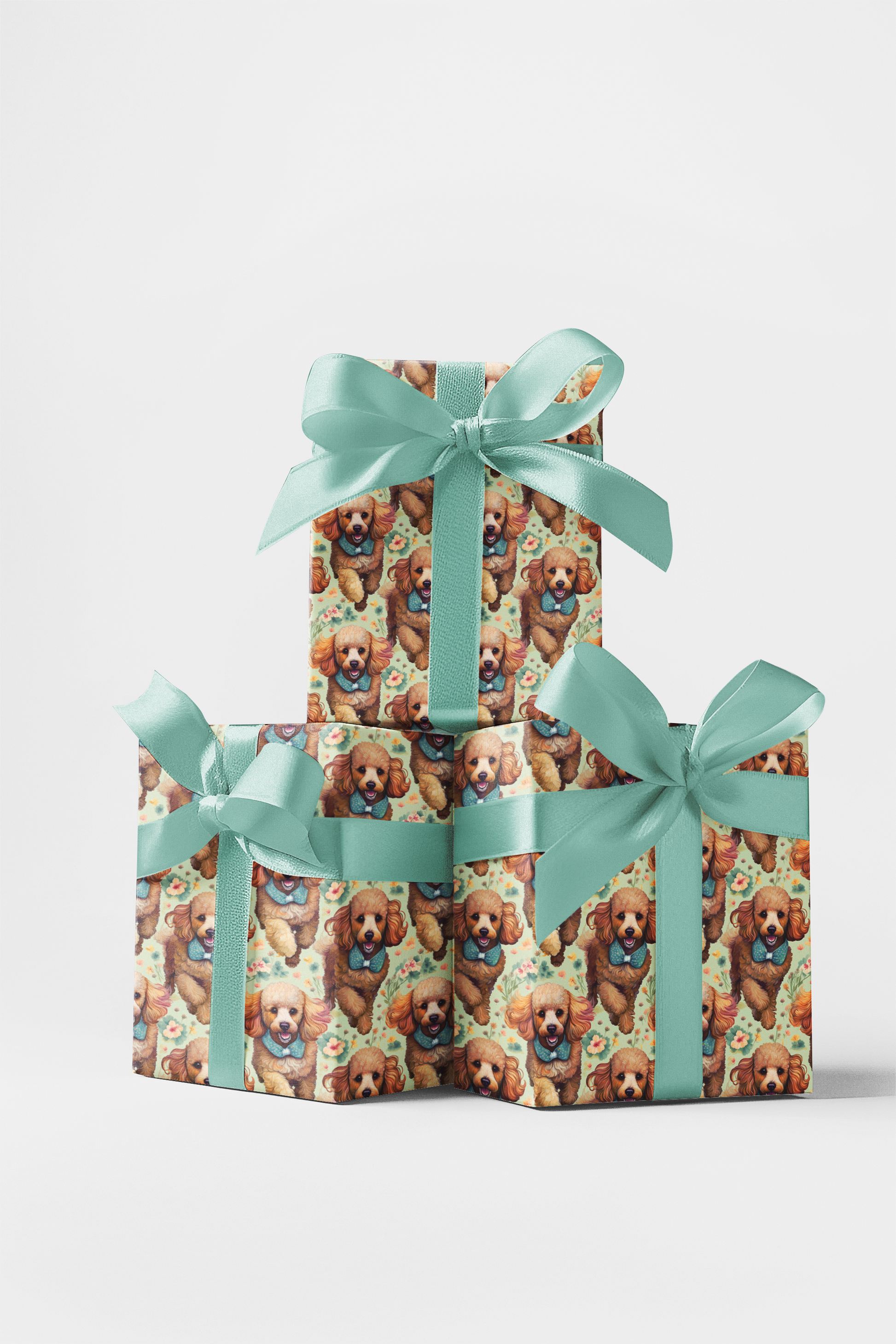 Posh Poodle Blooms combines timeless style with playful charm, featuring running poodles illustrated in a classic toile design. Hand-painted in watercolor with soft shadows, the pattern is enriched with subtle accent icons like bones and bows, giving it a refined yet whimsical touch. Perfectly balanced and evenly repeating, this wrapping paper is ideal for dog lovers, elegant celebrations, or anyone who wants their gifts to look as sophisticated as they are delightful.
