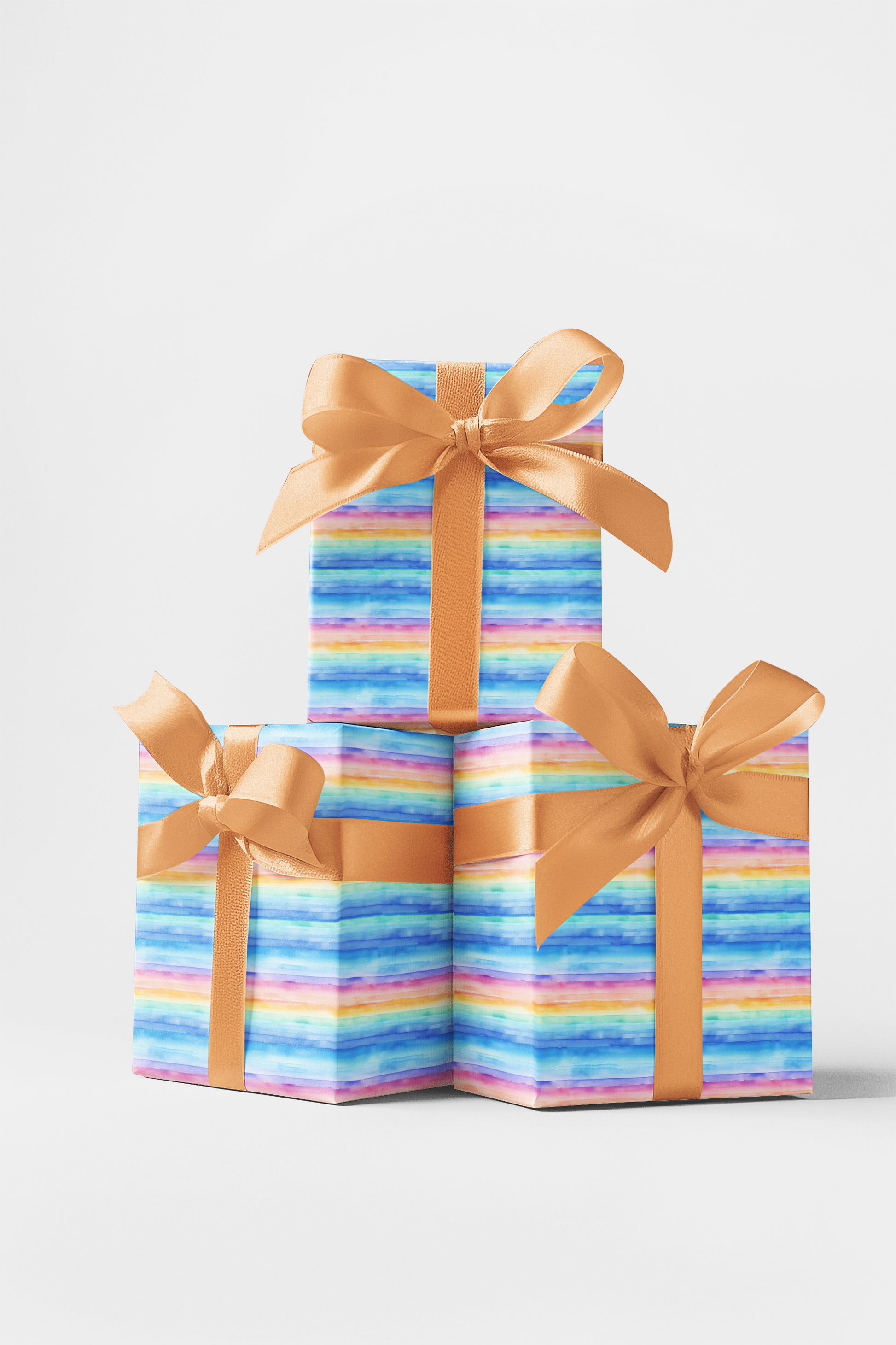Drifting through soft skies of watercolor wonder, Rainbow Breeze dances with pastel light and serene joy. Each stripe flows like a whisper of wind through clouds, carrying hints of sunshine, laughter, and calm seas. The hues blend in effortless harmony—pink blushes into gold, blue melts into violet—creating a rhythm that feels both gentle and alive. This design celebrates the art of tranquility in motion, where every fold flutters with warmth, and every gift feels wrapped in a breath of dreamy delight.