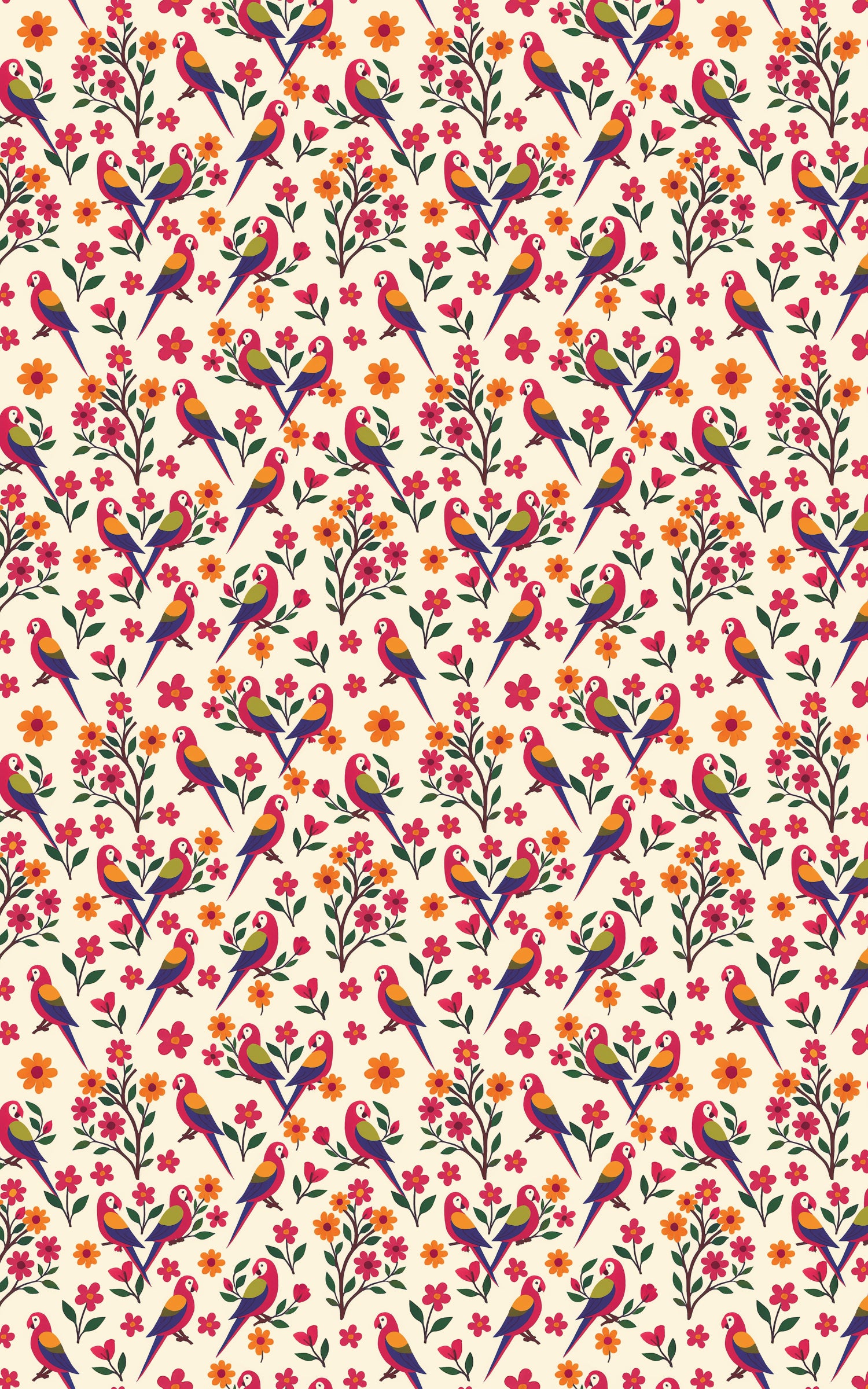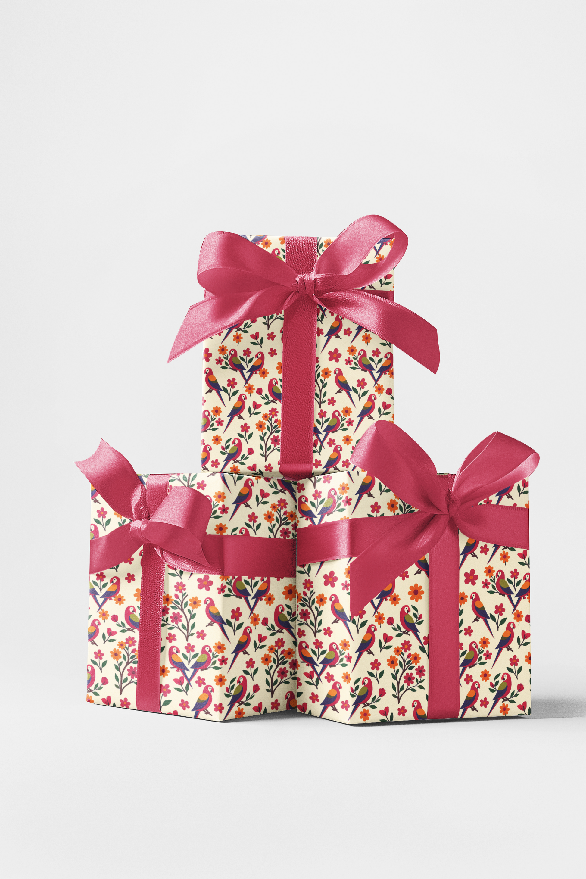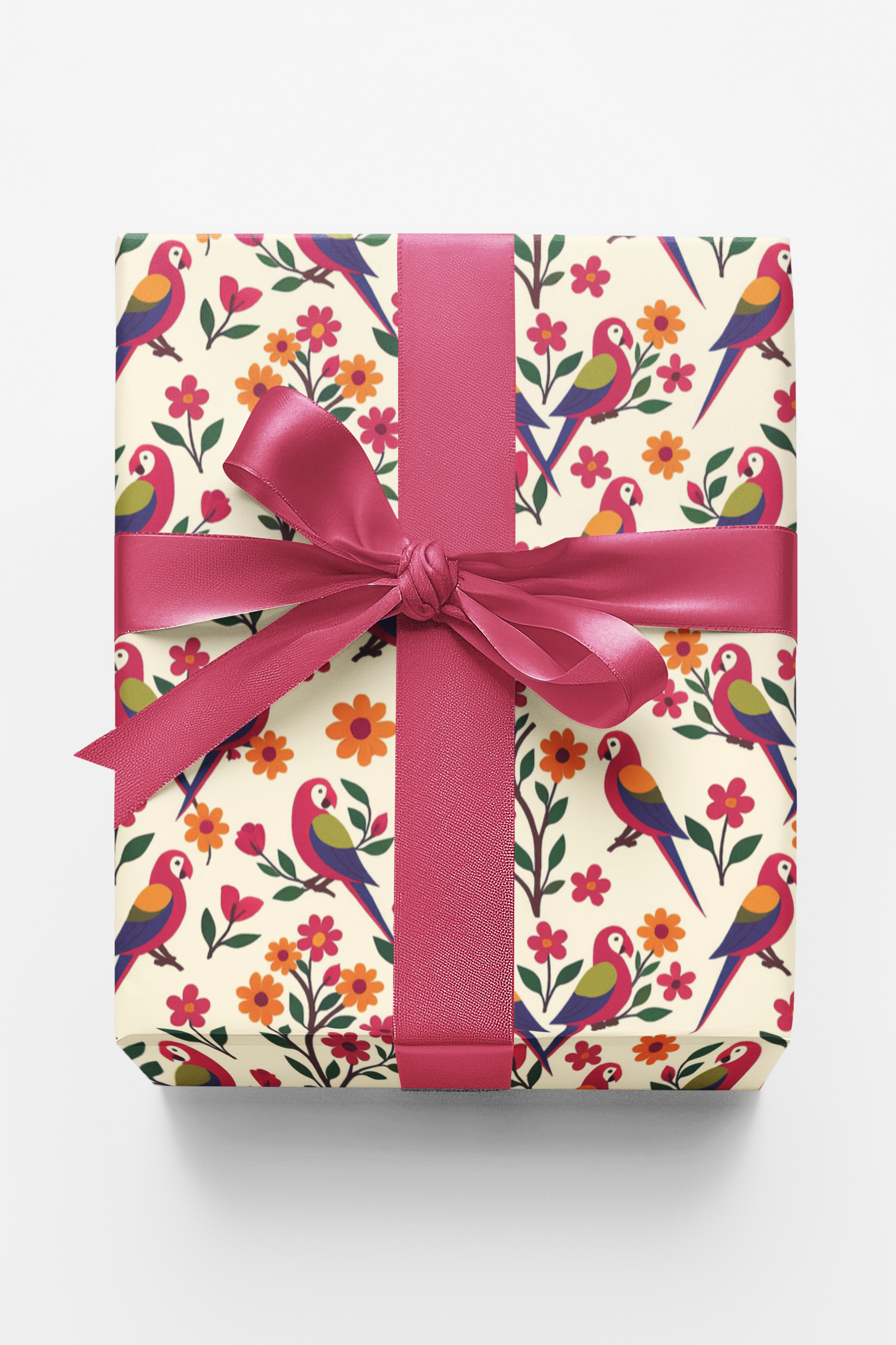 Bring your gifts to life with this vibrant wrapping paper featuring colorful rainforest birds perched among blooming flowers and lush greenery. Illustrated in a cheerful folk-art style with bold pinks, oranges, greens, and blues, this seamless design feels joyful, lively, and full of tropical charm. Perfect for birthdays, celebrations, summer gifting, or everyday wrapping, it adds a playful, artistic touch that feels both whimsical and beautifully handcrafted.