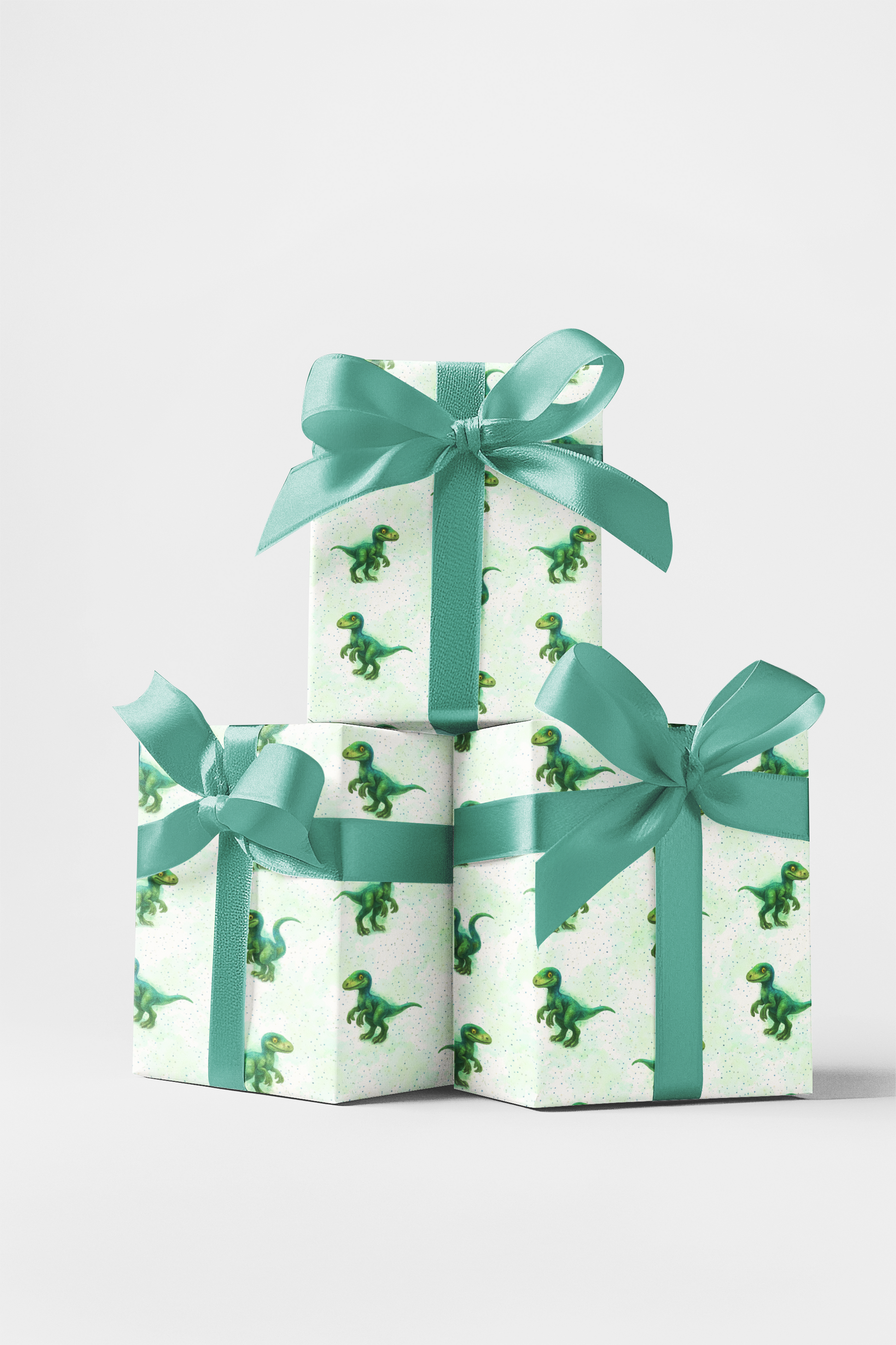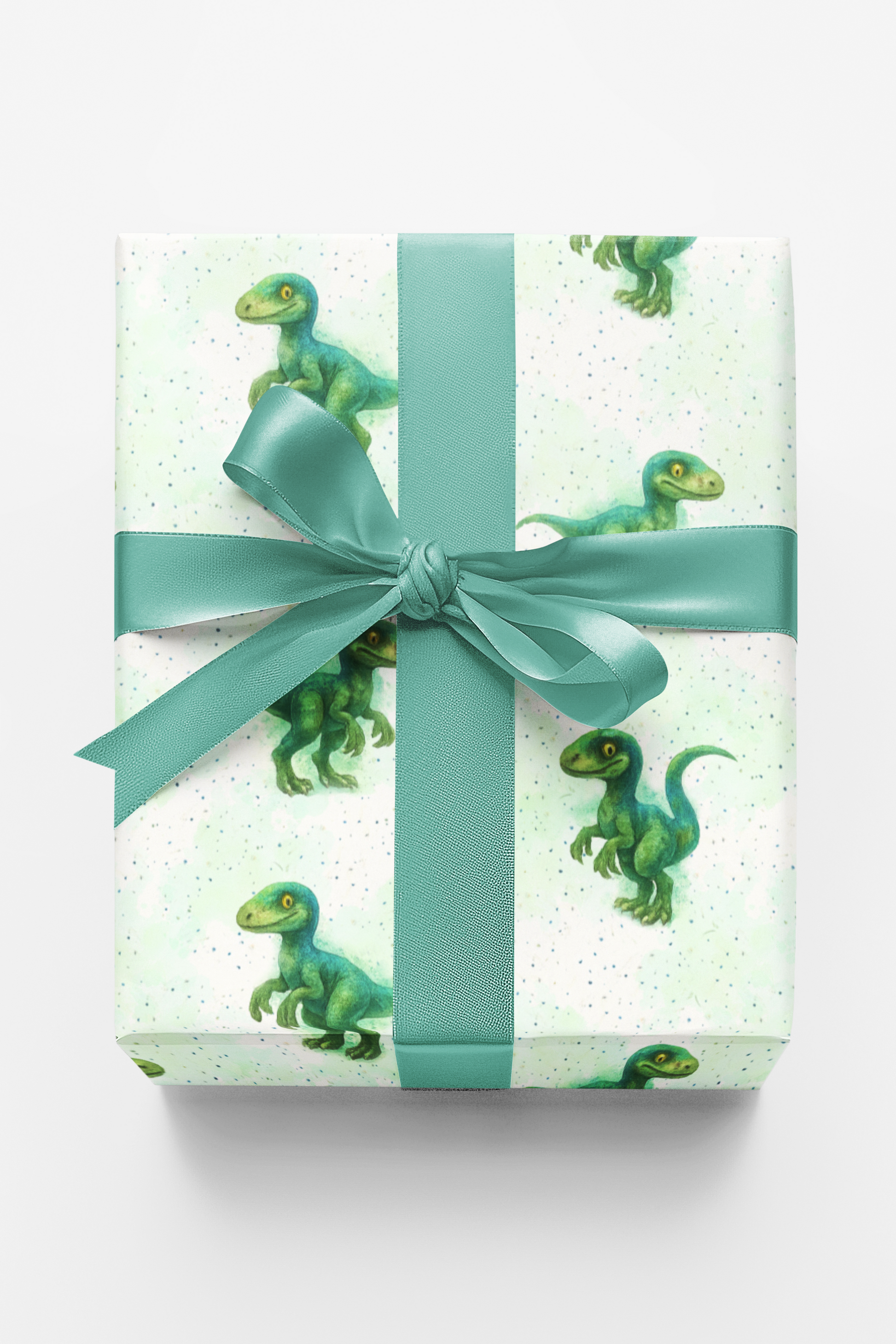 Energetic and clever, the Velociraptor brings lively prehistoric charm to this captivating wrapping paper design. Captured in motion with its sleek build and alert gaze, its spirited nature and timeless presence shine through, adding both excitement and character to every gift. Perfect for dinosaur lovers and any occasion, this design celebrates the beauty and individuality of this remarkable creature.