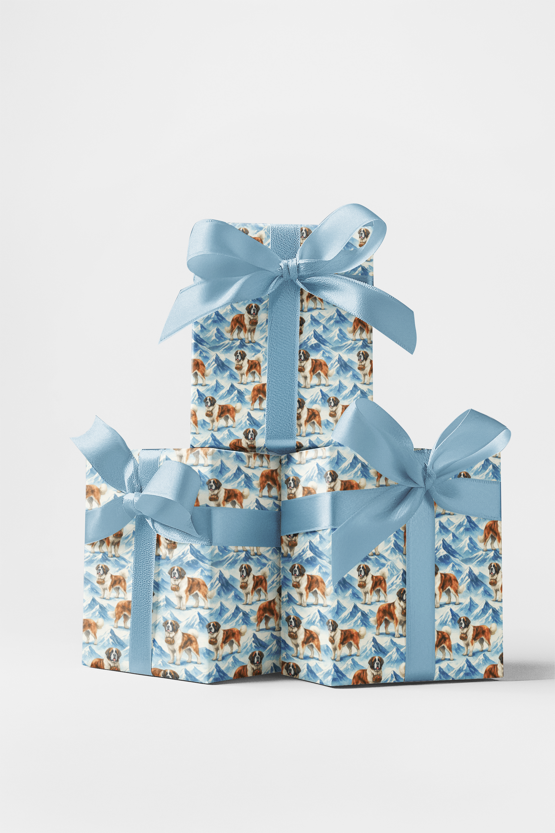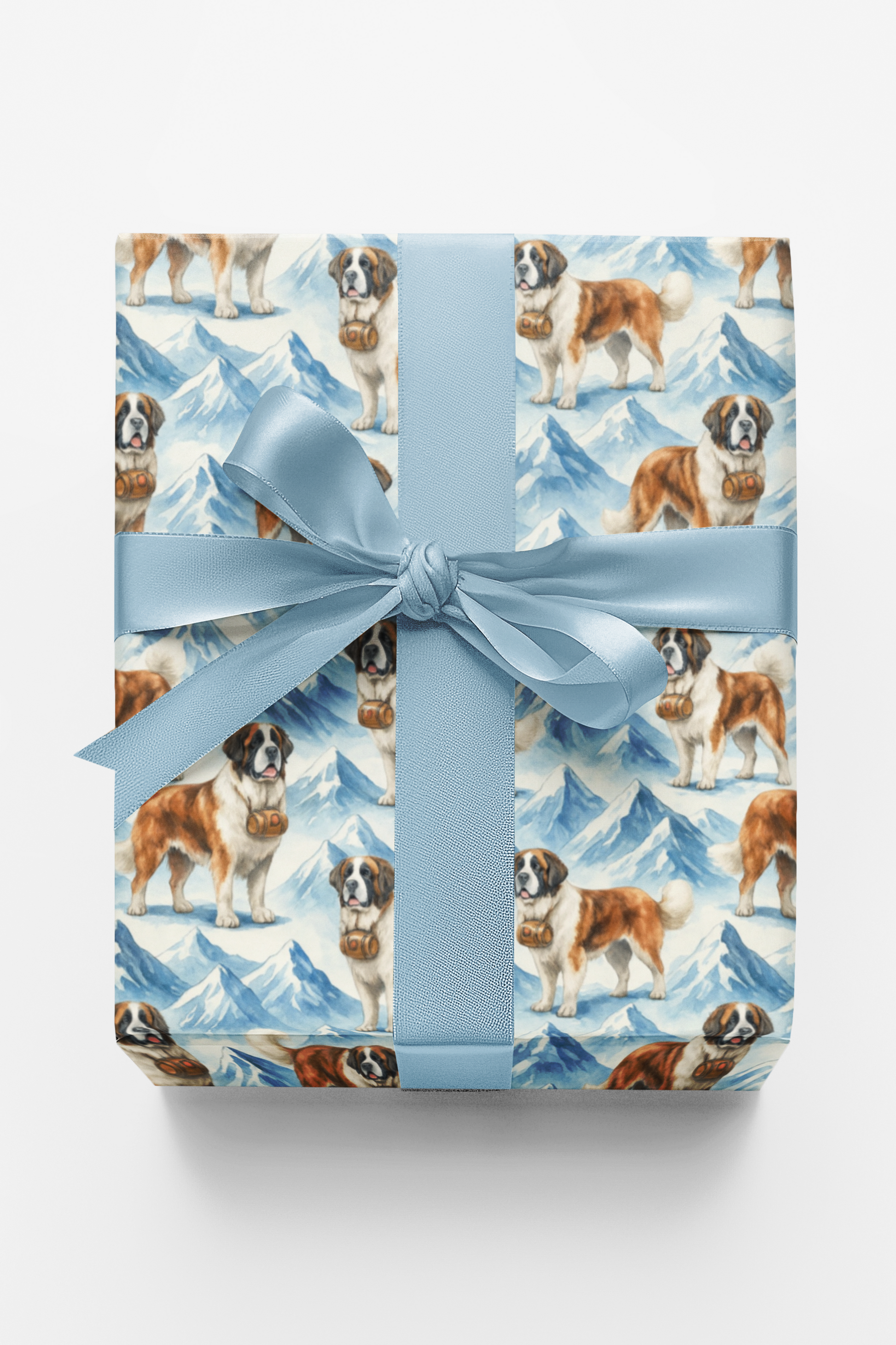 Bring alpine charm to your gifts with our Saint Bernard Summit wrapping paper. Featuring snowy mountain peaks and playful Saint Bernards carrying their iconic small brandy barrels, this design evokes cozy winter adventures and festive spirit. Perfect for dog lovers, winter holidays, and mountain-themed celebrations, it adds warmth and whimsy to every present.