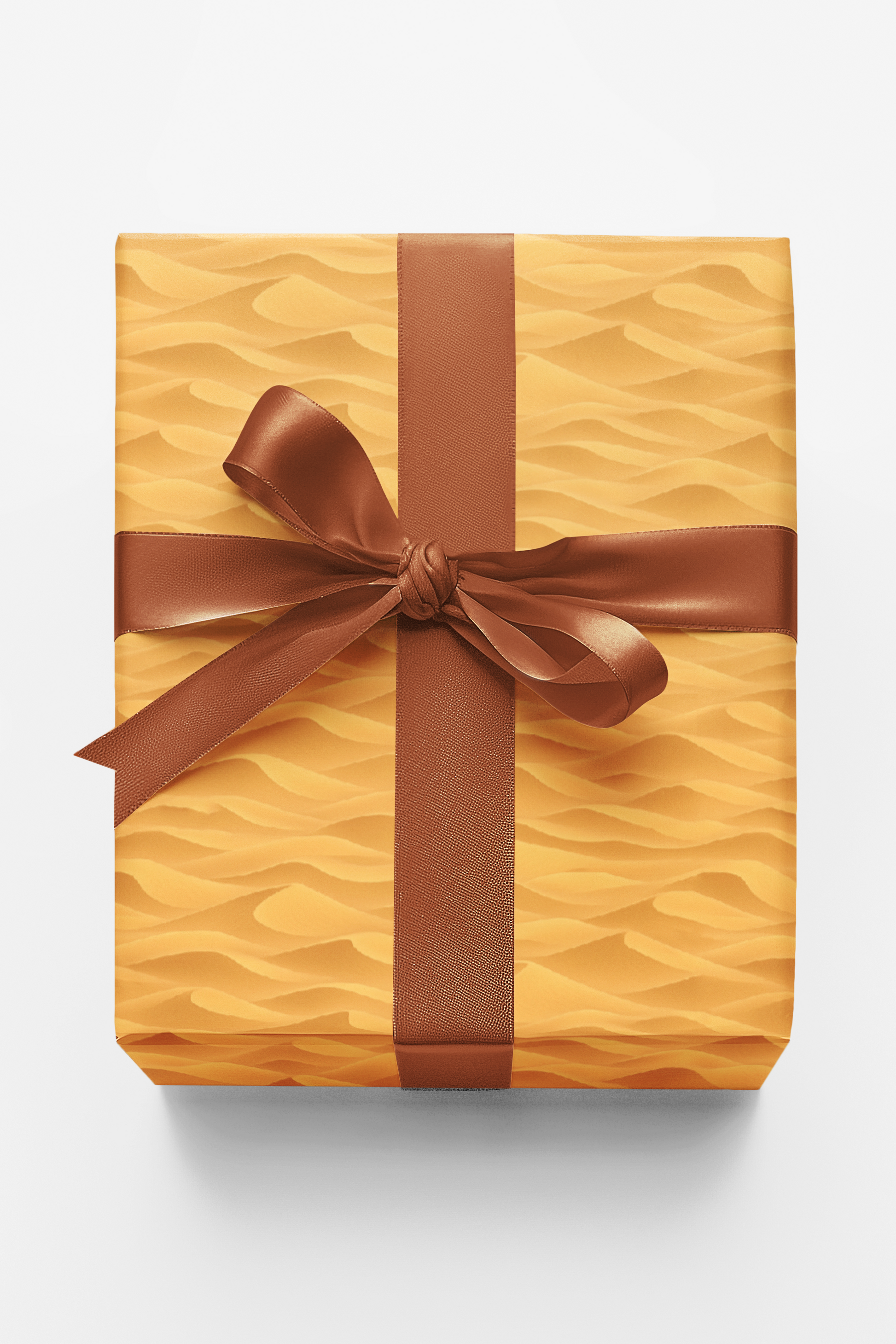 Bring warmth and understated luxury to your gifts with this beautiful wrapping paper inspired by the shifting patterns of desert sands. Featuring soft golden tones with a subtle wavy texture, this design captures the serenity and radiance of sunlit dunes. Its minimalist elegance and organic movement make it perfect for birthdays, holidays, and year-round gifting. Pair it with ivory, black, or metallic gold ribbons for a sophisticated, elevated finish that feels timeless, modern, and effortlessly chic.