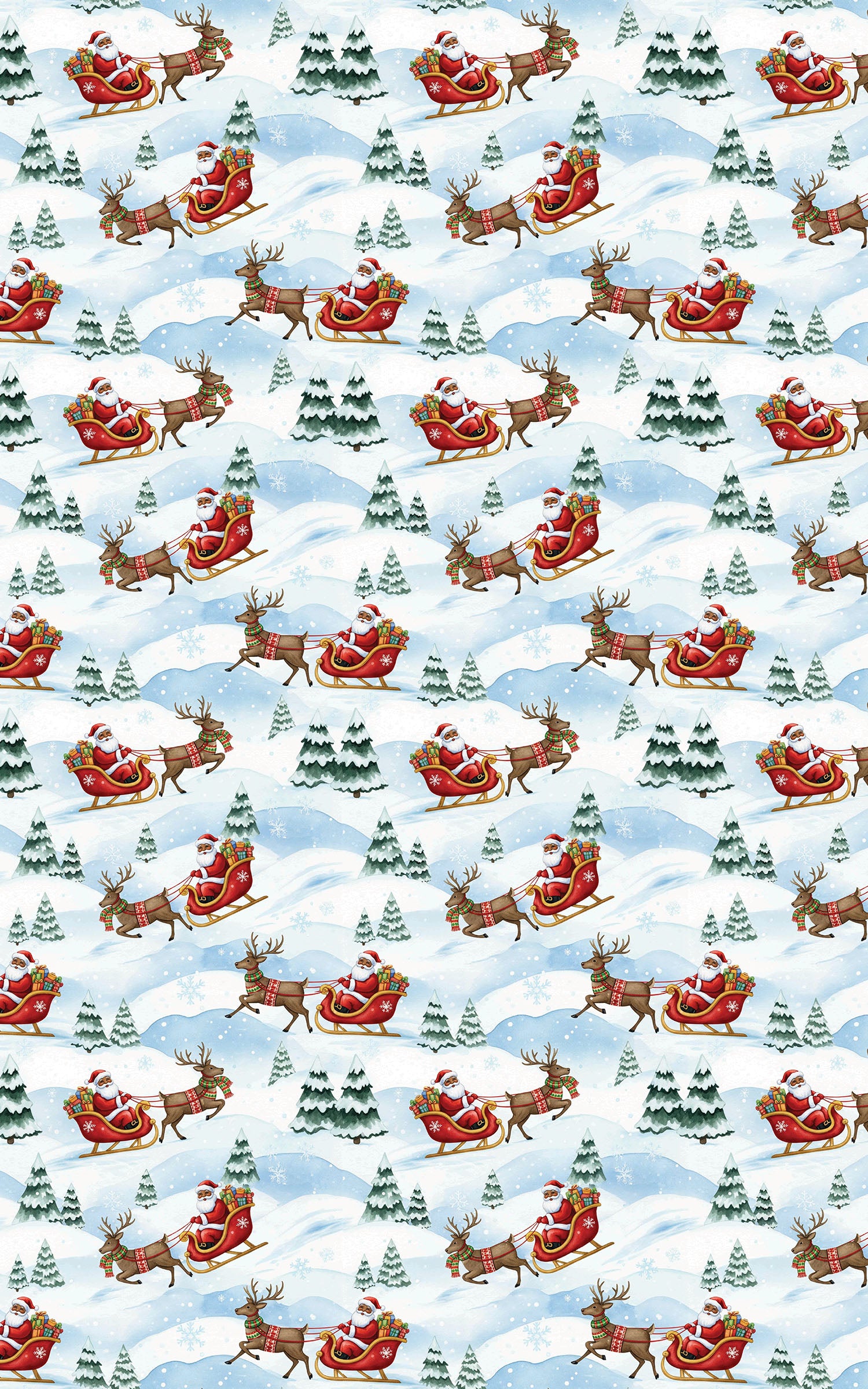 Santa’s back in the skies, but this time his reindeer are dressed to impress—bundled in patterned scarves and dashing through a snowy wonderland. This cheerful pattern captures the magic of winter nights and the thrill of Santa’s journey overhead. Perfect for wrapping gifts that deserve a little extra sparkle and whimsy this season. Because let’s face it—Santa’s not just flying through the snow, he’s leading the best-dressed sleigh team of the year!