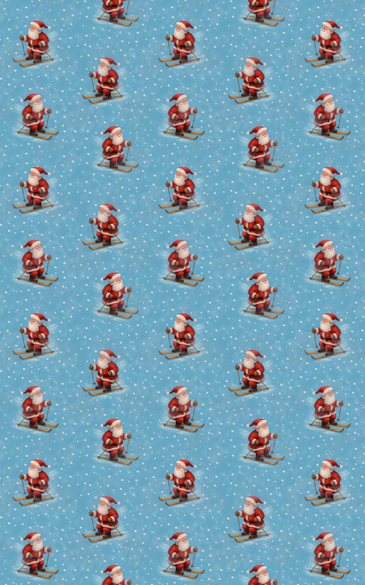 With cheerful momentum and a twinkle of mischief, Santa cuts across a snowy sky on his trusty skis, leaving trails of magic in his wake. Each figure bursts with classic holiday warmth—rosy cheeks, bright red suit, and the joyful confidence of a legend who’s mastered winter itself. The soft blue backdrop drifts with gentle snow, turning every fold into a playful adventure. This design celebrates spirited motion and timeless charm, where Santa doesn’t just deliver gifts—he glides through the season with effortless wonder.