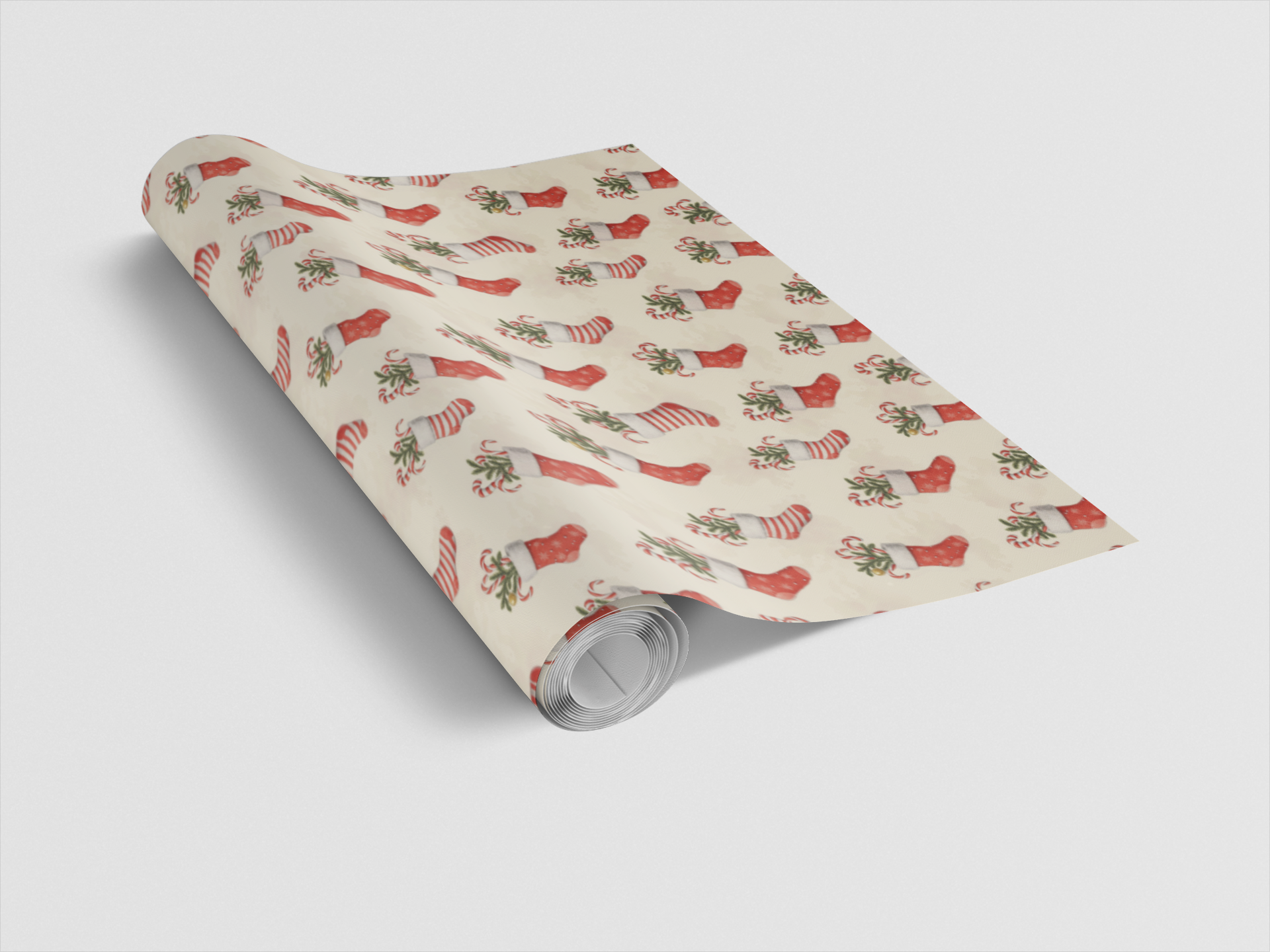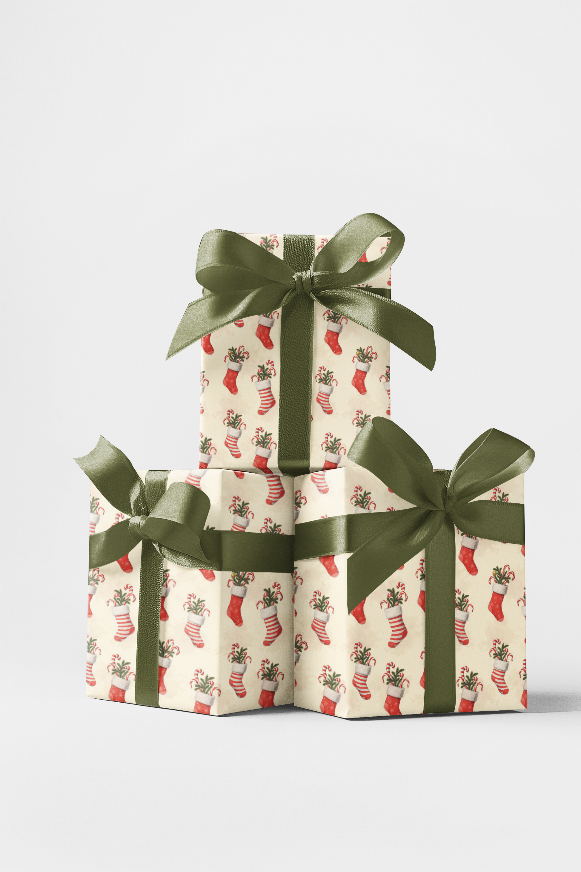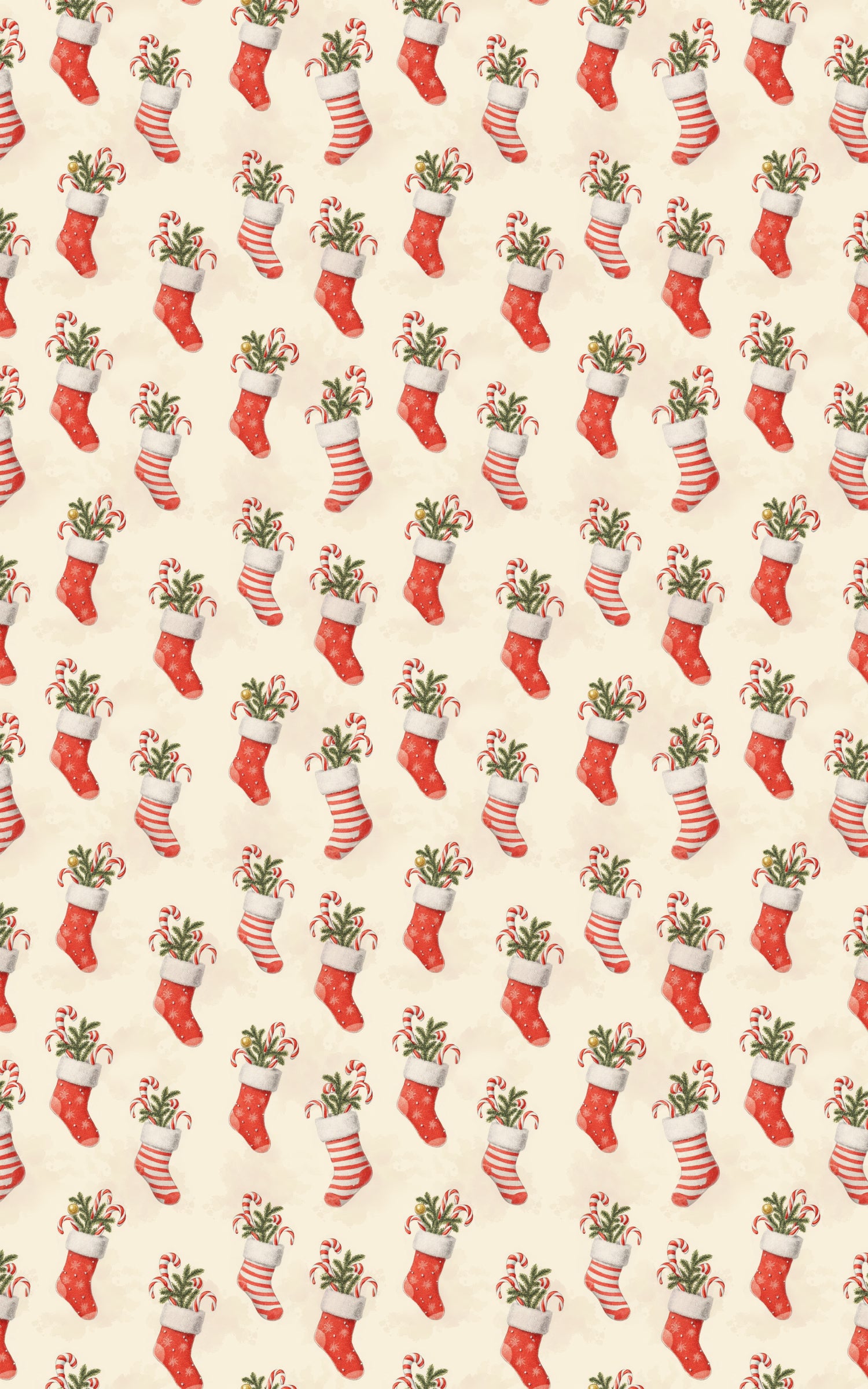 Brimming with holiday cheer, these festive stockings dance across the page like tiny bundles of Christmas magic. Each sock—stuffed with candy canes, evergreens, and joy—radiates nostalgic warmth and playful charm. The hand-painted reds and soft creams glow like a cozy fireside, turning every fold into a celebration of whimsy and wonder. This design captures the heart of the season, where every glance feels like unwrapping a small, spirited secret from Santa himself.