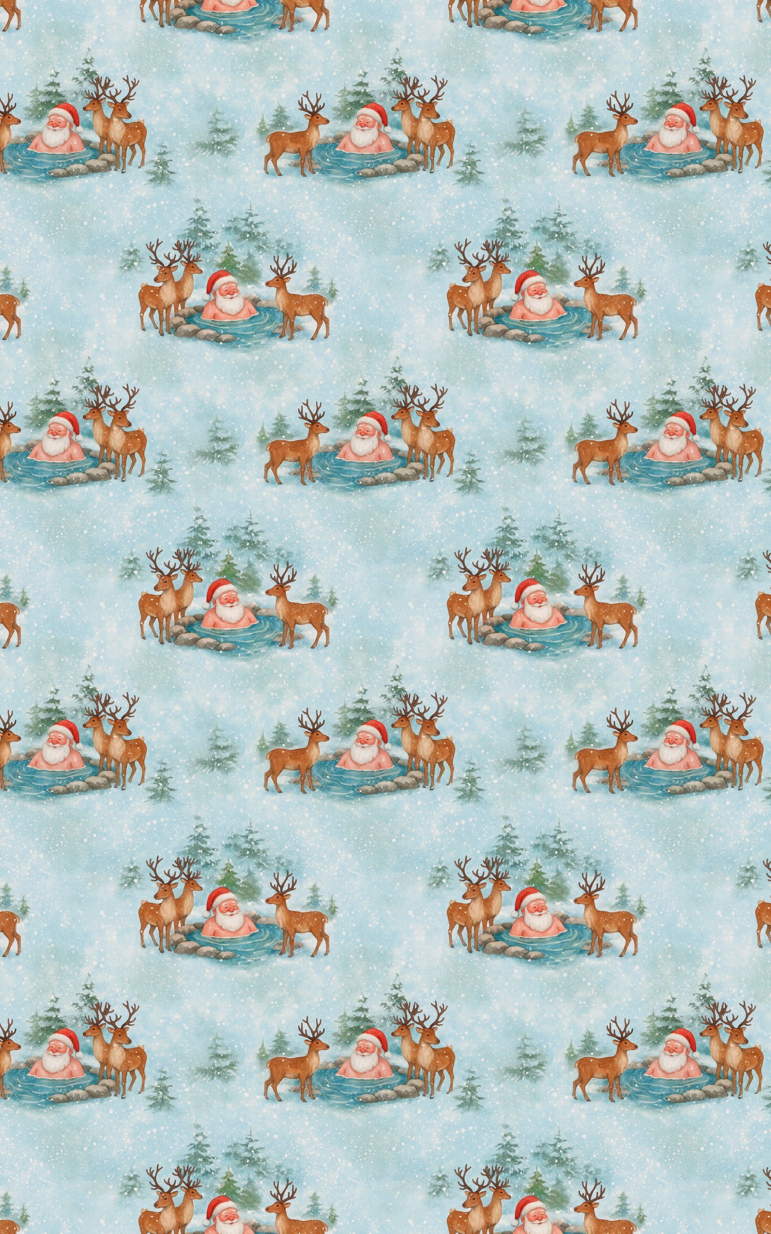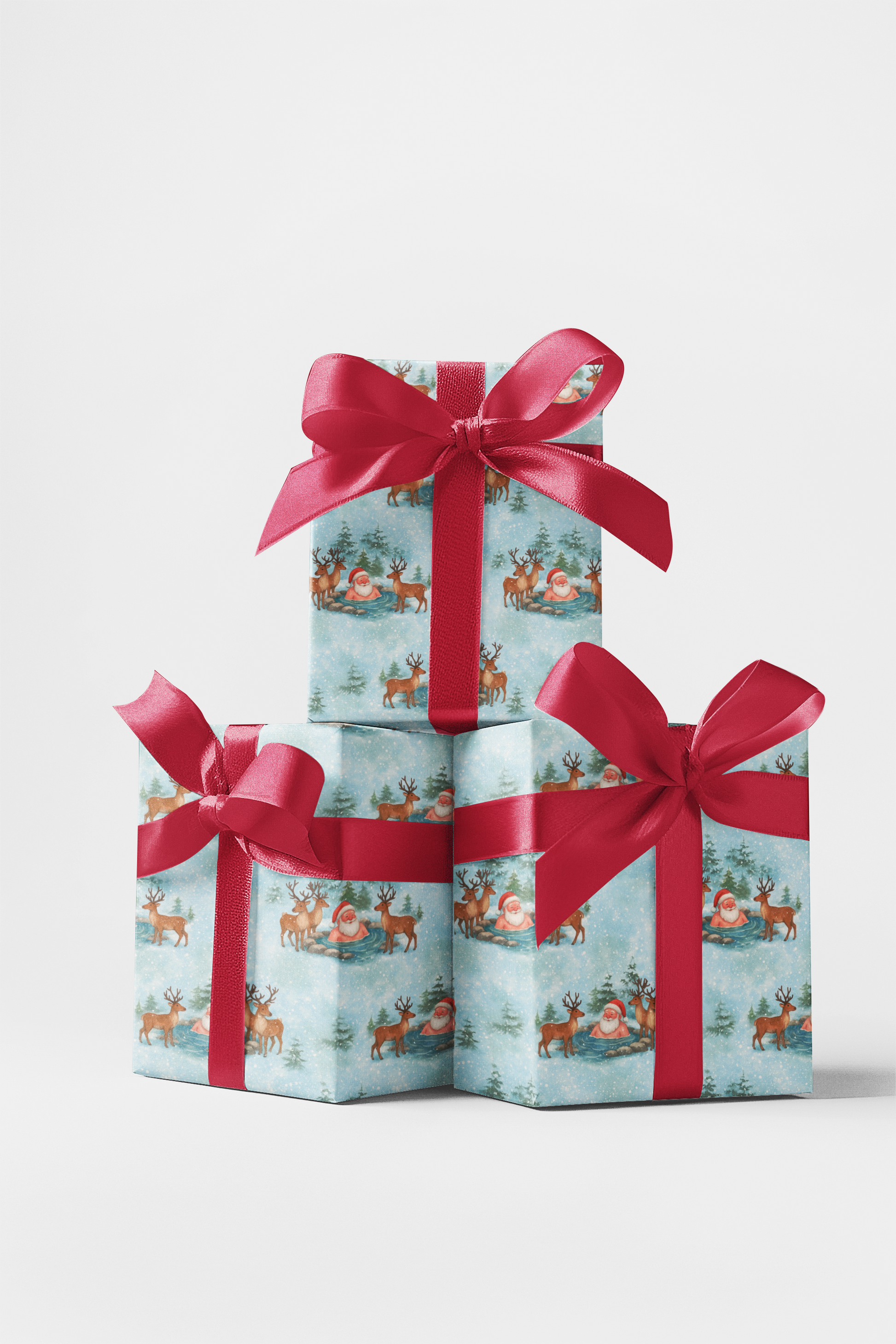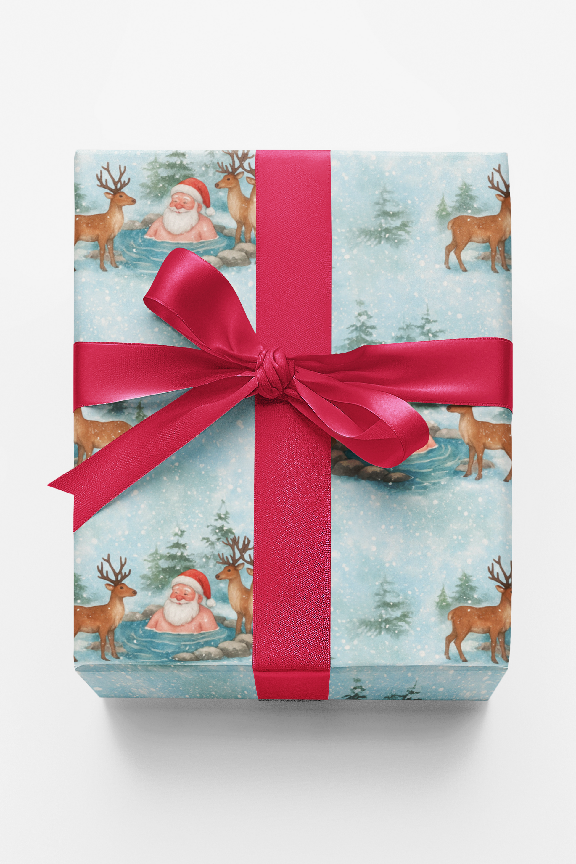 Chillin’ & Soakin' Turns out even Santa needs a spa day! Forget the North Pole workshop hustle this year, he’s trading toy-making for hot spring soaking, with reindeer on lifeguard duty. This quirky design is the perfect mix of cozy and cheeky, making your holiday wrapping just as fun as what’s inside.