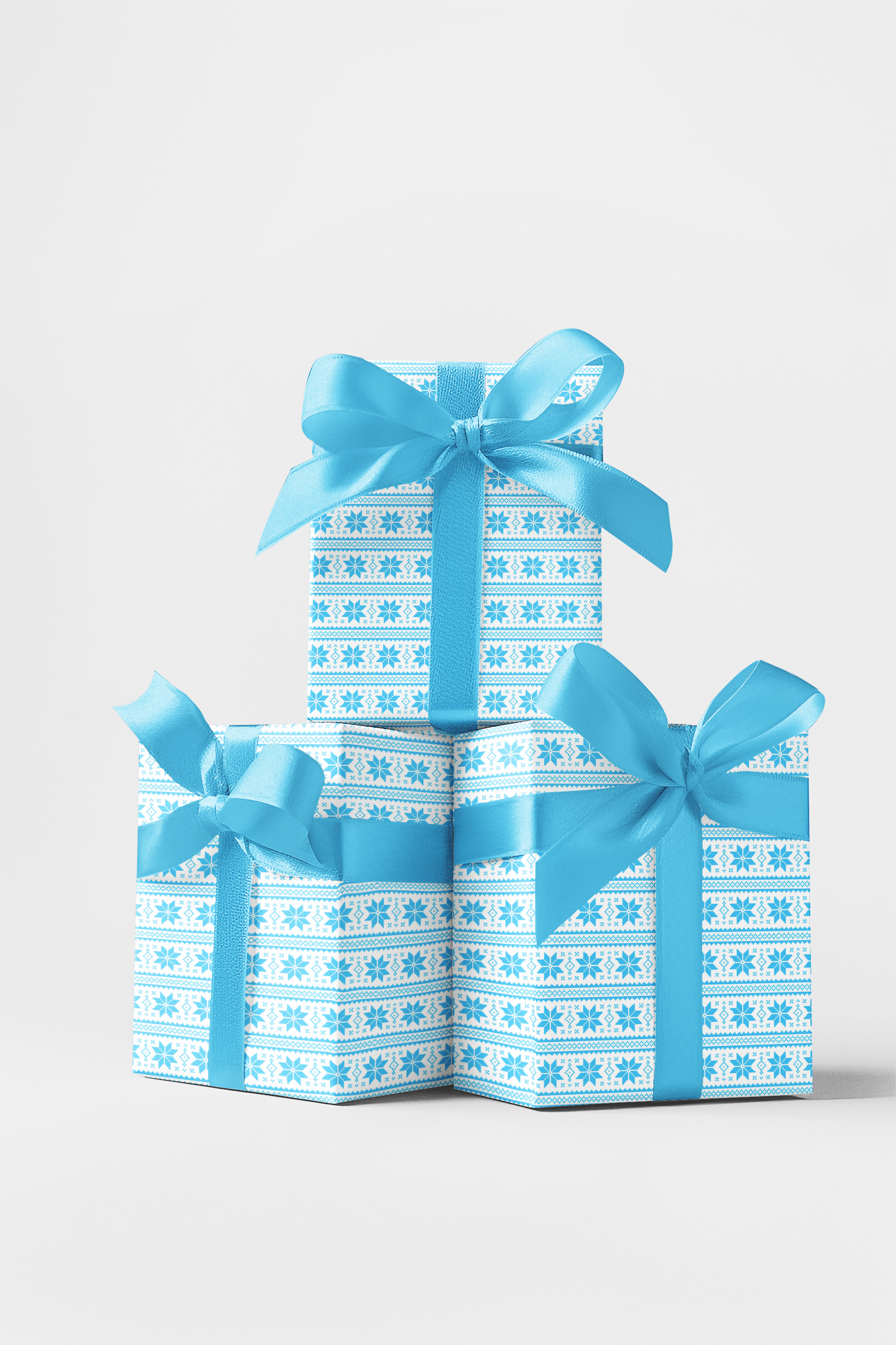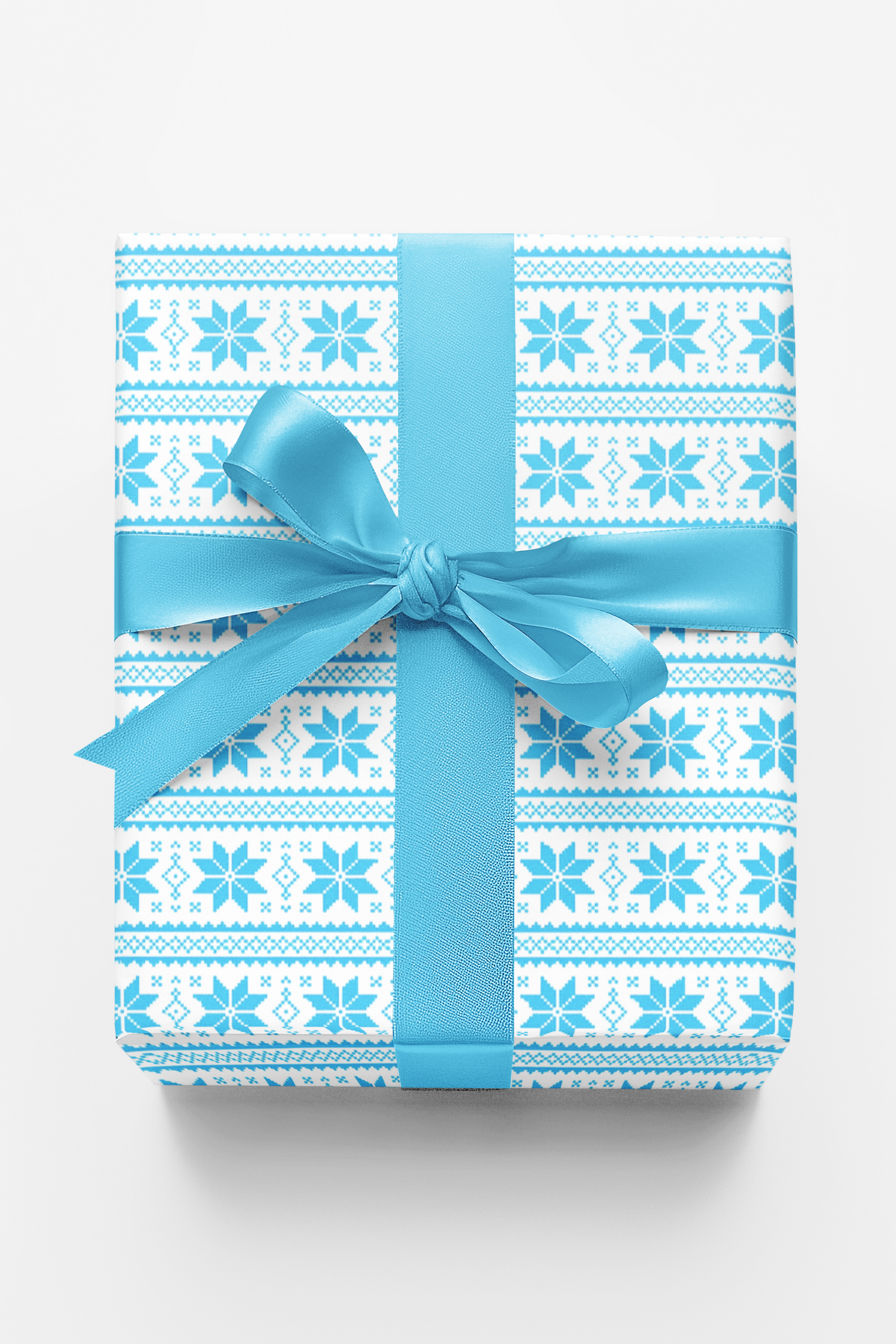 Wrap your gifts in cozy winter charm with this delightful wrapping paper inspired by classic Nordic knit patterns. Featuring soft blue snowflakes and geometric details on a crisp white background, this seamless design brings warmth and cheer to the holiday season. Perfect for Christmas, winter birthdays, or cozy seasonal décor, it adds a charming handmade feel to every wrapped gift.