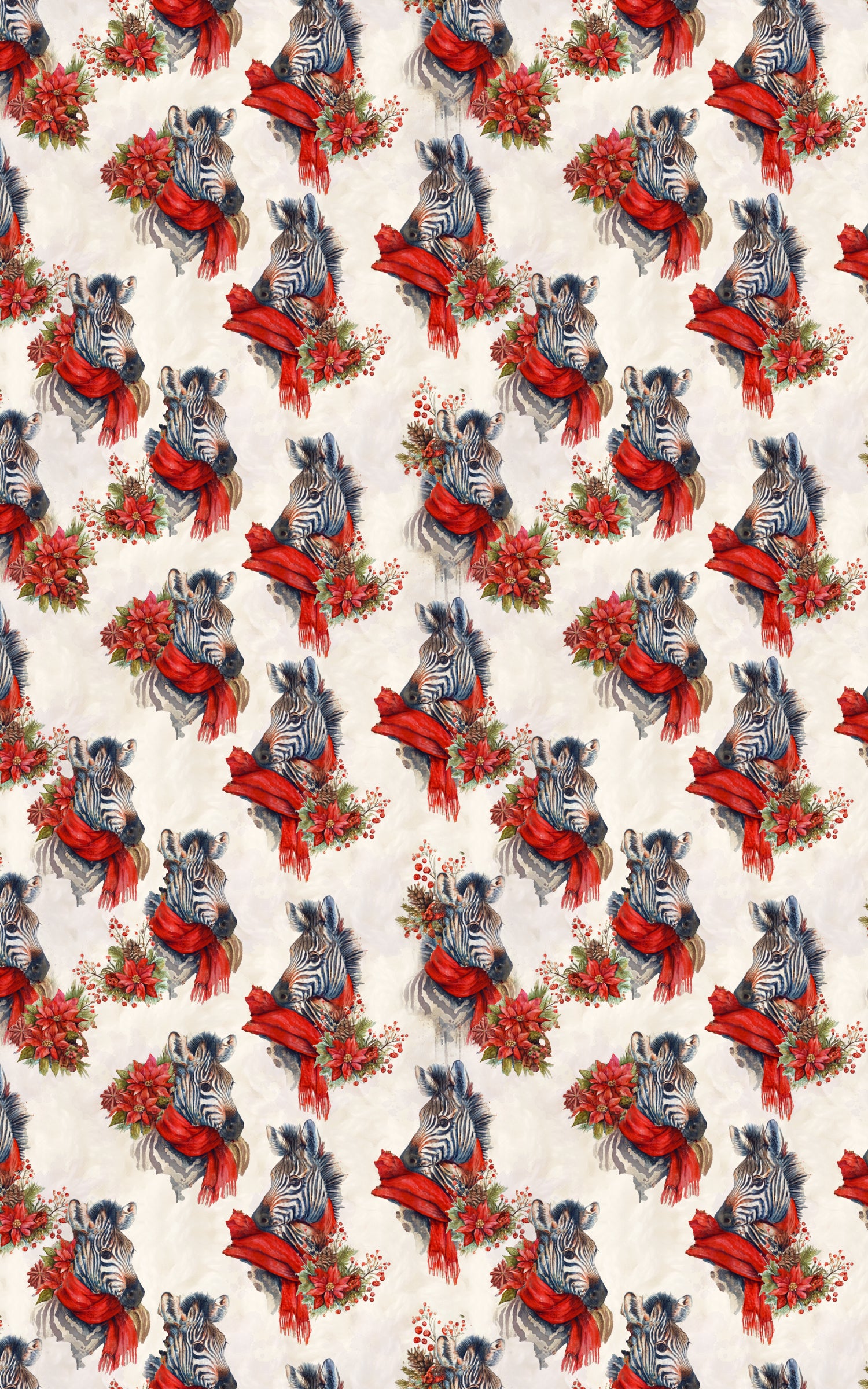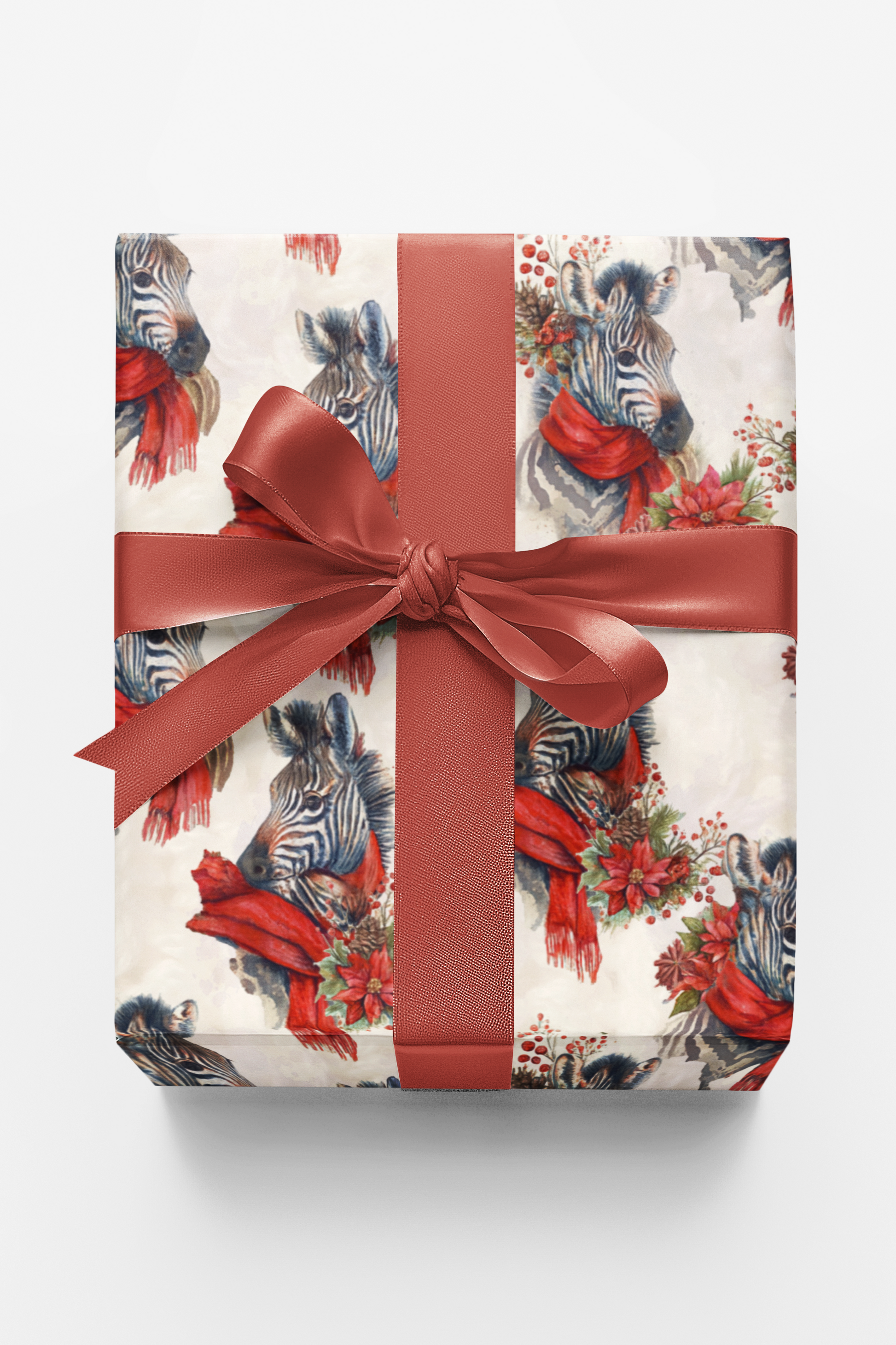 Adorable and festive, the Zebra brings unique holiday charm to this captivating wrapping paper design. Wearing a bright red scarf and surrounded by vibrant poinsettias, its graceful spirit and timeless presence shine through, adding both warmth and seasonal magic to every gift. Perfect for Christmas lovers and any occasion, this design celebrates the beauty and individuality of this remarkable creature.