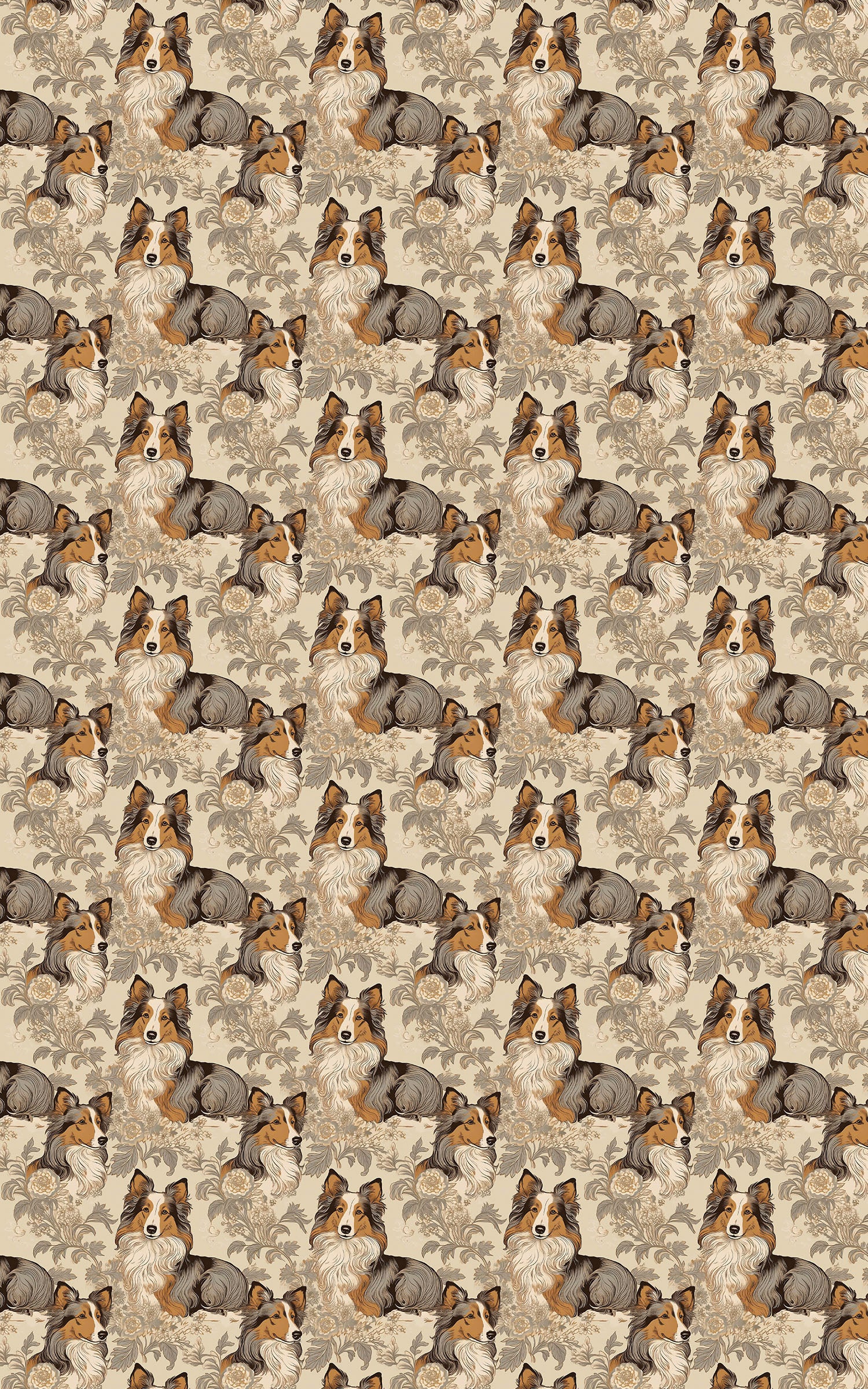 Elevate your gift wrapping with this refined toile-inspired design featuring graceful Shelties in elegant poses. Rendered in detailed single-color linework on a soft neutral background, this seamless pattern captures a timeless vintage charm. Its balanced, symmetrical arrangement adds sophistication and poise, making it perfect for elegant occasions, dog lovers, or anyone who appreciates classic, artful style.