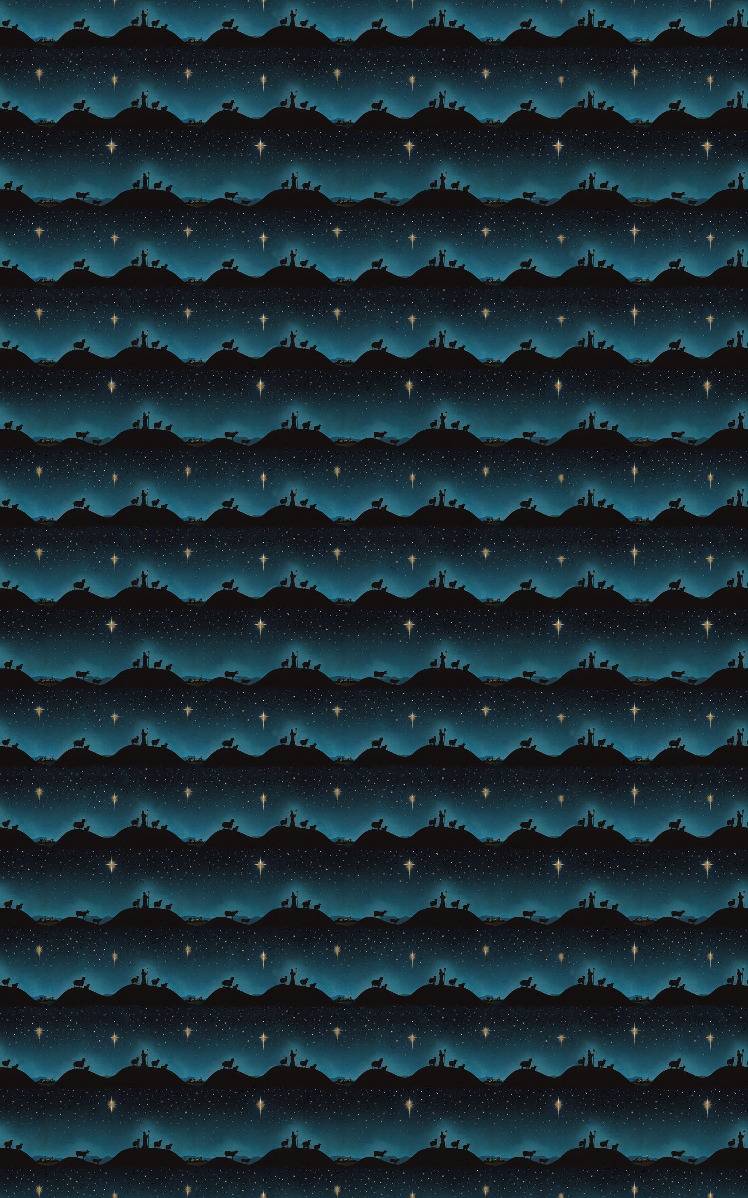 Find peace beneath the starlit sky with our Shepherd’s Watch design. This pastoral scene features gentle shepherds tending their sheep under the glow of a brilliant guiding star, softly illuminating the distant hills. With its calm tones and timeless imagery, this design brings warmth, faith, and serenity to your Christmas wrapping, cards, and décor.