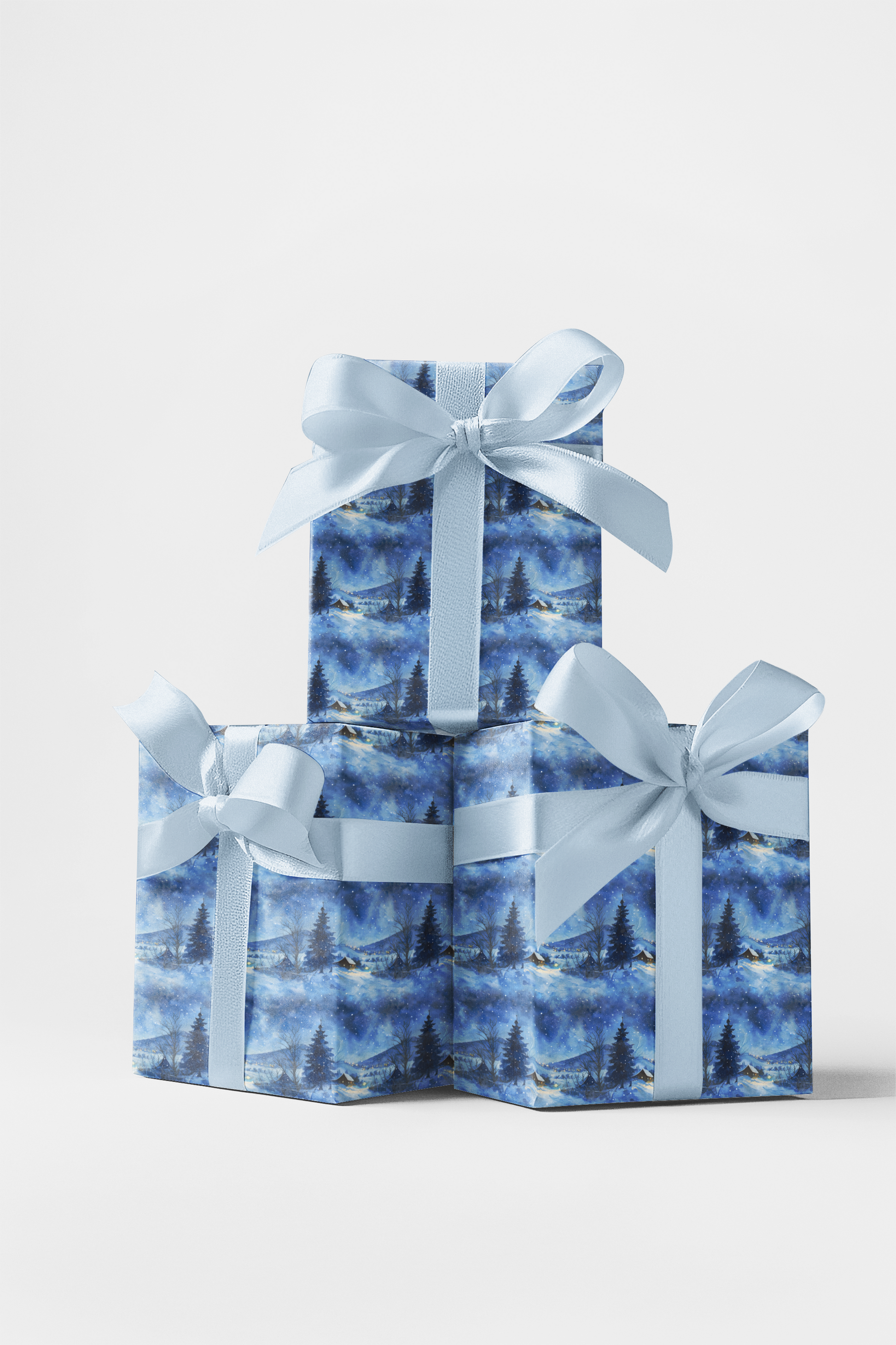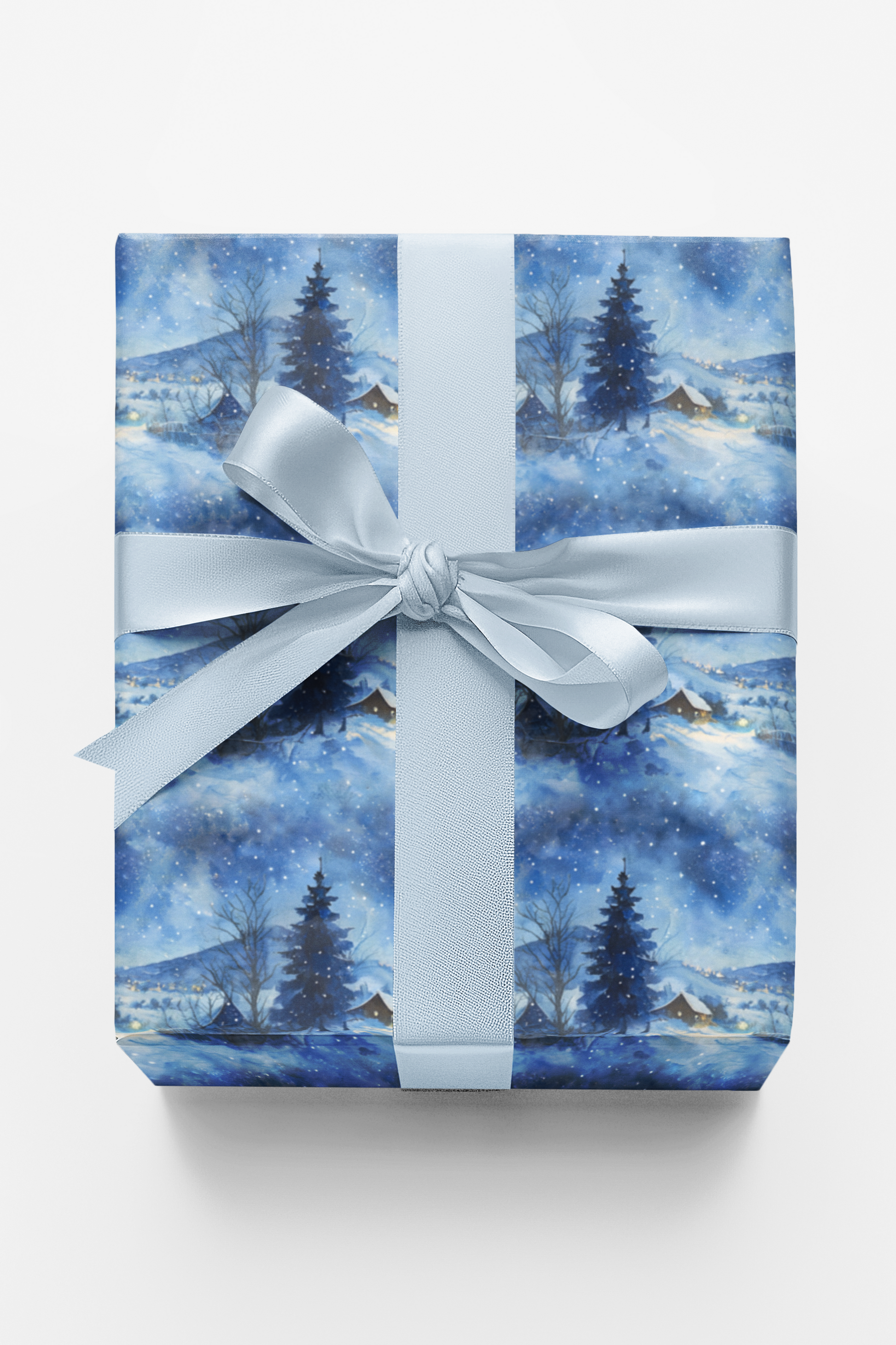 Wrapped in the hush of falling snow, Midnight Chalet glows with the quiet magic of winter’s embrace. A lone cabin nestles beneath deep sapphire skies, its golden windows flickering like whispers of warmth against the cold. Every brushstroke captures the serenity of a starlit night—where pine trees stand tall in reverent silence, and the world drifts softly into dream. This design celebrates the beauty of stillness and the poetry of winter, where every fold feels like a moment of peace illuminated by the glow of home.