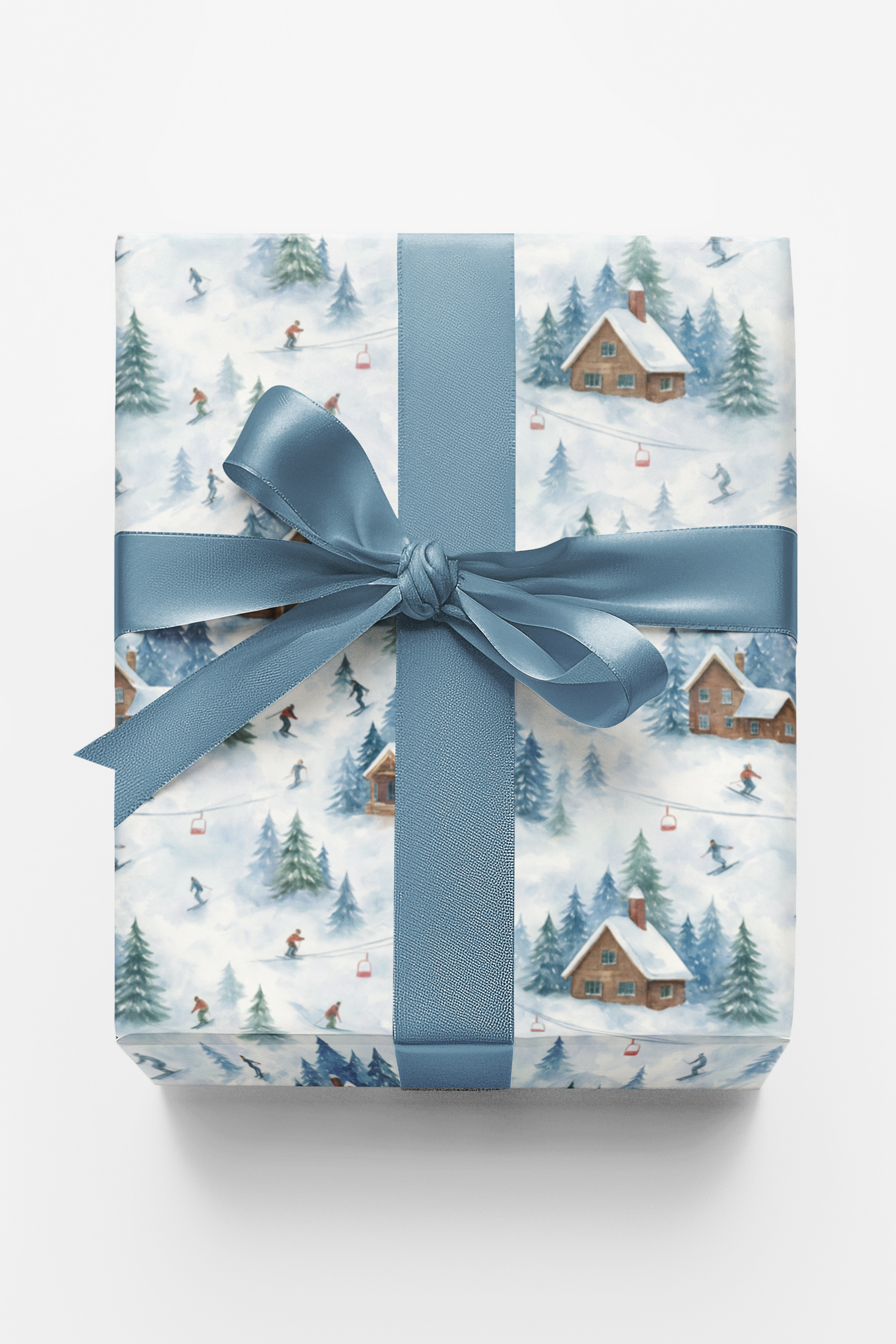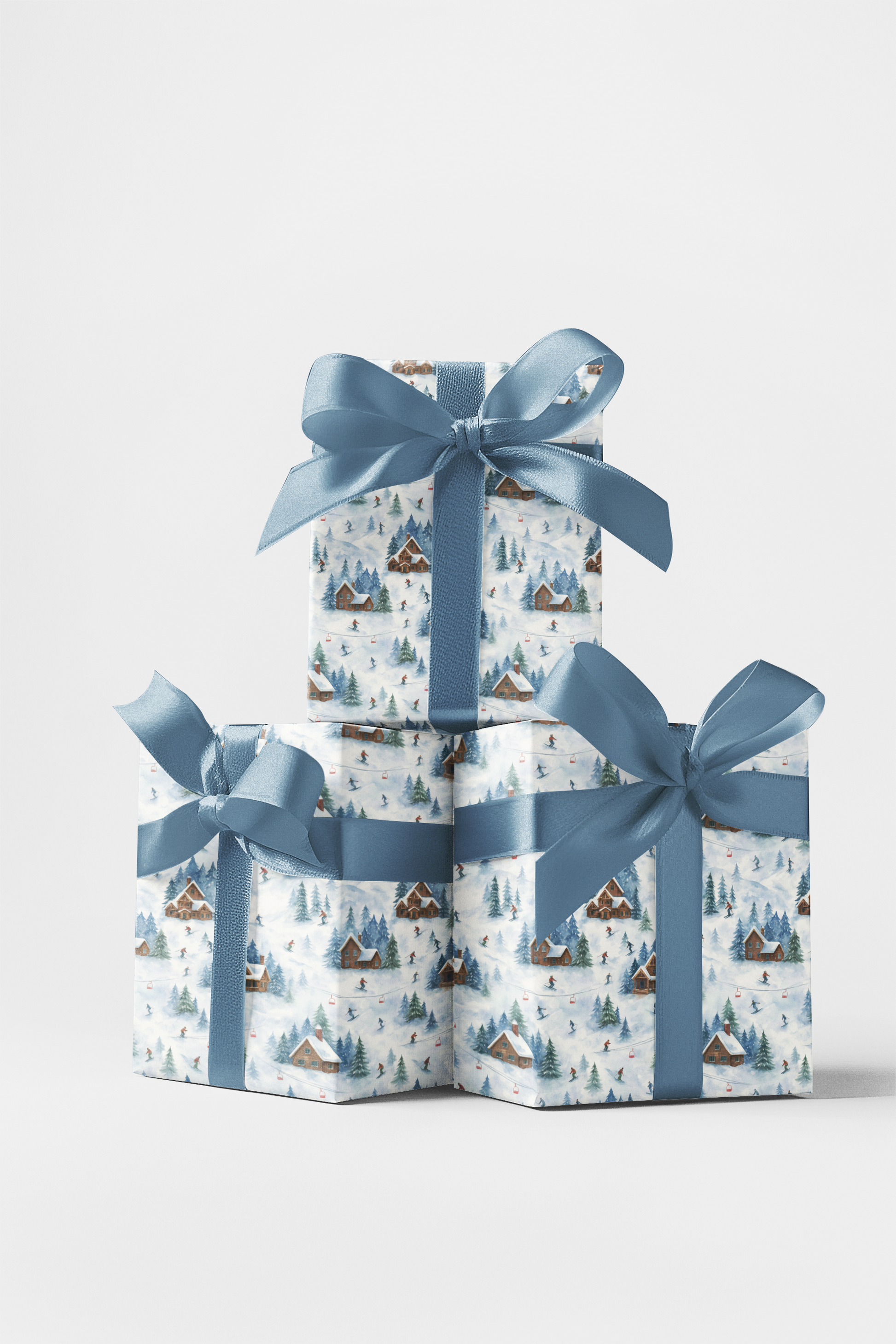 Blanketed in soft snow and alpine charm, Alpine Holiday captures the joyful spirit of winter in motion. Cozy cabins nestle beneath evergreens while skiers carve graceful paths through glistening slopes, their laughter echoing in the crisp mountain air. Each detail paints a scene of warmth amid the chill—a celebration of adventure, serenity, and togetherness. This design wraps every gift in the magic of a snowy escape, where every fold feels like a deep breath of fresh pine air and every glance carries the promise of fireside joy.