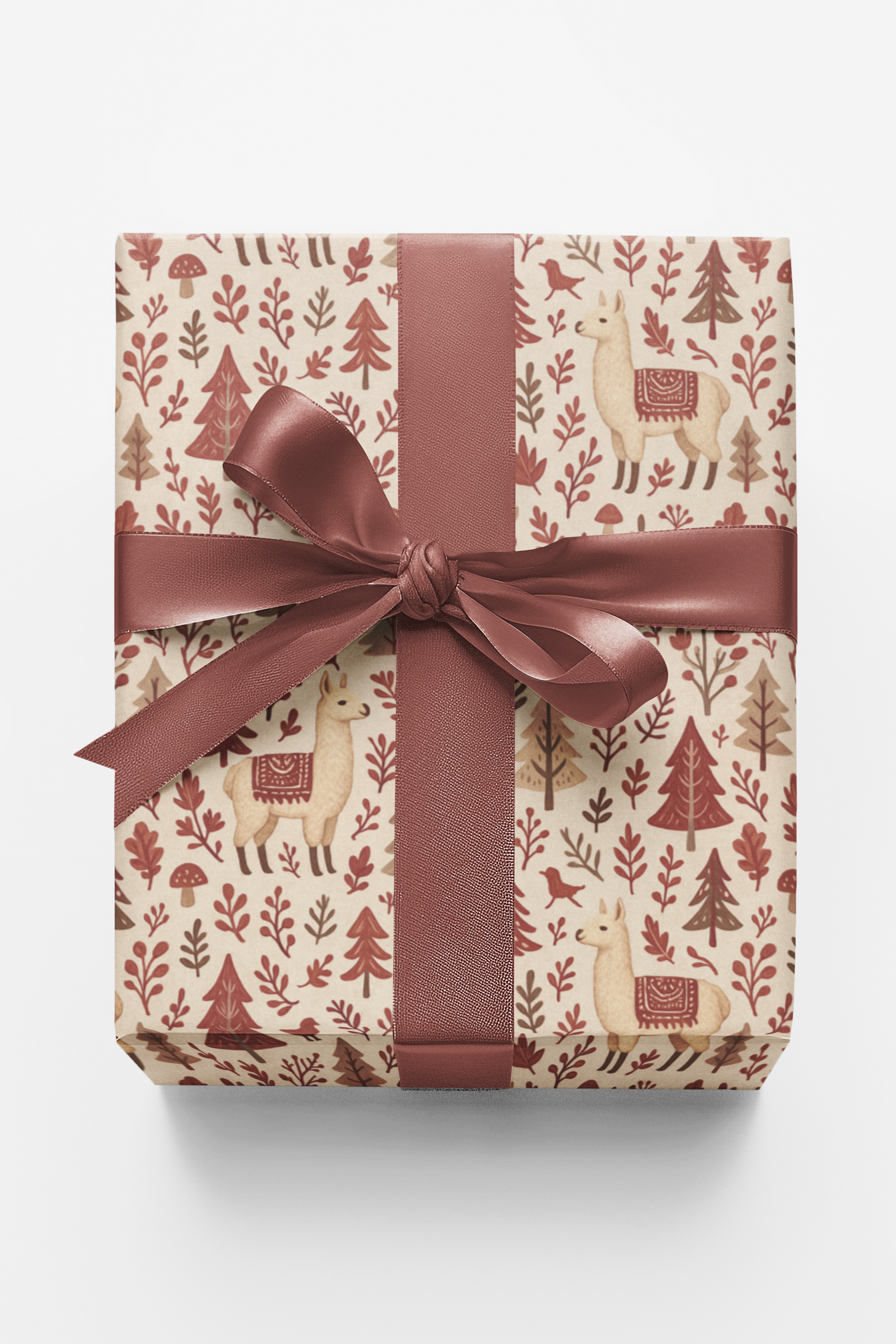 Wrapped in warm Nordic whimsy, this design transforms winter’s quiet magic into a cozy woodland dreamscape. Playful reindeer wander through forests of stylized pines, sprinkled with charming birds, mushrooms, and delicate Scandinavian florals—all painted in soft, earthy reds and warm taupe tones. Snowy Scandinavia celebrates storytelling and simple joys—where every fold invites you into a fairytale forest, every glance glows with rustic comfort, and every gift carries the gentle wonder of a Nordic winter crafted by hand.