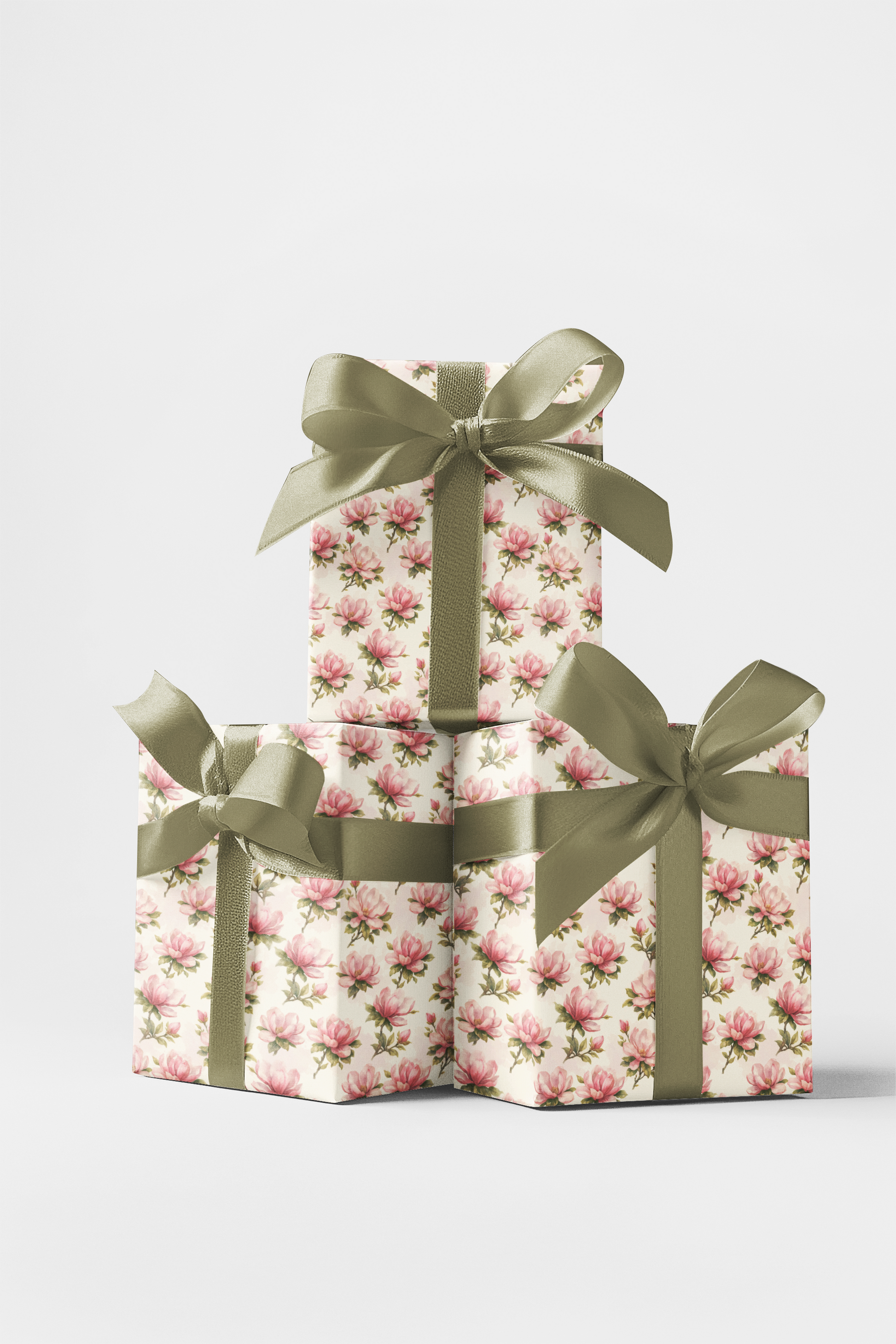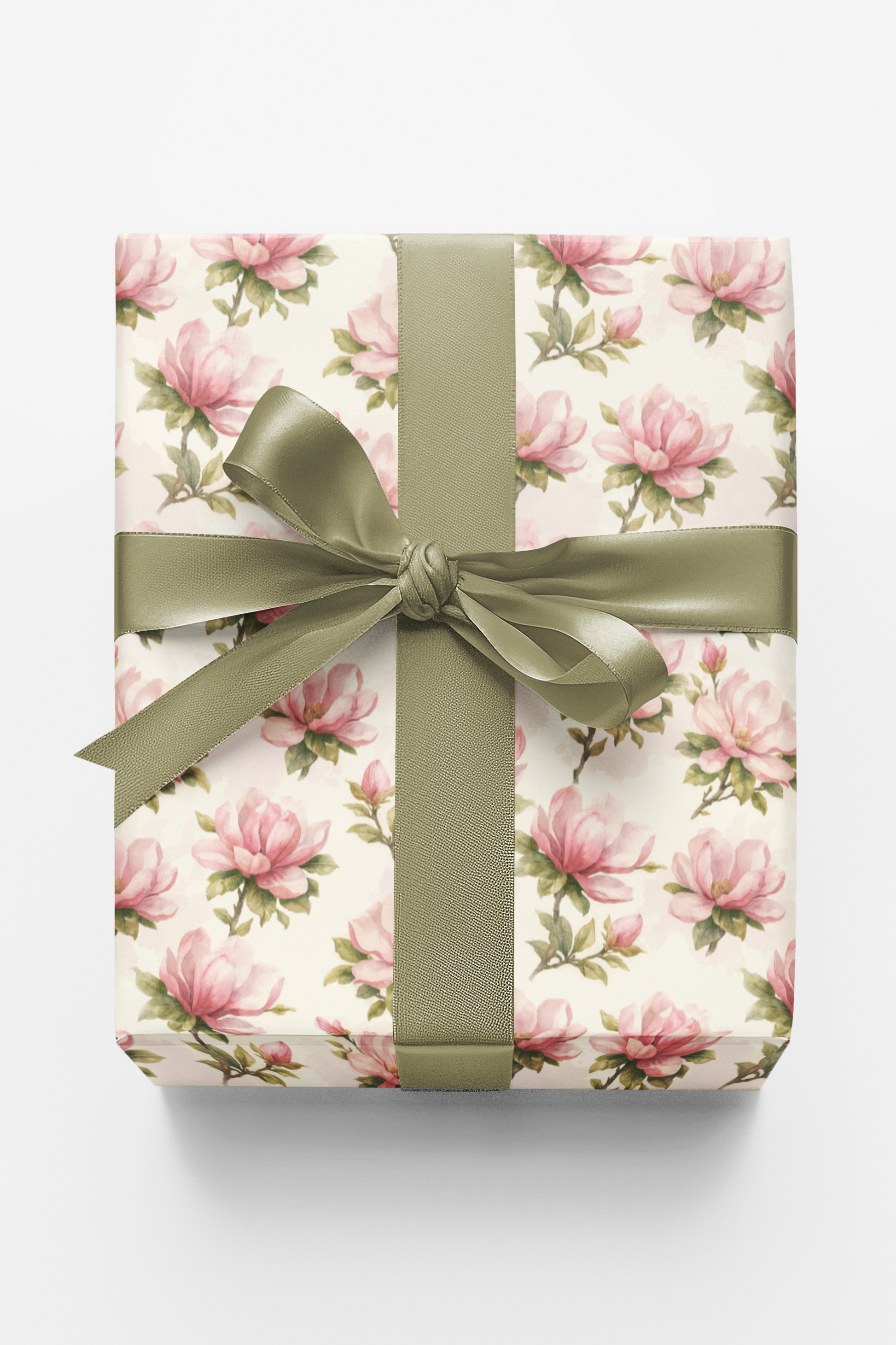 Awash in soft pinks and gentle greens, Blushing Magnolia unfolds with timeless grace and serene beauty. Each petal blooms like a watercolor sigh—delicate, romantic, and full of quiet confidence. This design captures the essence of southern charm and natural elegance, where every flower whispers warmth and every fold feels like a tender embrace. Wrapped in this garden of grace, each gift becomes a story of love, refinement, and everlasting bloom.